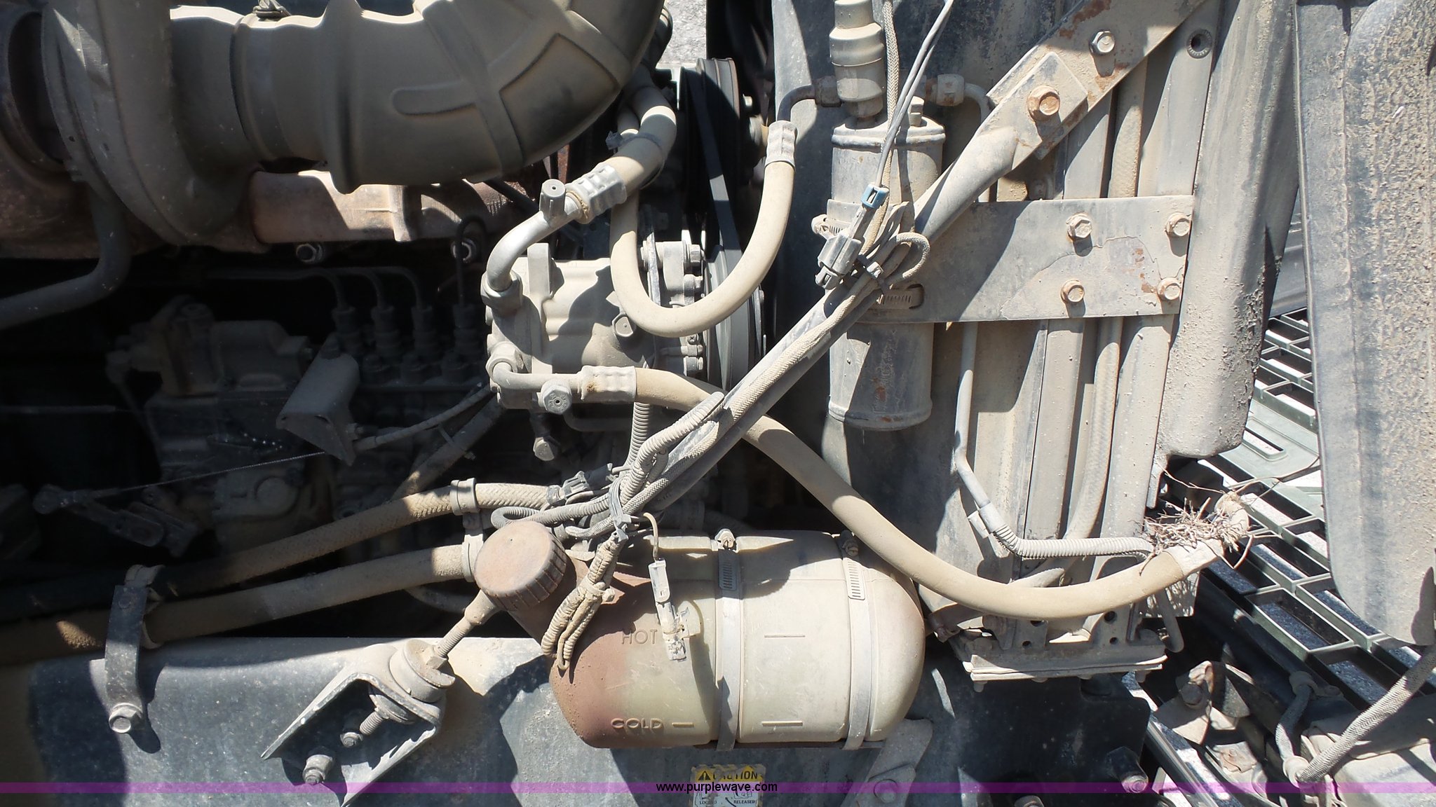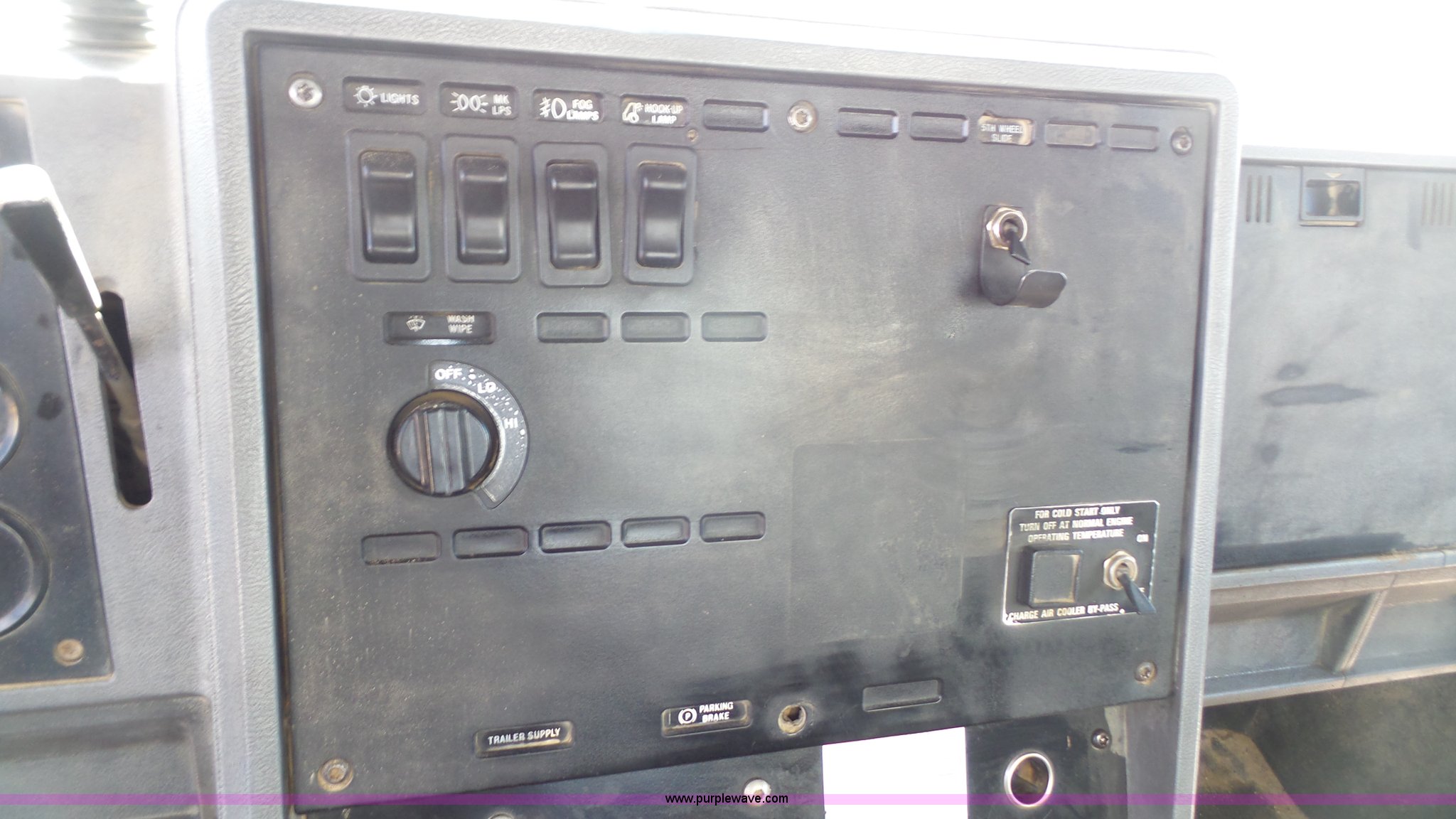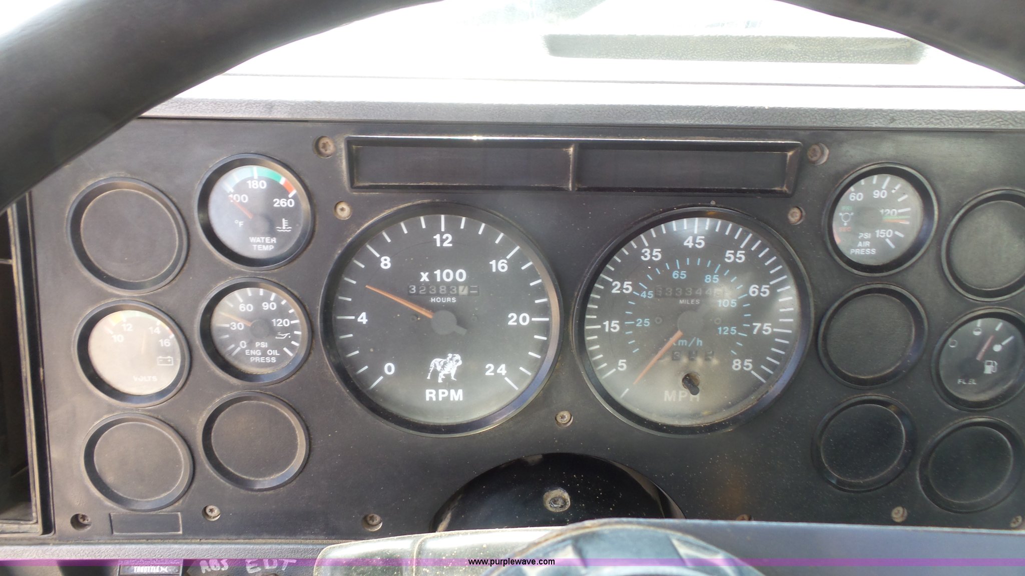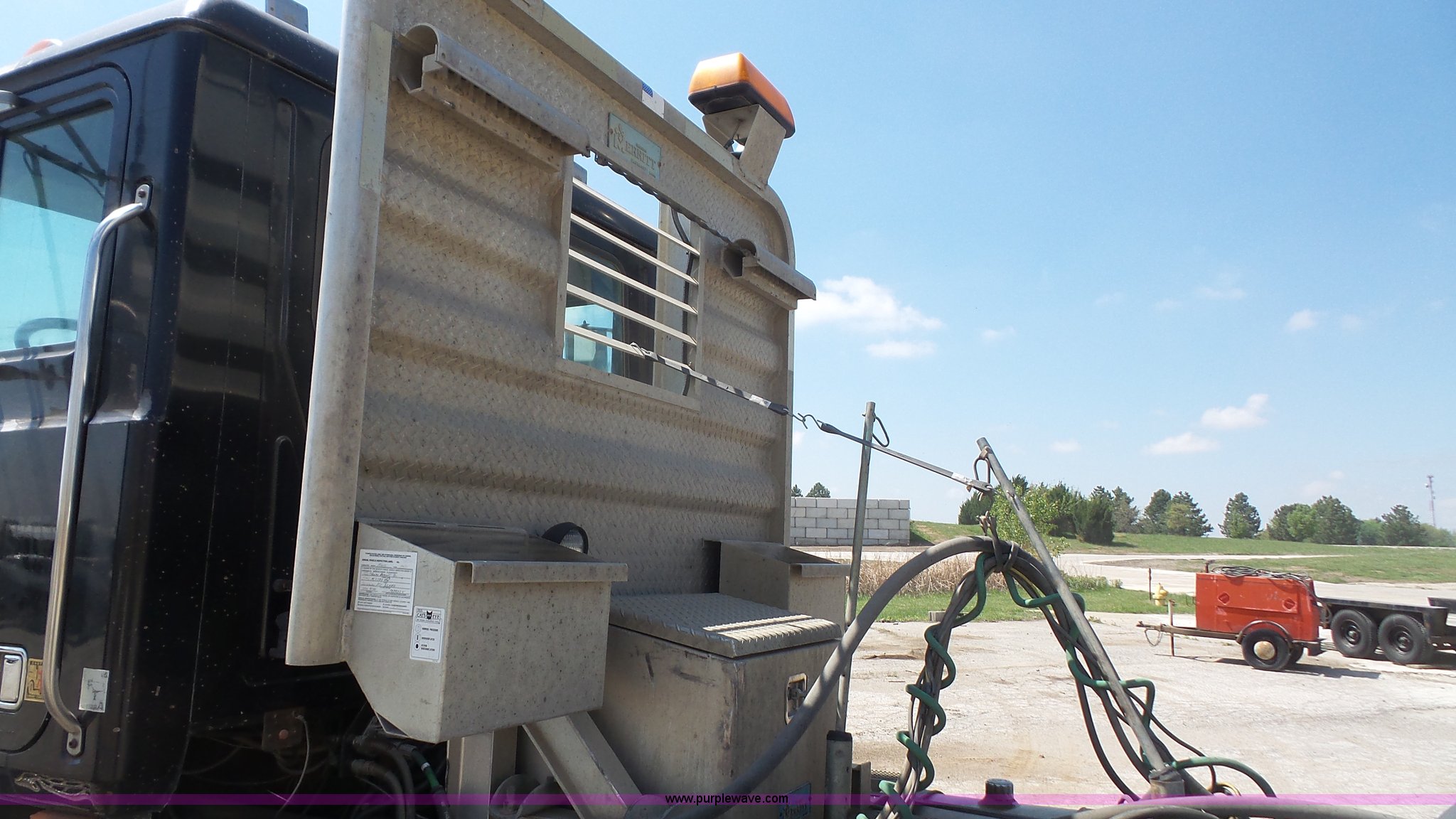 Purple Wave is selling a used Truck Tractor in Kansas. This item is a 1993 Mack CH613 semi truck with the following: 633,344 miles on odometer, 32,383 hours on meter, Mack E7 12.0L L6 turbo diesel engine, Eaton Fuller 13 speed manual transmission, Tandem axle, Inter-axle differential lock, AC and heat, AM/FM, Beacon light, Front tow hooks, Exterior visor, PTO, Wet kit, Aluminum headache rack, Chain hanger, Steel deck plate, Sliding fifth wheel plate, Single rear exhaust stack, Full plastic fenders, Spring suspension, Air brakes, 11R24.5 tires, Recently replaced brakes and drums on front axle