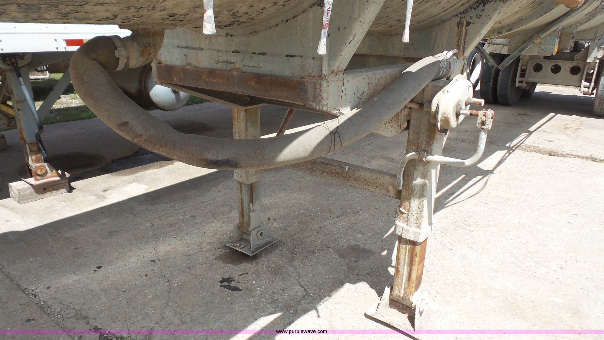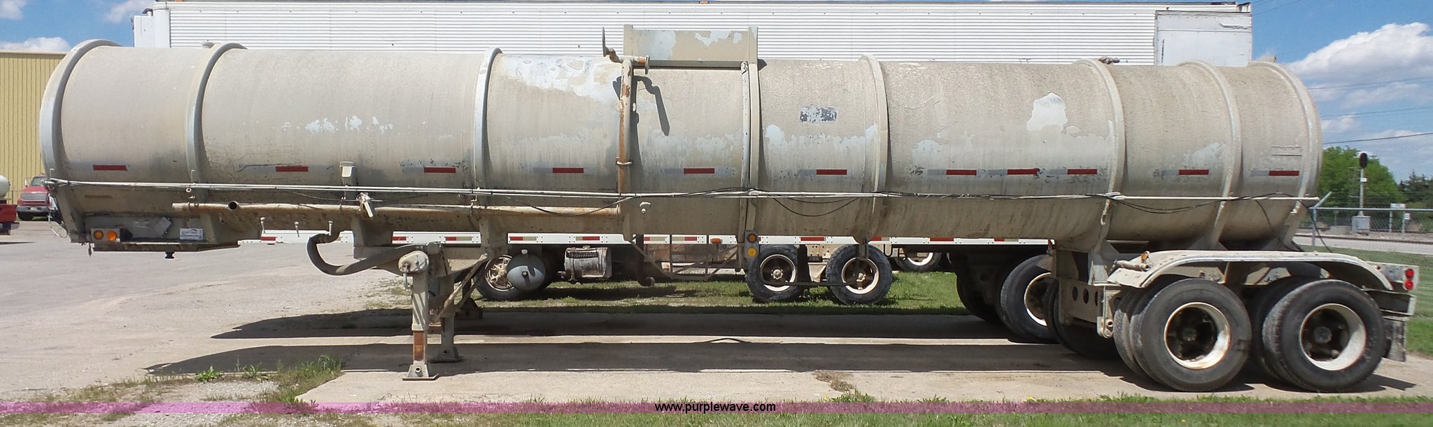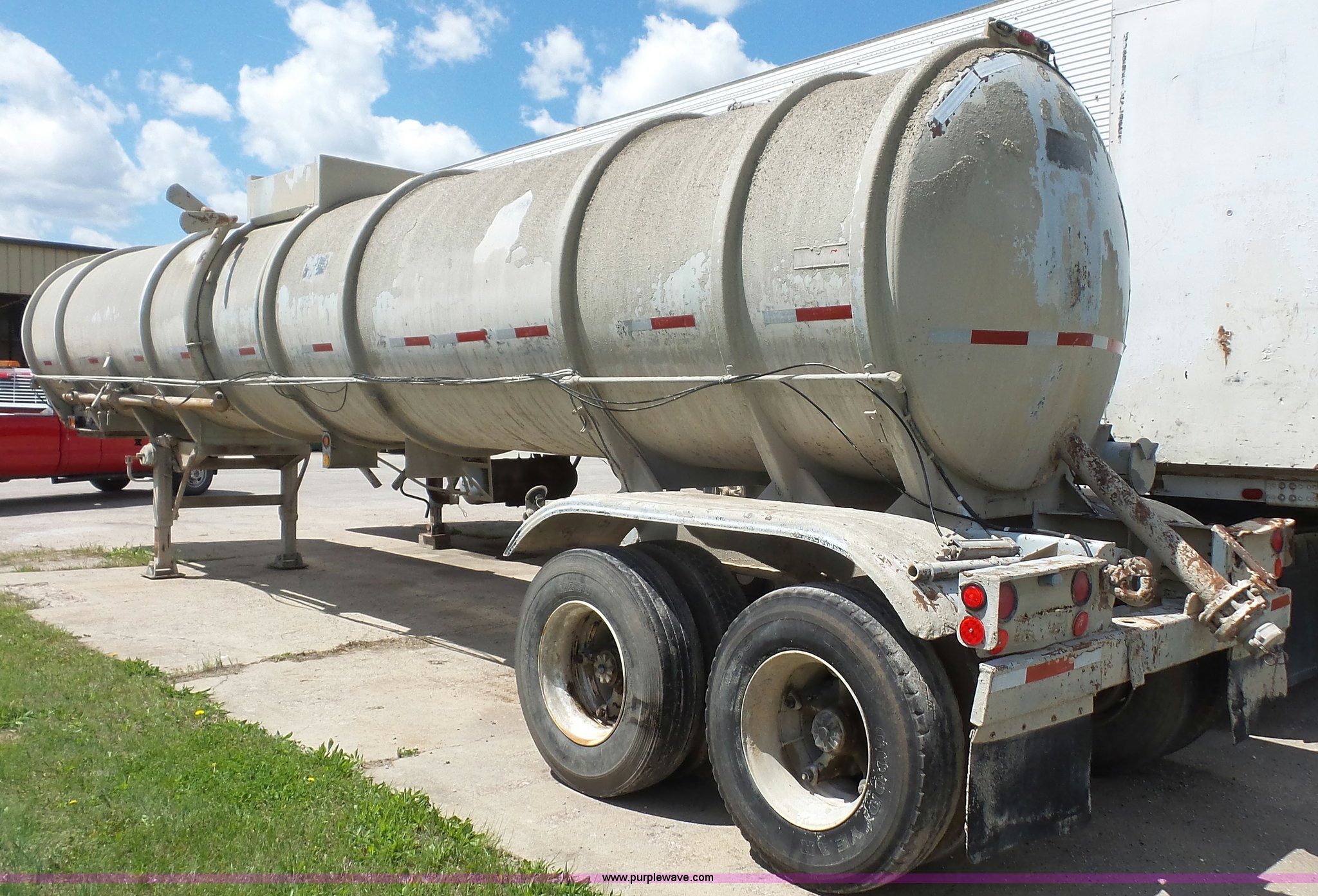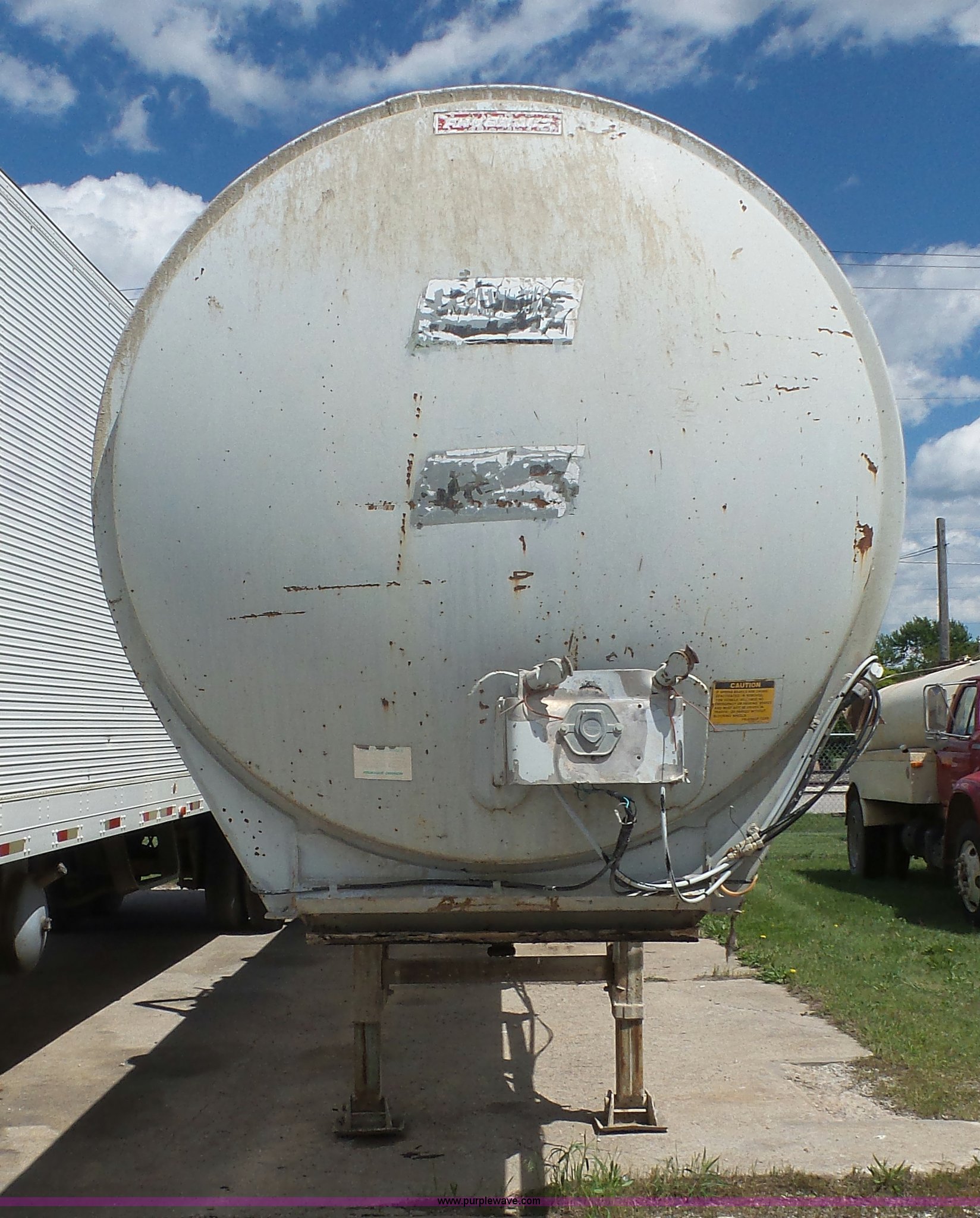 Purple Wave is selling a used Tank Trailer in Kansas. This item is a 1981 Fruehauf TE0-F2-R tank trailer with the following: 40'L, Steel tank, 7,000 gallon capacity, 16"W manway, Fifth wheel plate, Dual leg landing gear, Spring suspension, Air brakes, Tandem axle, Steel wheels, 11R22.5 tires, GVWR 68,000 lbs, GAWR 19,000 lbs, Unit# 1450