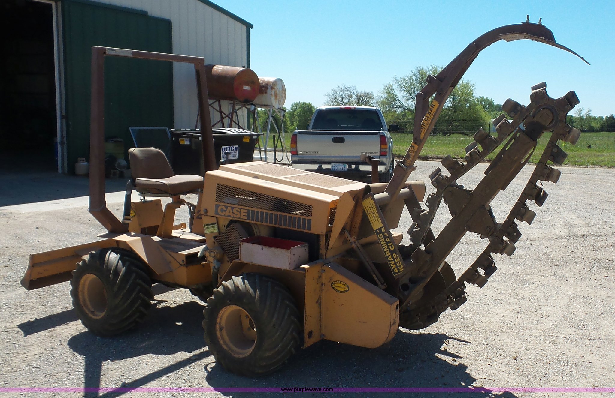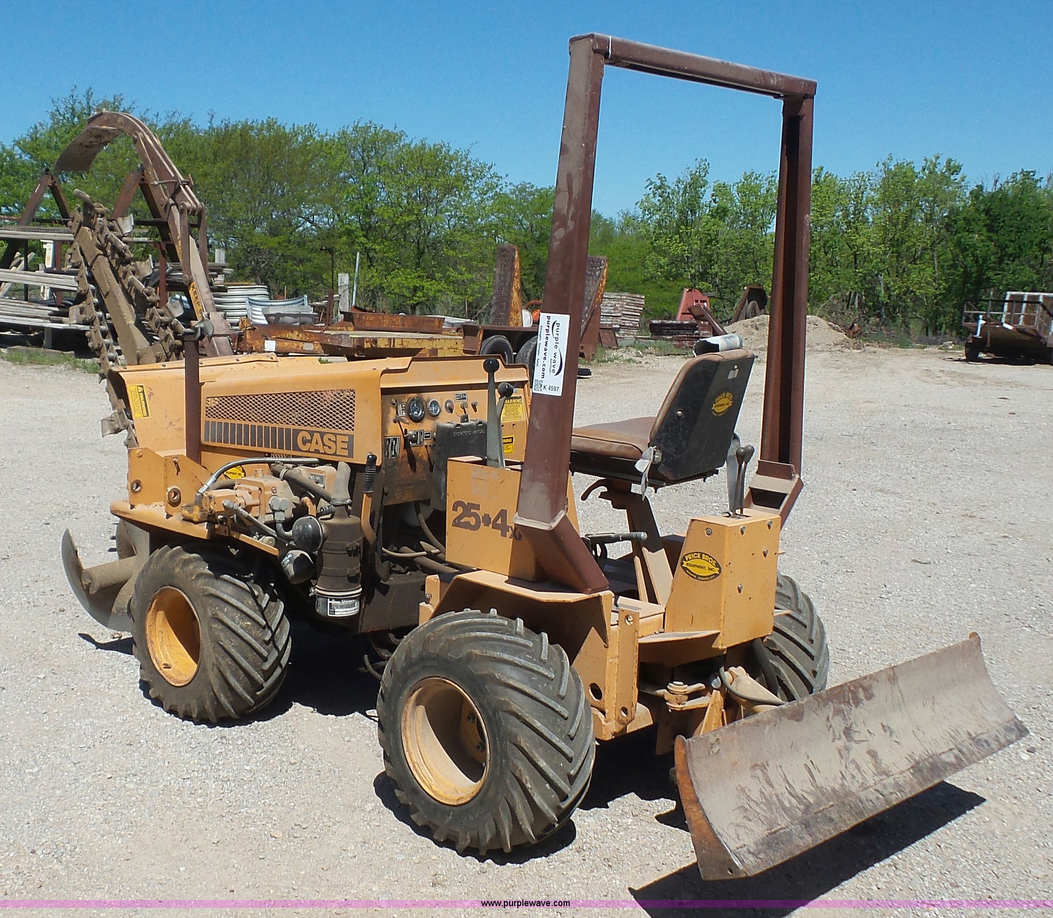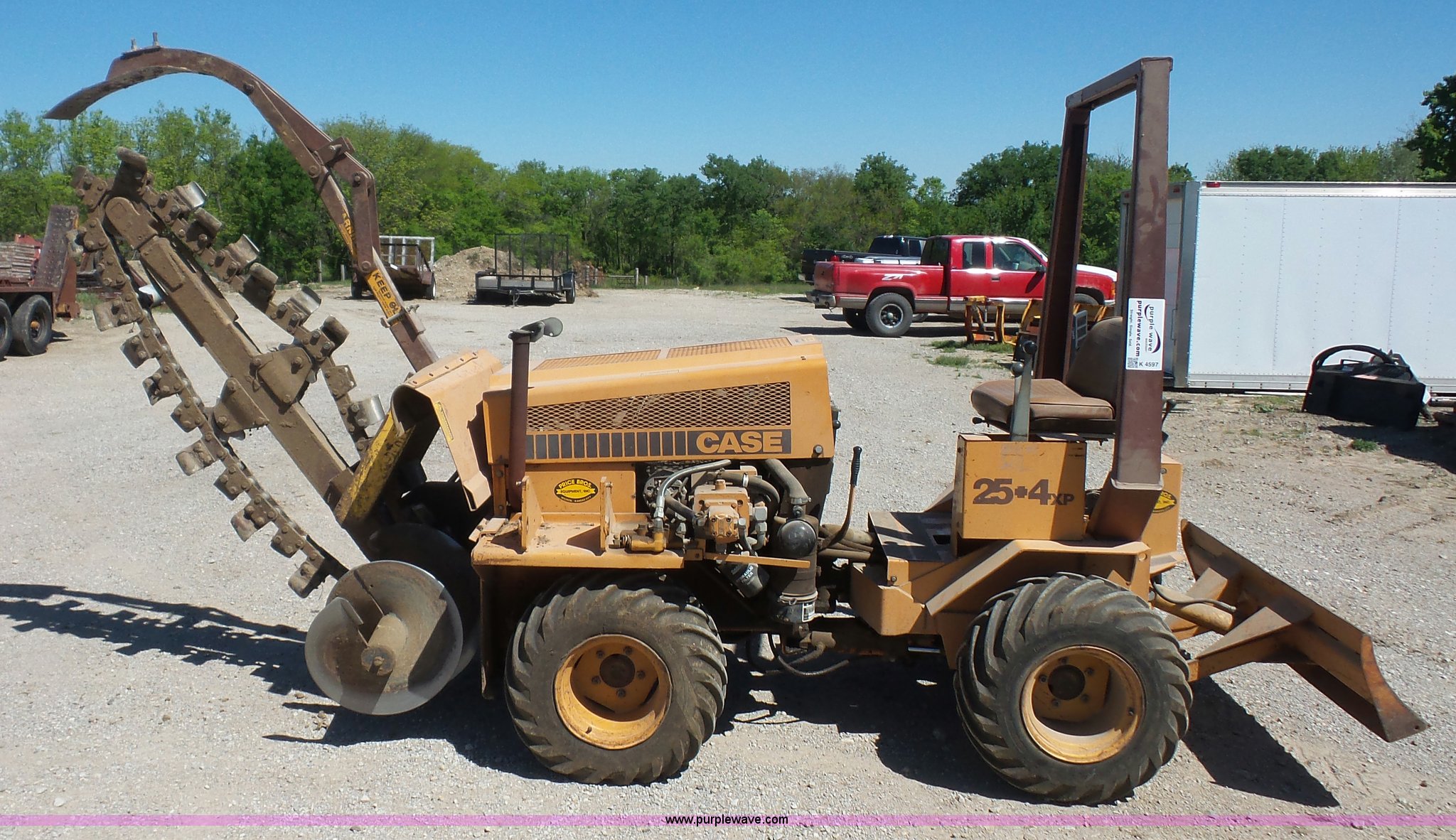 Purple Wave is selling a used Trencher or Rock Saw in Kansas. This item is a Case 25+4XP trencher with the following: 883 hours on meter, Wisconsin VH4D four cylinder gas engine, Hydrostatic transmission, Four wheel drive, 56"W four-way backfill blade, Trencher, 8" cutting width, 60" digging depth, Crumber shoe, 10" and 12" cutting teeth included, 26x12.00-12 tires, Serial JAF0002105
