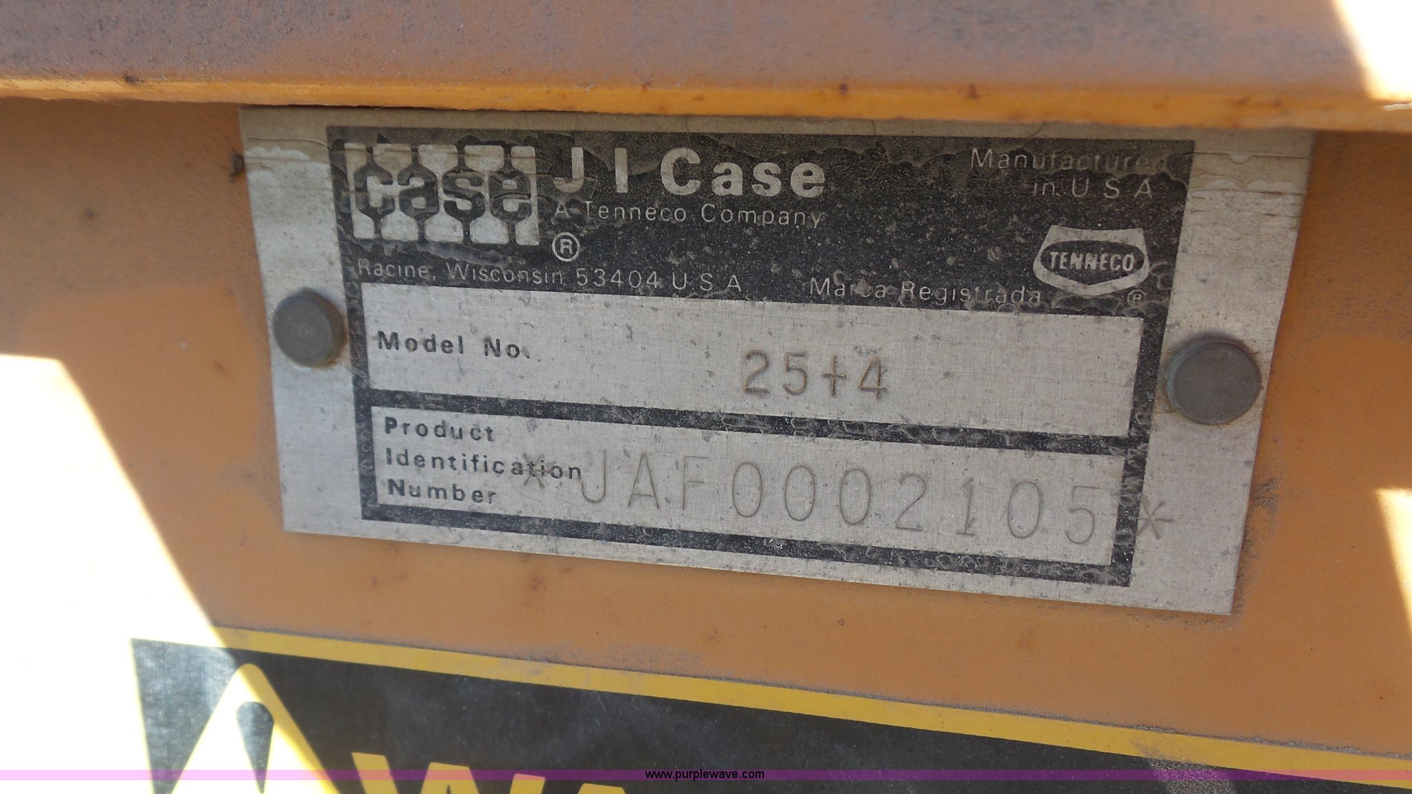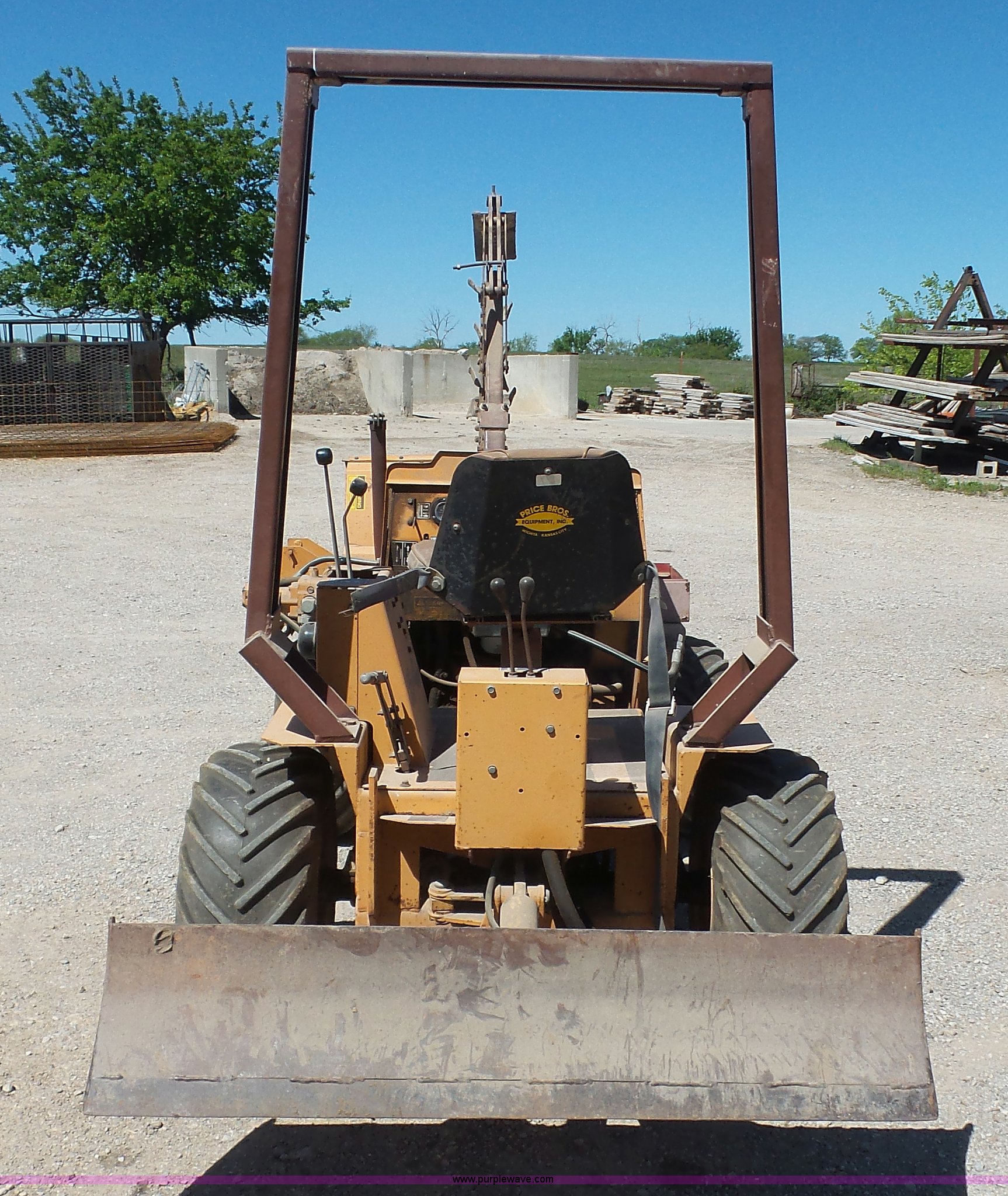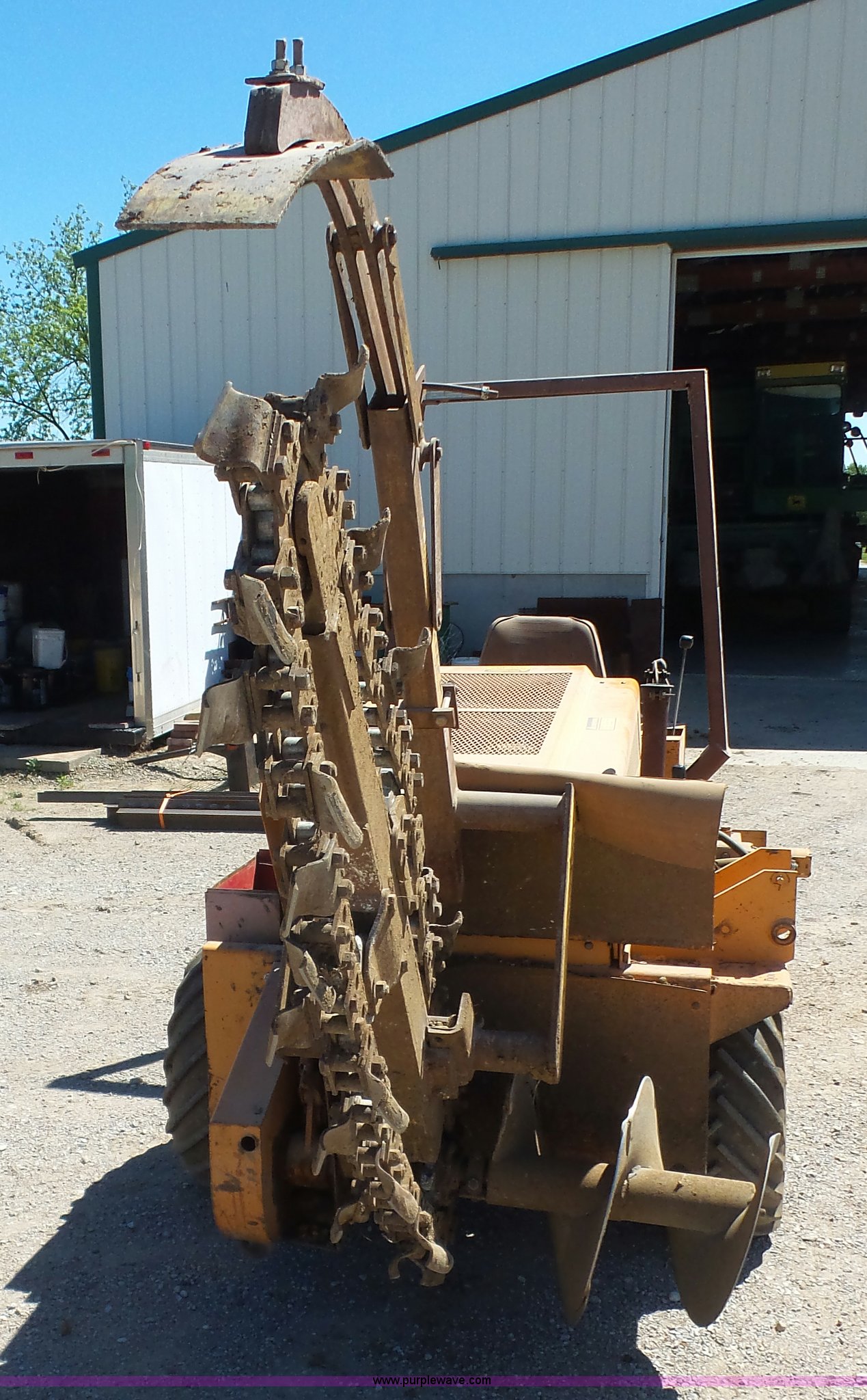 Purple Wave is selling a used Trencher or Rock Saw in Kansas. This item is a Case 25+4XP trencher with the following: 883 hours on meter, Wisconsin VH4D four cylinder gas engine, Hydrostatic transmission, Four wheel drive, 56"W four-way backfill blade, Trencher, 8" cutting width, 60" digging depth, Crumber shoe, 10" and 12" cutting teeth included, 26x12.00-12 tires, Serial JAF0002105