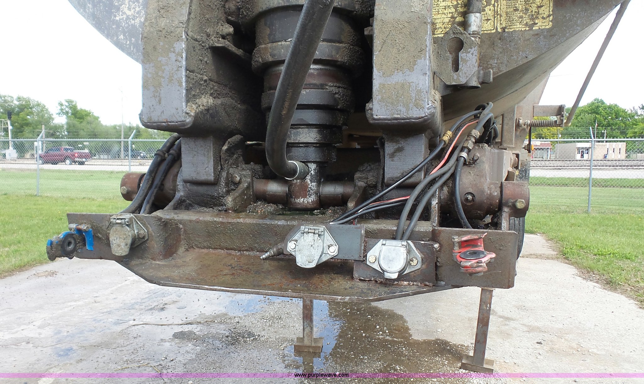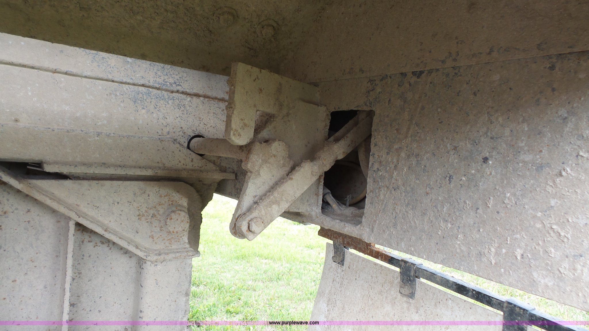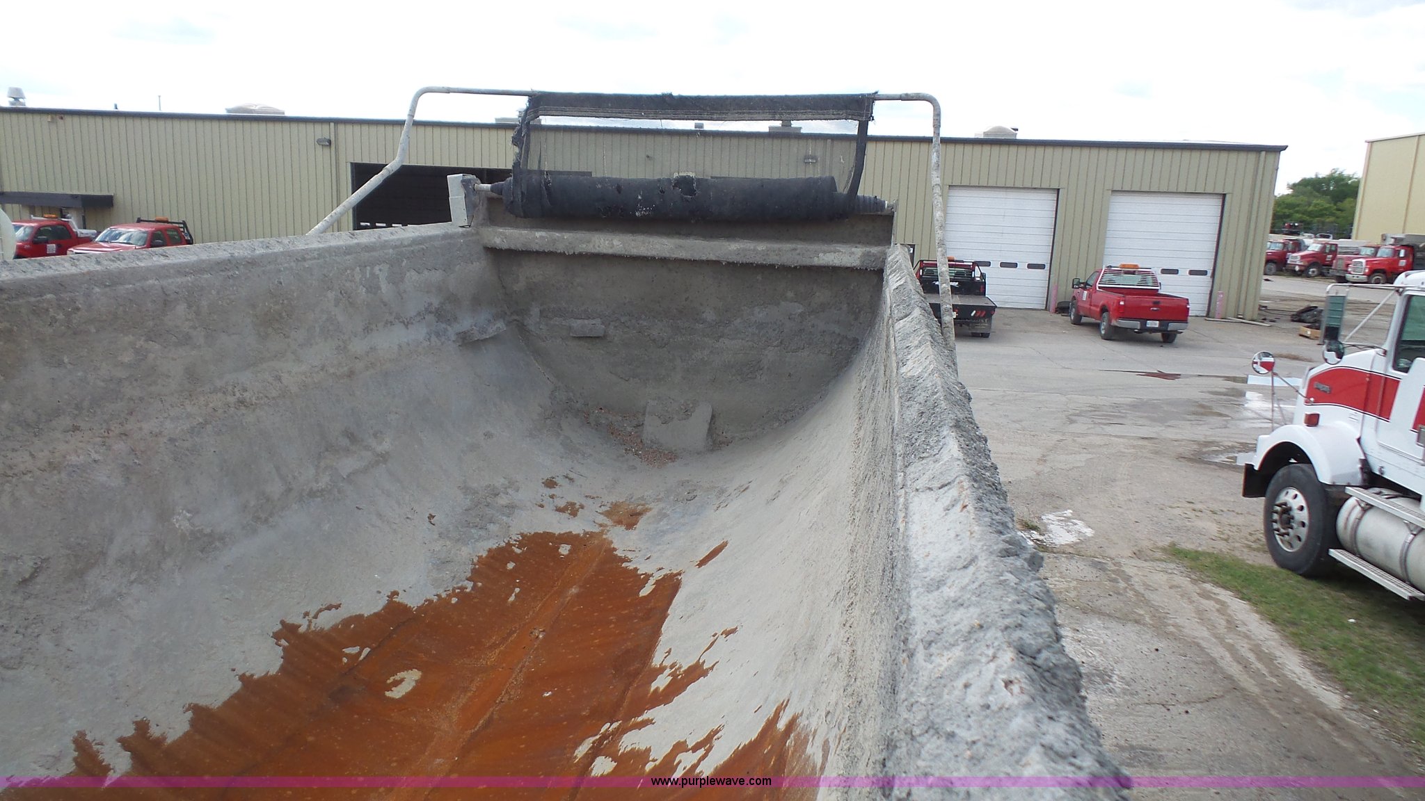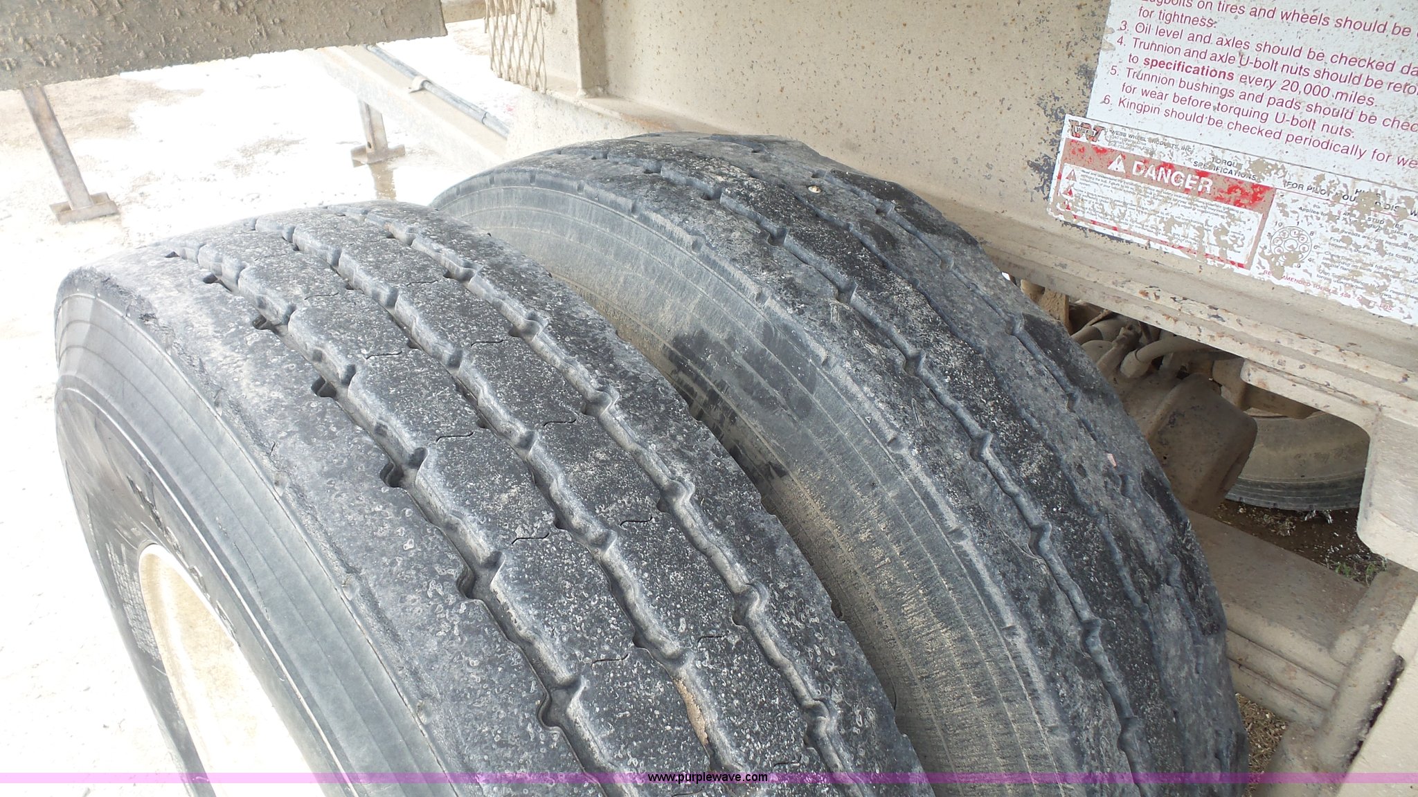 Purple Wave is selling a used End Dump Rock Trailer in Kansas. This item is a 1999 Travis HRS end dump trailer with the following: 26'L, Steel construction, Single ram hoist, High lift end gate, Electric rollover tarp, Bed vibrator, Fifth wheel plate, Dual leg landing gear, Spring suspension, Air brakes, Tandem axle, Steel wheels, 11R24.5 tires, GVWR 68,000 lbs, GAWR 20,000 lbs