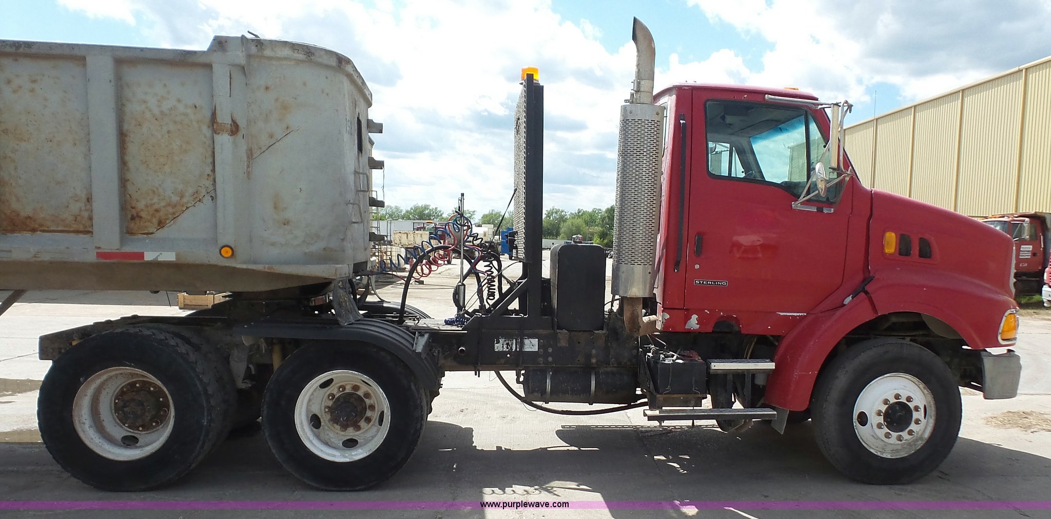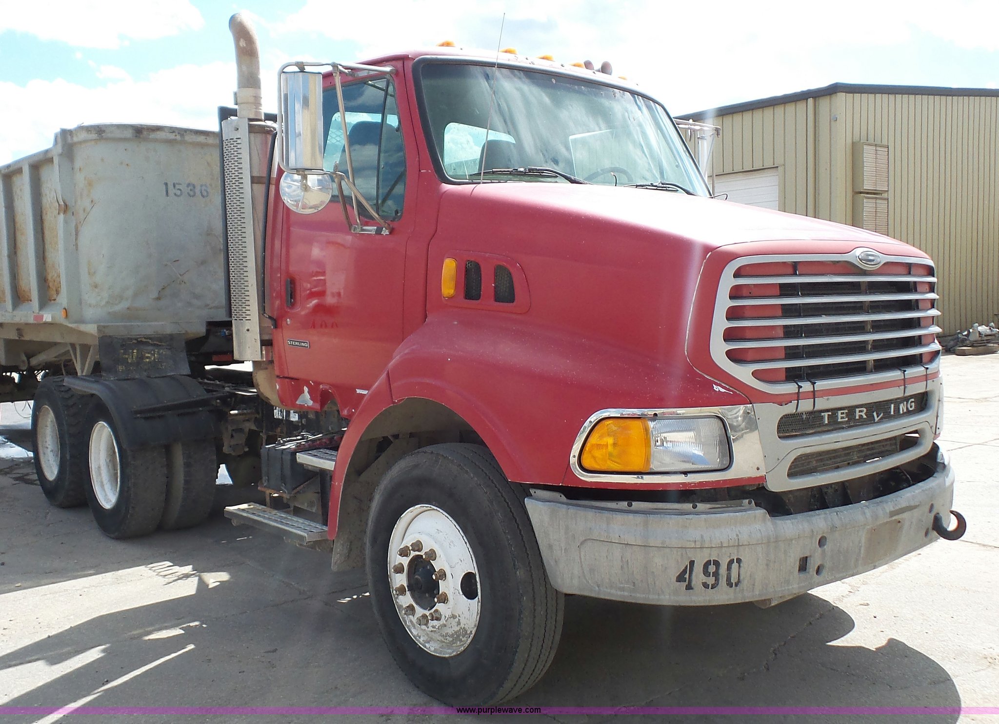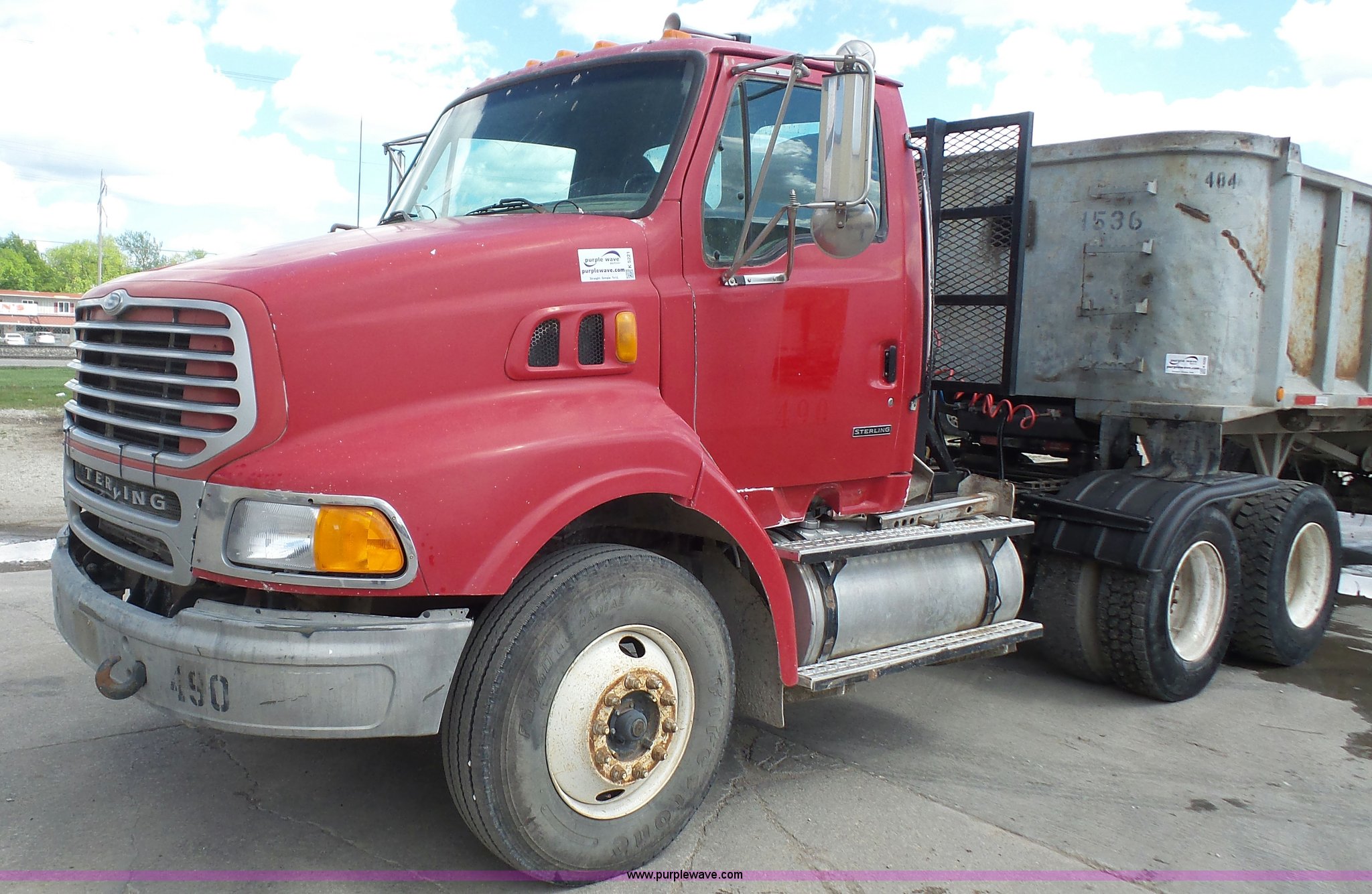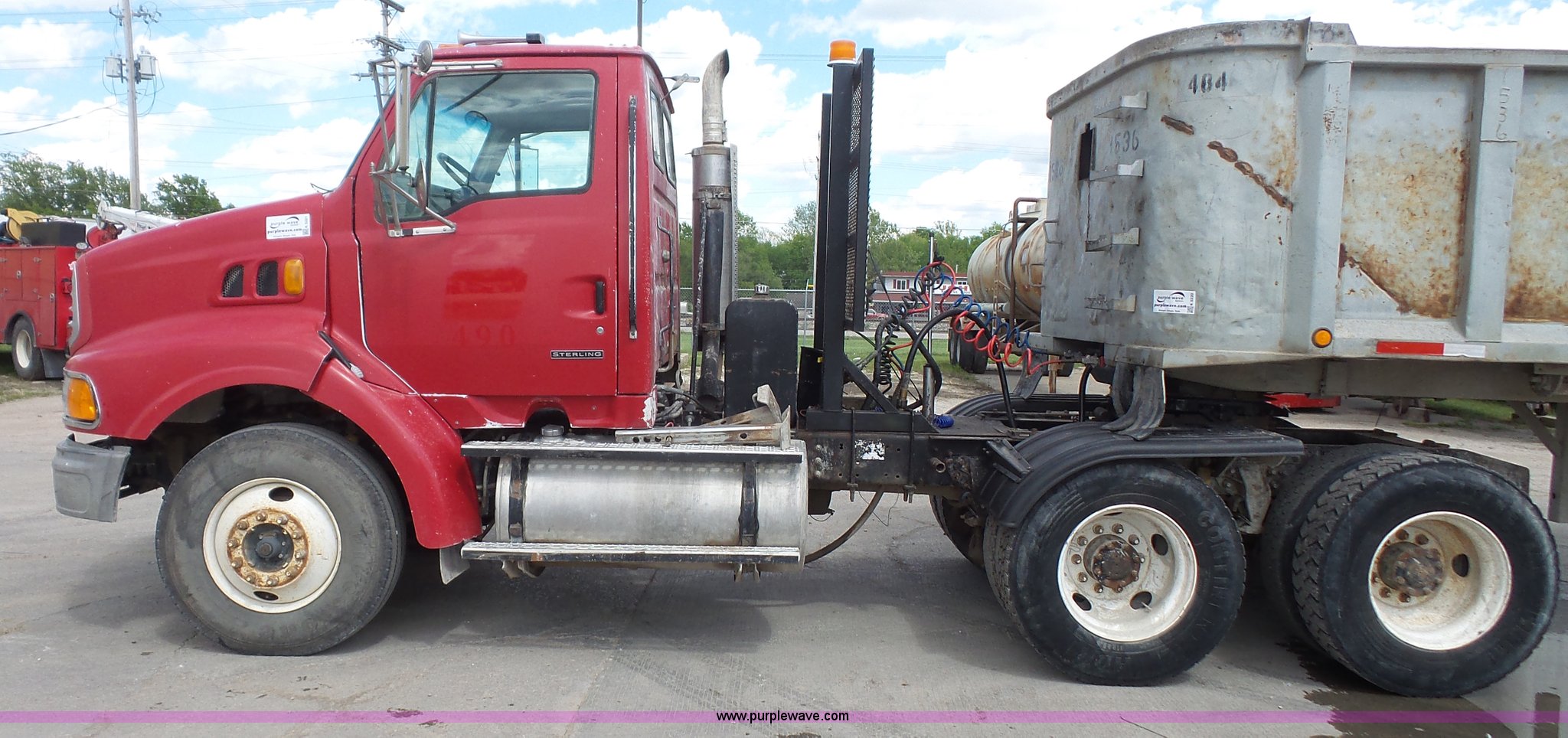 Purple Wave is selling a used Truck Tractor in Kansas. This item is a 2000 Sterling A9500 semi truck with the following: 474,313 miles on odometer, Caterpillar C12 12.0L L6 diesel engine, 410 HP, Serial 2KS44019, Eaton Fuller 10 speed manual transmission, Tandem axle, Inter-axle differential lock, AC and heat, No blower fan switch, Tilt, Cruise, Air suspension seat, Air ride cab, Dump valves, PTO, Wet kit, Beacon light, Single exhaust stack, Steel deck plate, Sliding fifth wheel pate, Single fuel tank, Plastic half fenders, Air brakes, 11R22.5 tires, GVWR 52,000 lbs, FAWR 12,000 lbs, IAWR 20,000 lbs, RAWR 20,000 lbs, Cosmetic damagea, Unit# 490