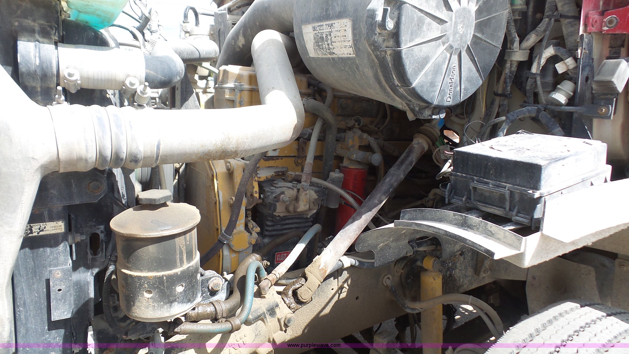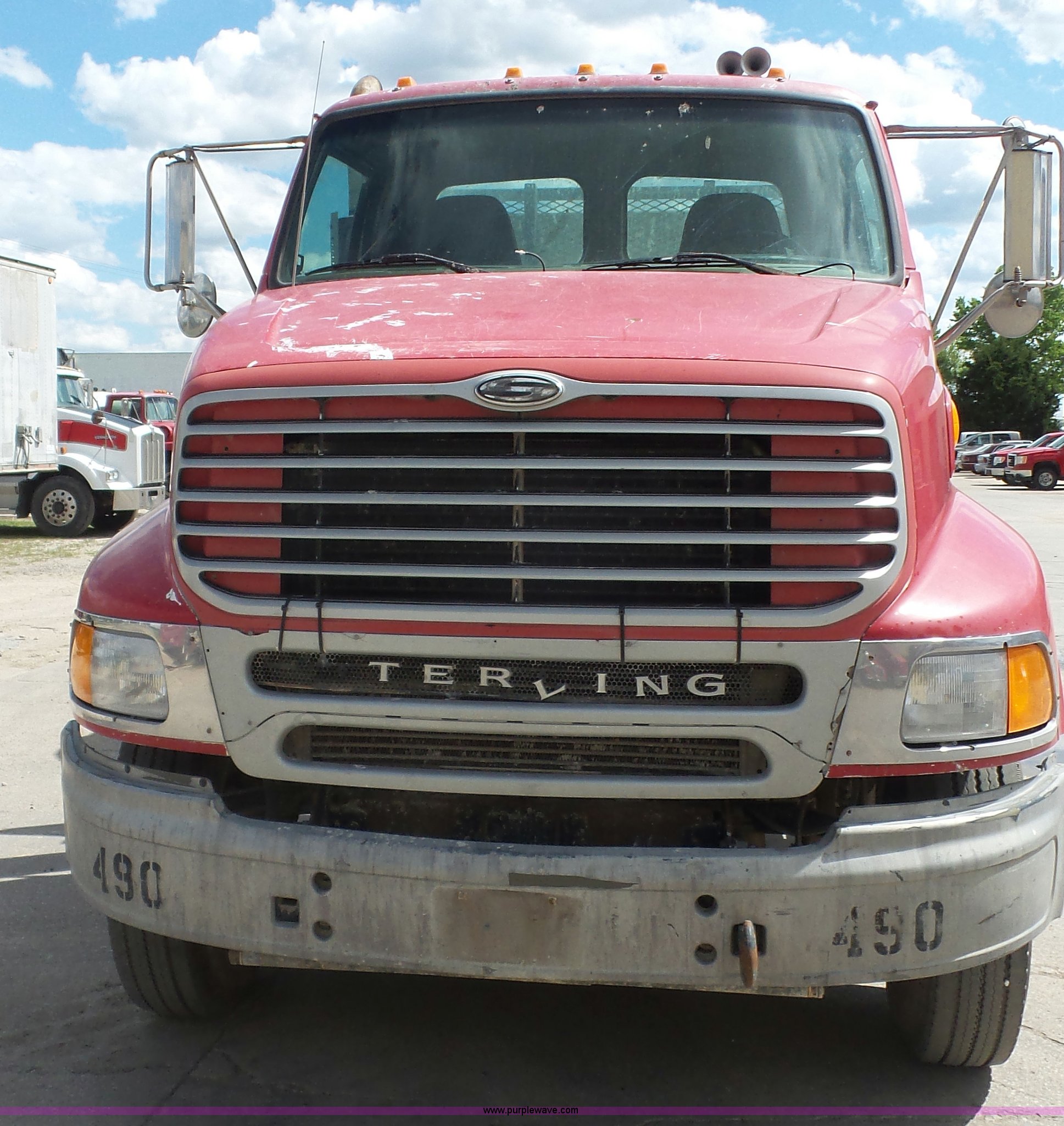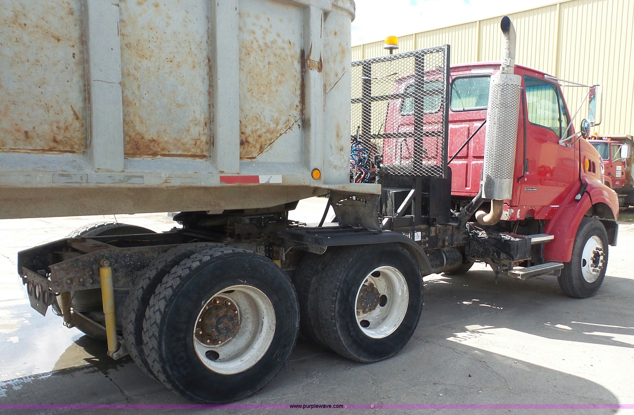 Purple Wave is selling a used Truck Tractor in Kansas. This item is a 2000 Sterling A9500 semi truck with the following: 474,313 miles on odometer, Caterpillar C12 12.0L L6 diesel engine, 410 HP, Serial 2KS44019, Eaton Fuller 10 speed manual transmission, Tandem axle, Inter-axle differential lock, AC and heat, No blower fan switch, Tilt, Cruise, Air suspension seat, Air ride cab, Dump valves, PTO, Wet kit, Beacon light, Single exhaust stack, Steel deck plate, Sliding fifth wheel pate, Single fuel tank, Plastic half fenders, Air brakes, 11R22.5 tires, GVWR 52,000 lbs, FAWR 12,000 lbs, IAWR 20,000 lbs, RAWR 20,000 lbs, Cosmetic damagea, Unit# 490