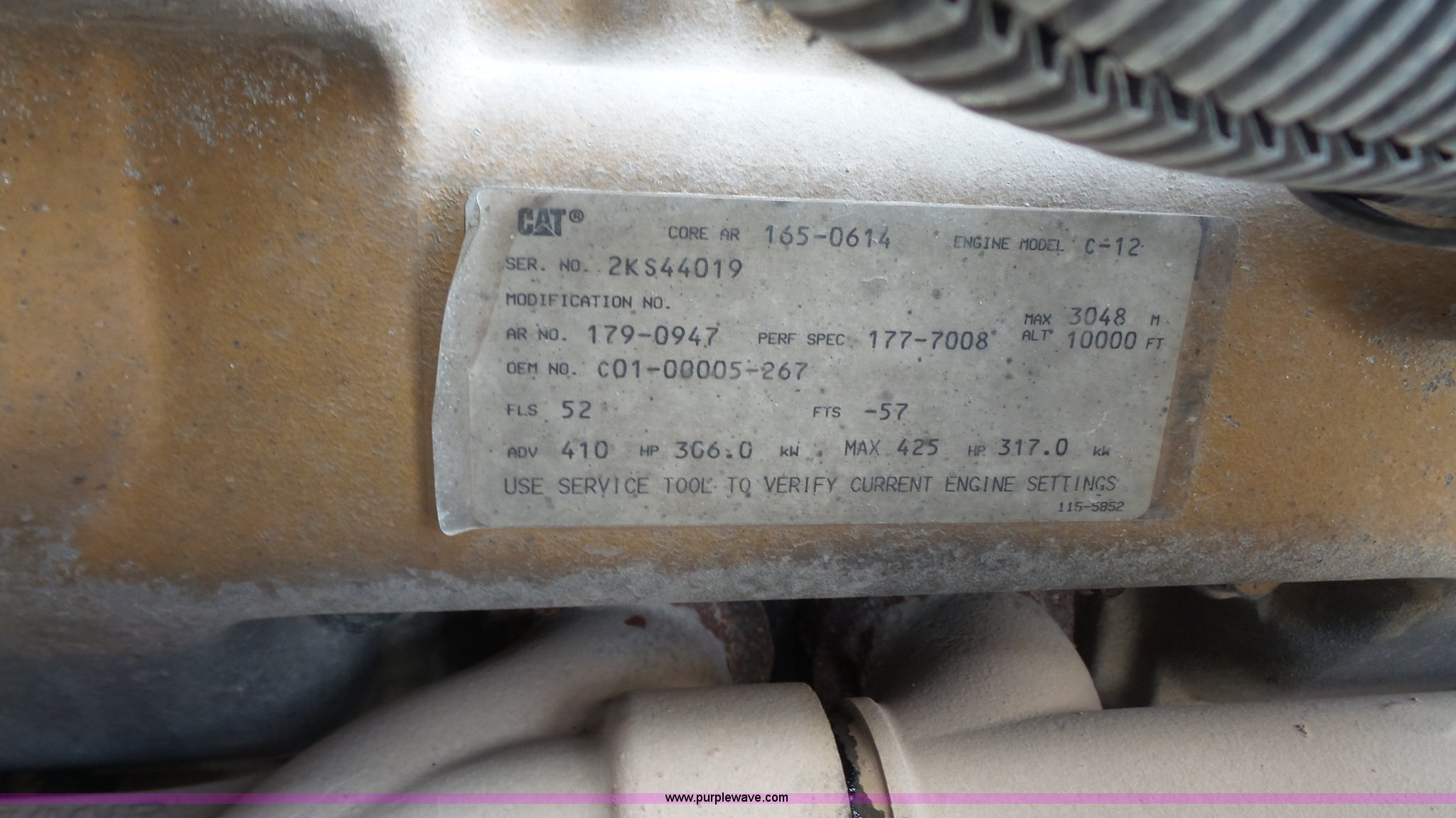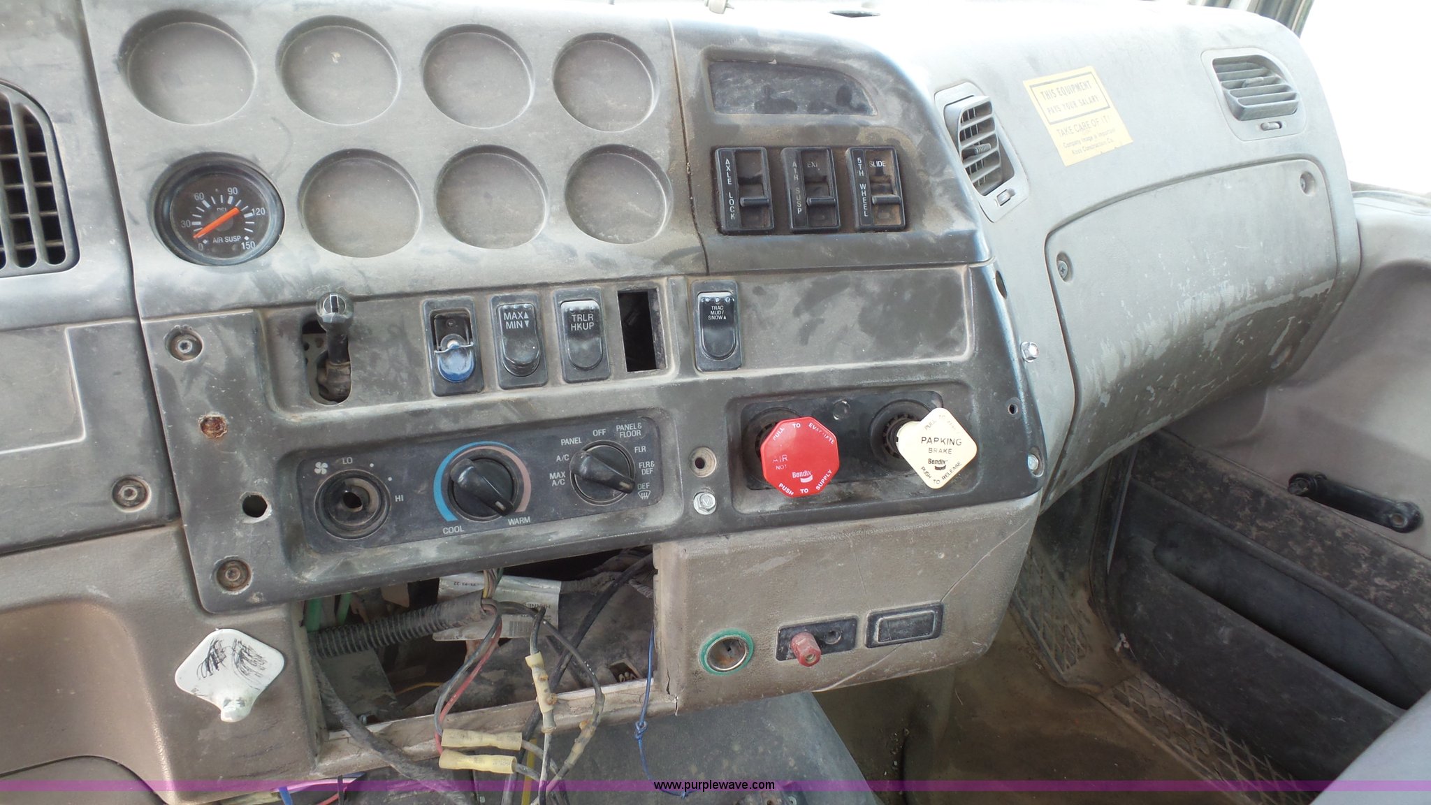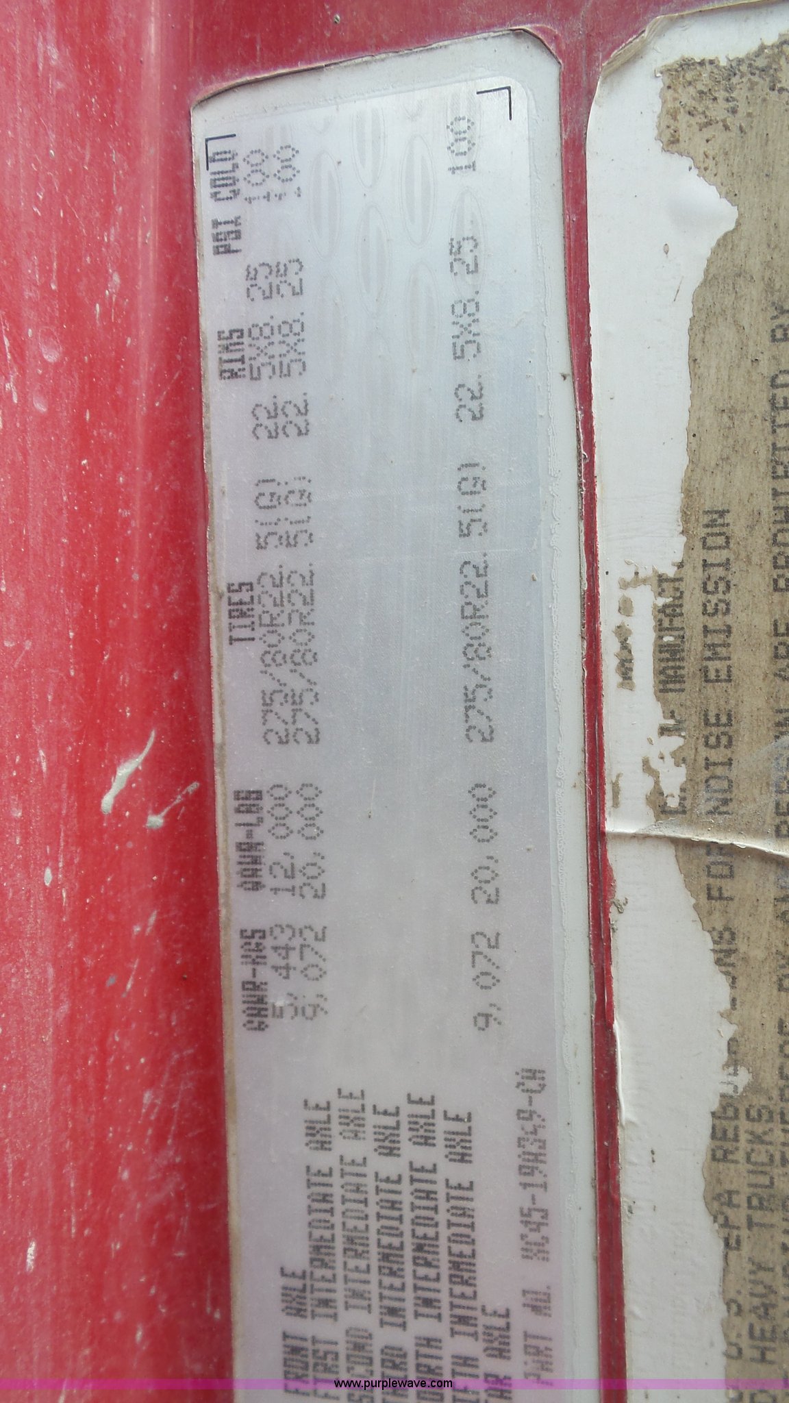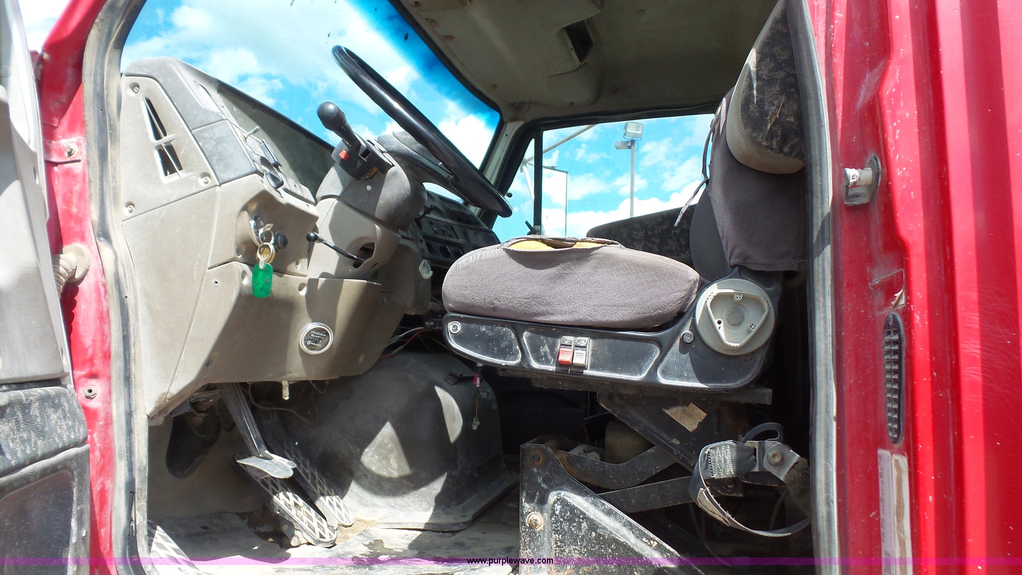 Purple Wave is selling a used Truck Tractor in Kansas. This item is a 2000 Sterling A9500 semi truck with the following: 474,313 miles on odometer, Caterpillar C12 12.0L L6 diesel engine, 410 HP, Serial 2KS44019, Eaton Fuller 10 speed manual transmission, Tandem axle, Inter-axle differential lock, AC and heat, No blower fan switch, Tilt, Cruise, Air suspension seat, Air ride cab, Dump valves, PTO, Wet kit, Beacon light, Single exhaust stack, Steel deck plate, Sliding fifth wheel pate, Single fuel tank, Plastic half fenders, Air brakes, 11R22.5 tires, GVWR 52,000 lbs, FAWR 12,000 lbs, IAWR 20,000 lbs, RAWR 20,000 lbs, Cosmetic damagea, Unit# 490