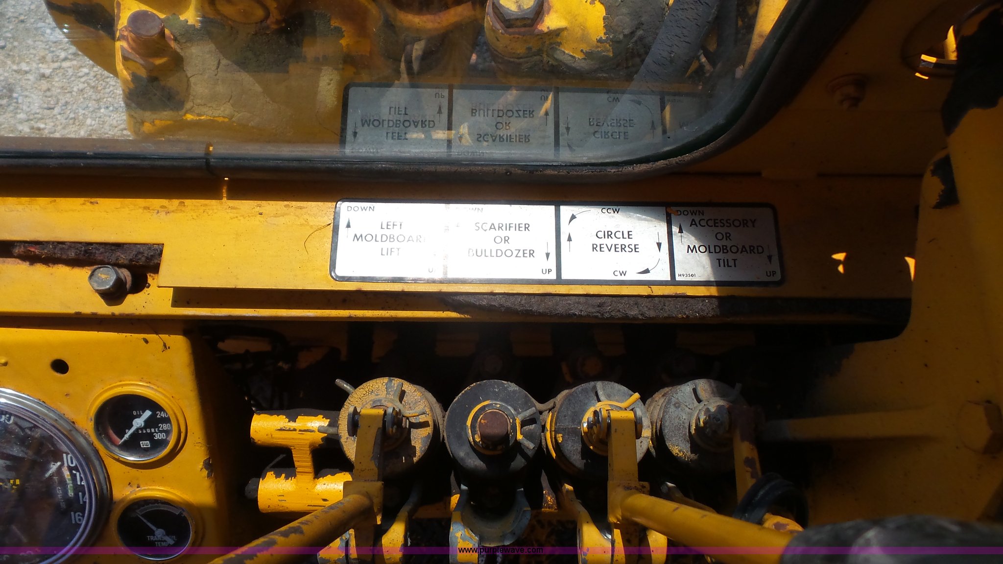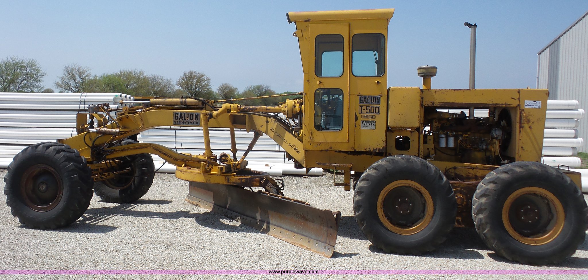 Purple Wave is selling a used Motor Grader in Kansas. This item is a 1975 Galion T500A motor grader with the following: 5,273 hours on meter, International six cylinder diesel engine, 150 HP, Serial 407TU2U060336, Direct-drive transmission, 4F-4R gears, Enclosed cab, Heat, Suspension seat, Seven hydraulic control valves, Rigid frame, 14'W moldboard, Tip control, Side shift, 14.00-24 tires, Brakes inoperable, need repaired, Serial IC-06789
