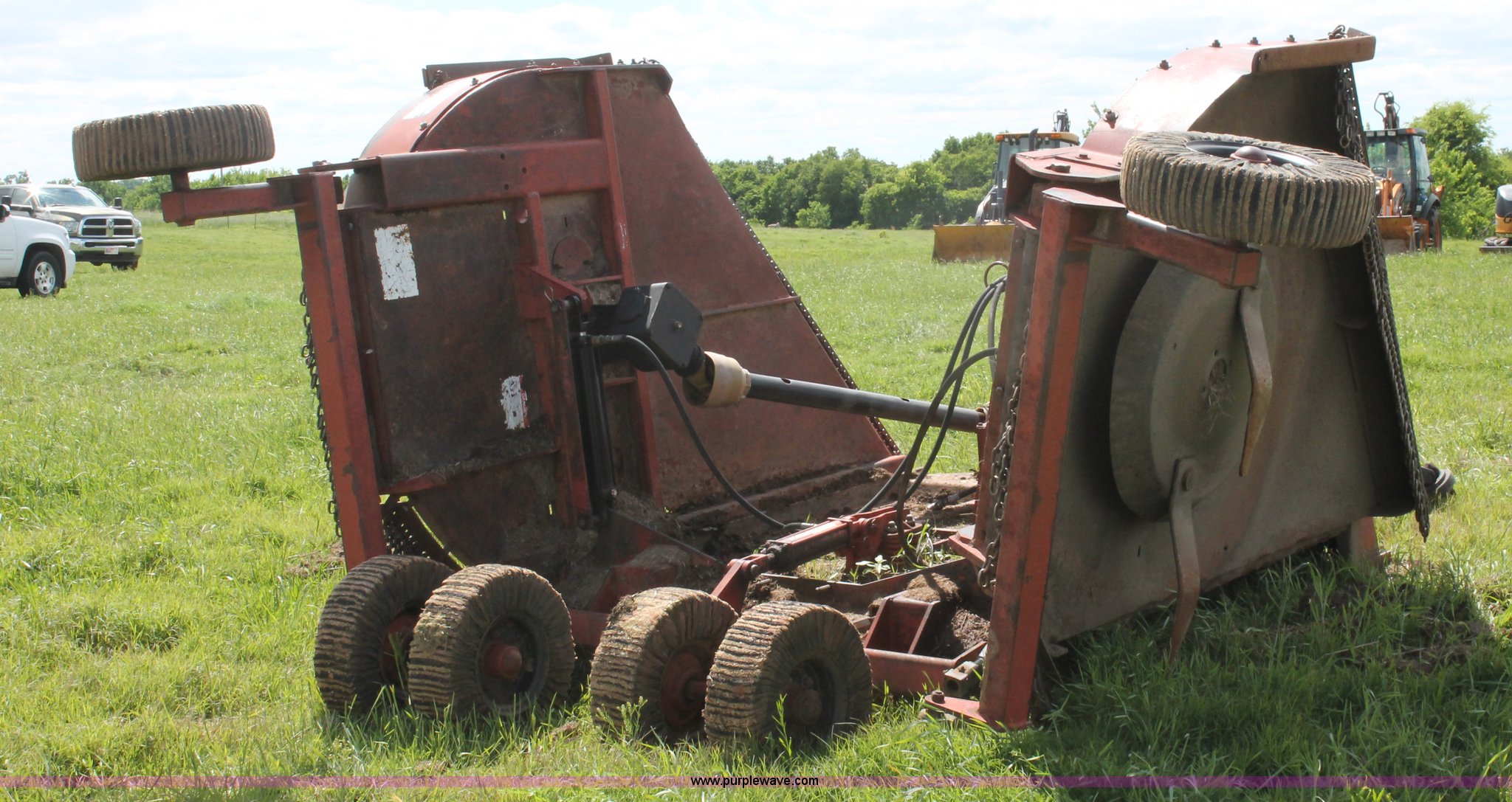 Purple Wave is selling a used Mower, Cutter, Shredder in Oklahoma. This item is a Rhino batwing mower with the following: 15' cutting capacity, PTO, Hydraulic fold and lift, Safety chains, Pin hitch, 18" wheels