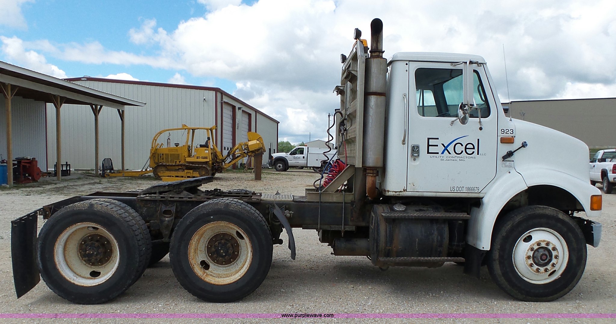 Purple Wave is selling a used Truck Tractor in Missouri. This item is a 1992 International 8100 semi truck with the following: Unknown miles on odometer, Odometer inoperable, 16,522 hours on meter, 30,195 miles on hubodometer, Caterpillar C10 10.3L L6 turbo diesel engine, Eaton Fuller Road Ranger nine speed manual transmission, Tandem axle, Full differential lock, AC and heat, Non-operational AC, Cruise, AM/FM/cassette, Air suspension seat, Beacon light, Single rear exhaust stack, Aluminum deck plate, Sliding fifth wheel plate, Aluminum headache rack, Chain hanger, Dual fuel tanks, Steel quarter fenders, Mud flaps, Spring suspension, Air brakes, 11R22.5 front tires, 285/75R24.5 rear tires, GVWR 48,000 lbs, FAWR 12,000 lbs, IAWR 18,000 lbs, RAWR 18,000 lbs, Unit# 923