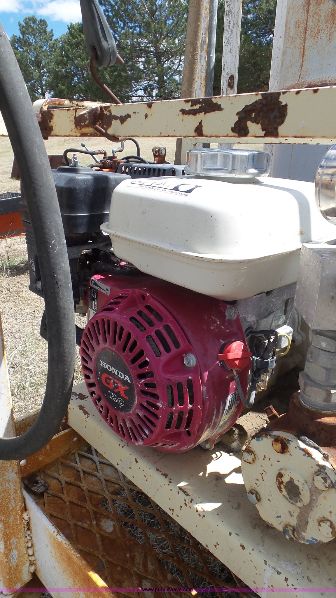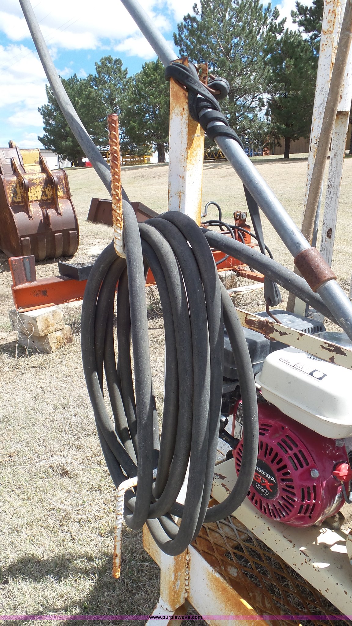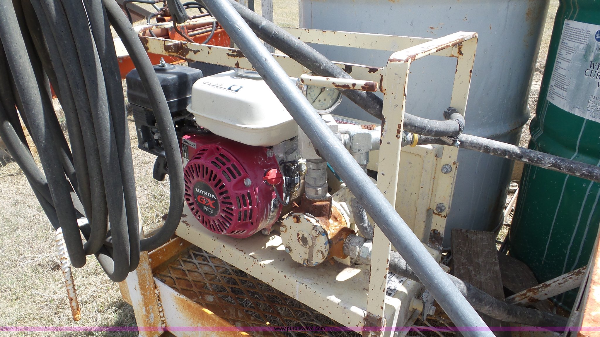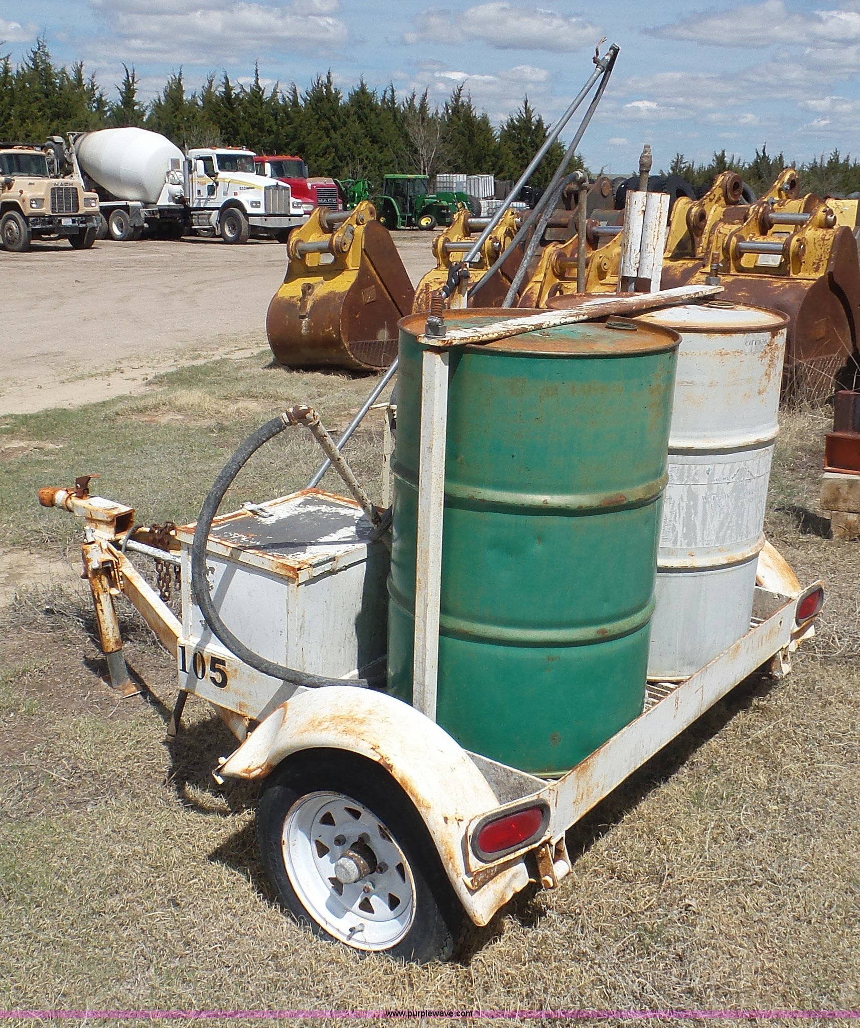 Purple Wave is selling a used Trailer Other in Kansas. This item is a Terex OMS201 curing trailer with the following: Honda GX120 gas engine, (2) 55 gallon barrels, Hose with sprayer, Ball hitch, 5.50-12 tires, Serial 000262789