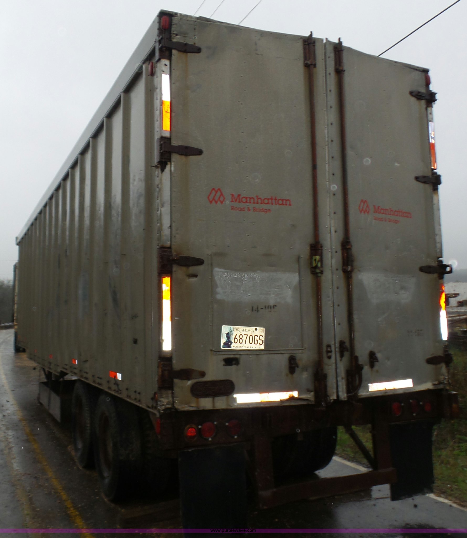 1998 Shop built dry van trailer. 35'L, Under carriage storage, Side entry door, Dual leg landing gear, Tandem axle, Air brakes, 10-20 tires, Unit# MRB14-106. Oklahoma title. 981745109A. Manhattan Road & Bridge. 3101 W. 65th Street. Little Rock, AR 72209