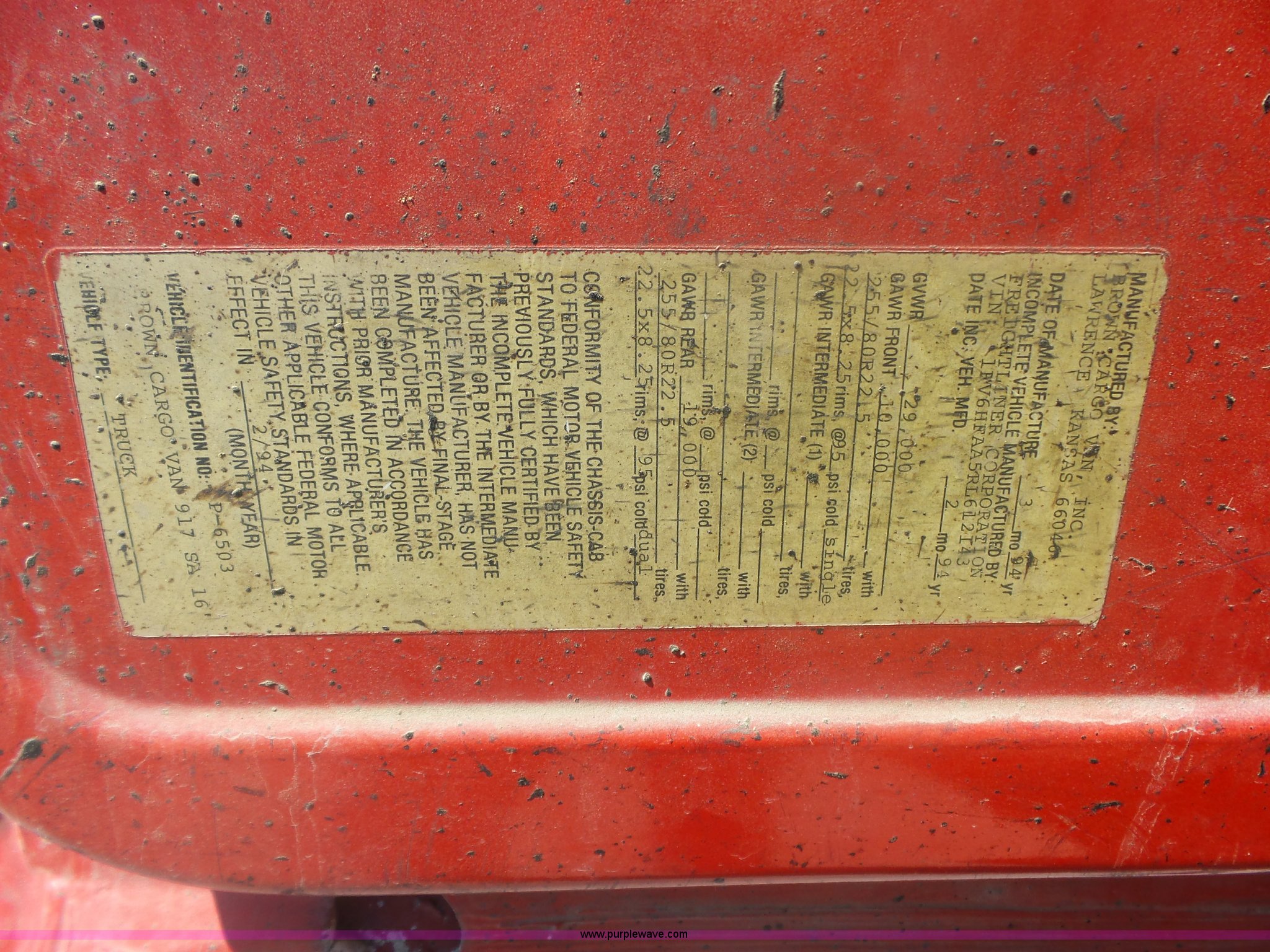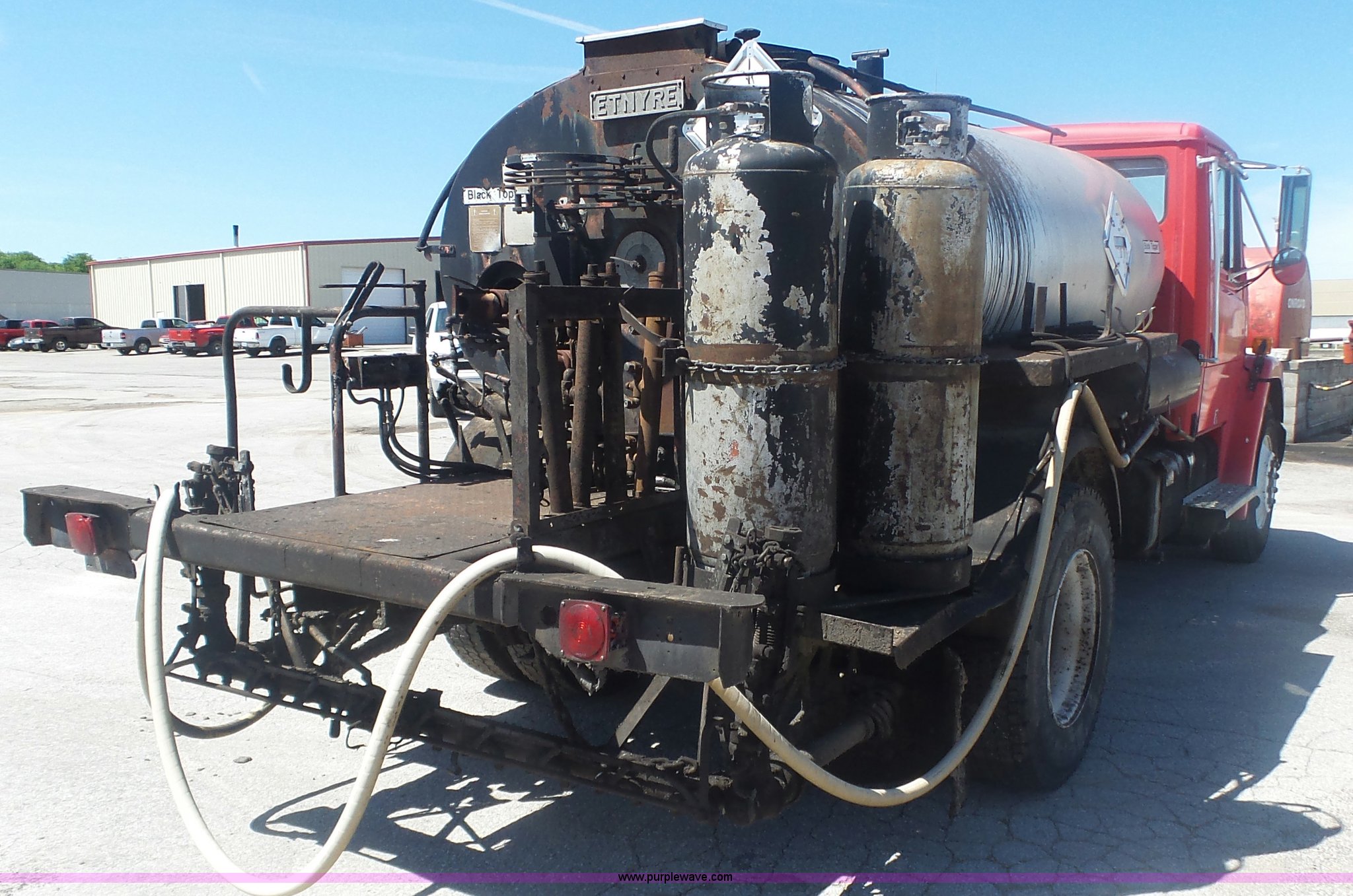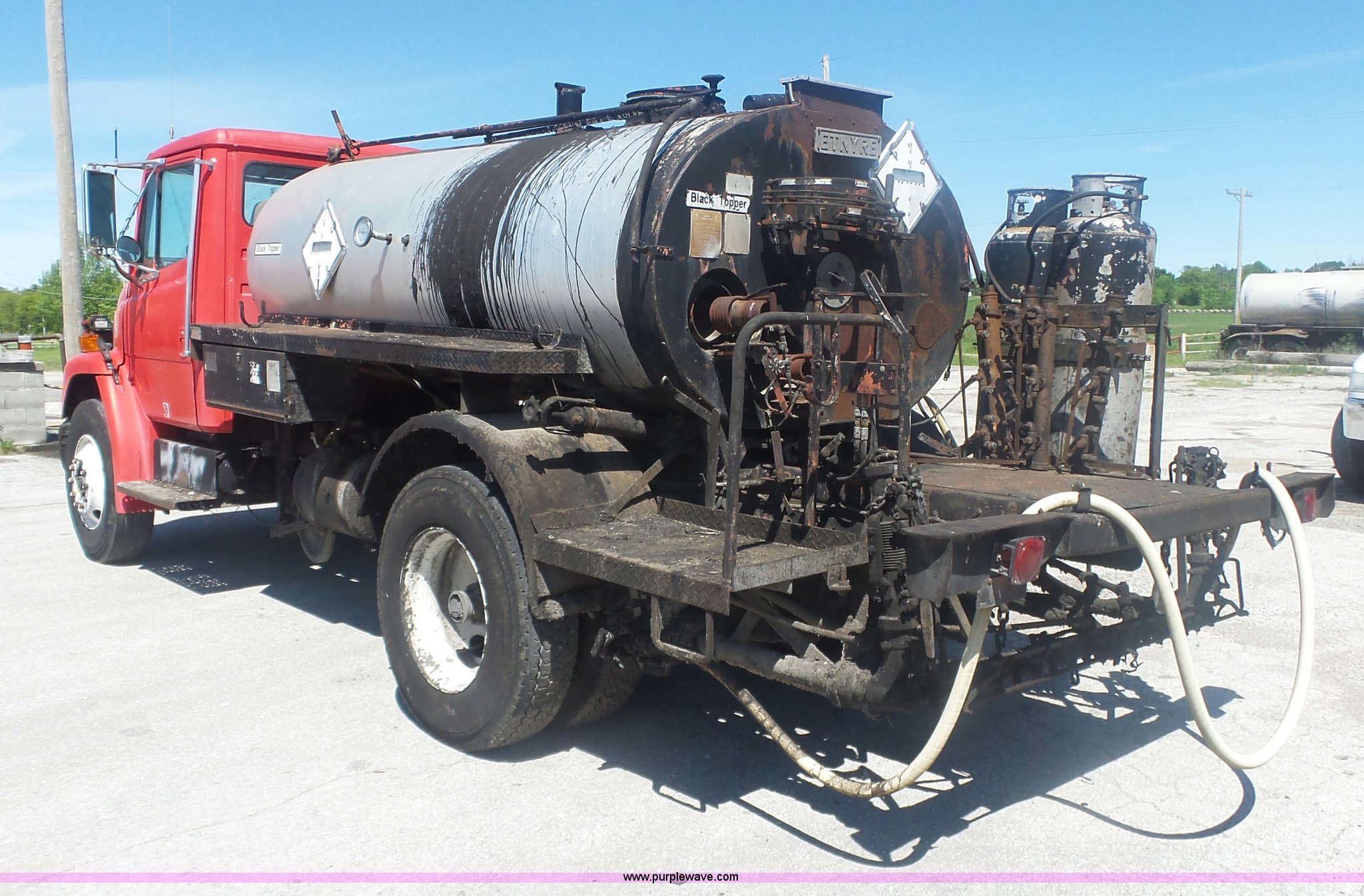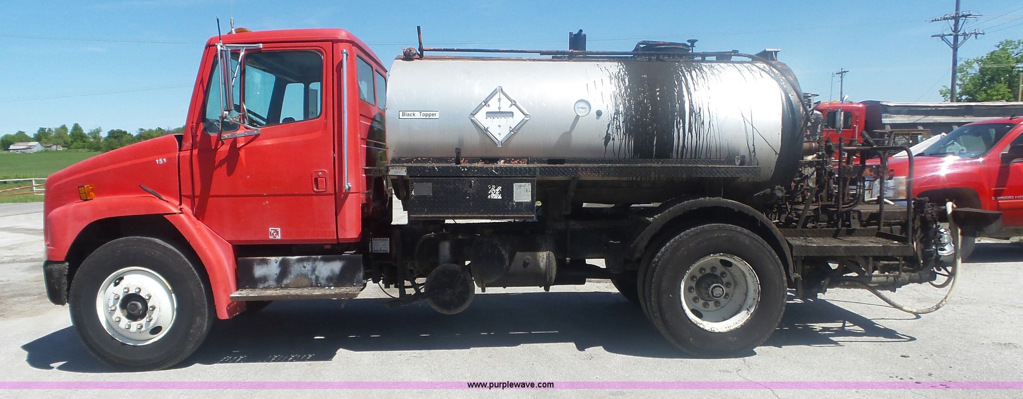 Purple Wave is selling a used Oil Distributor Truck in Missouri. This item is a 1994 Freightliner FL70 oil distributor truck with the following: 248,080 miles on odometer, 15,370 hours on meter, Cummins 5.9L L6 turbo diesel engine, Five speed manual transmission, Single axle, AC and heat, AM/FM, Heated mirrors, Air suspension seat, PTO, Single exhaust stack, Etnyre BX-HS oil distributor bed, 1,074 gallon capacity, Serial J-3804, Propane burner, In-cab controls, Spray wand, 10'W spray boom, Folding,, Single fuel tank, Spring suspension, Air brakes, 11R22.5 front tires, 295/75R22.5 rear tires, GVWR 29,000 lbs, Unit# 151