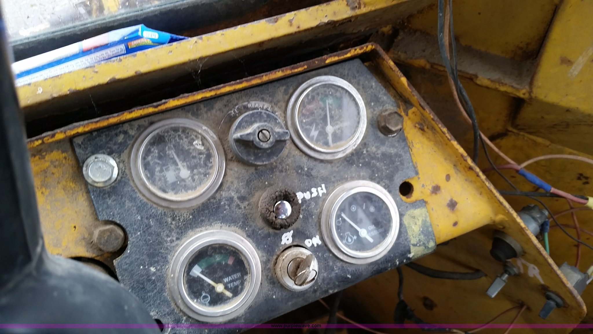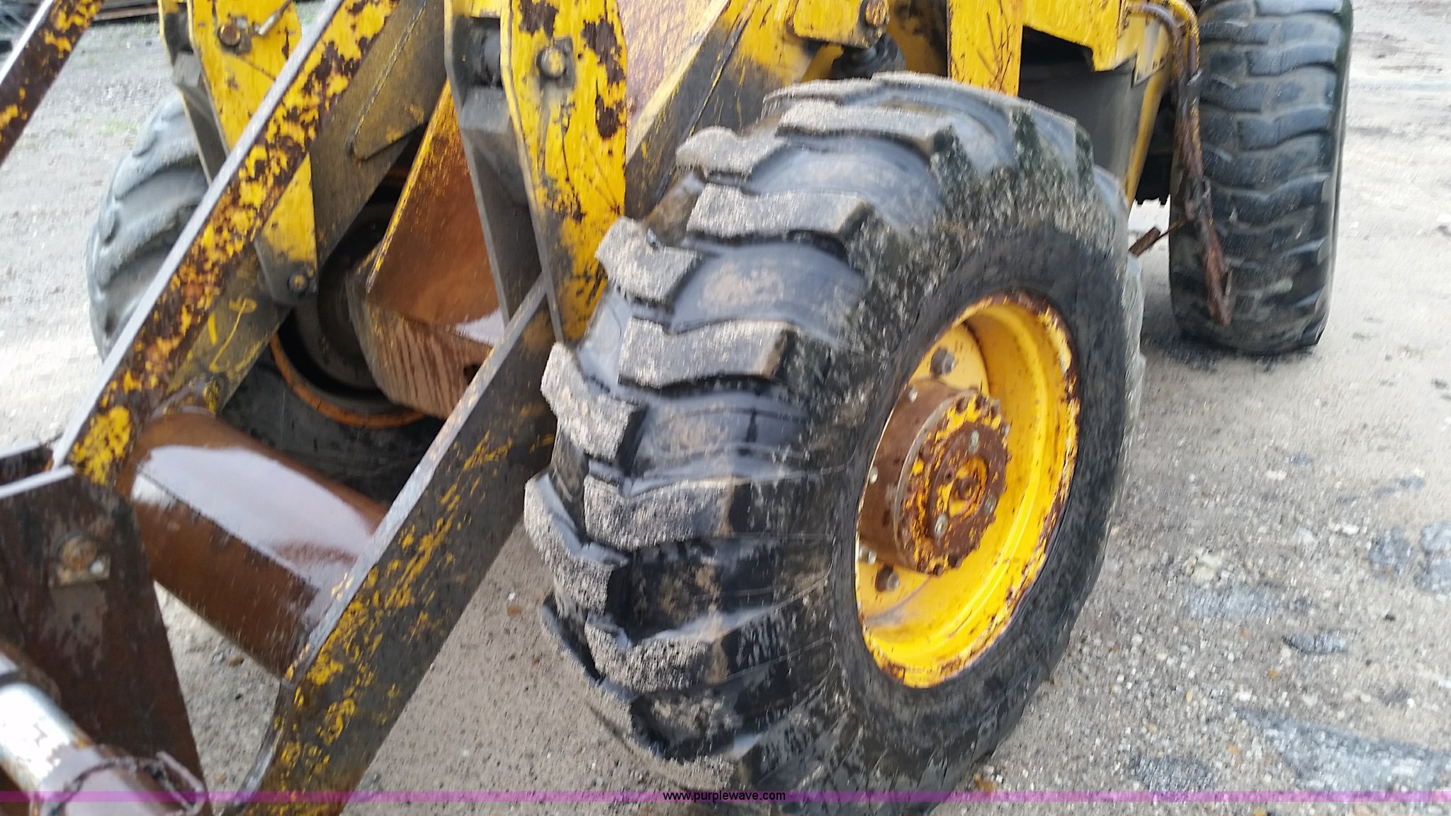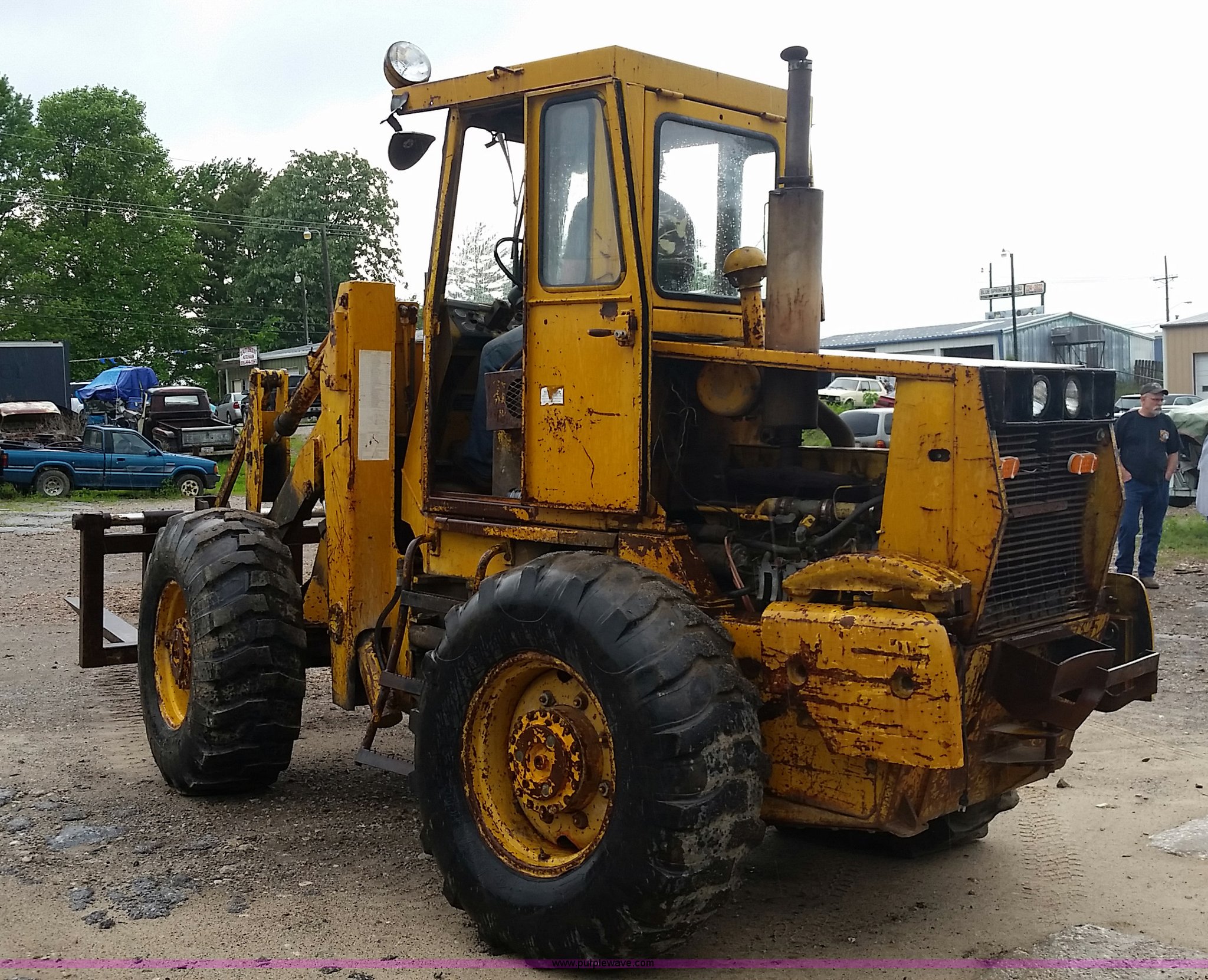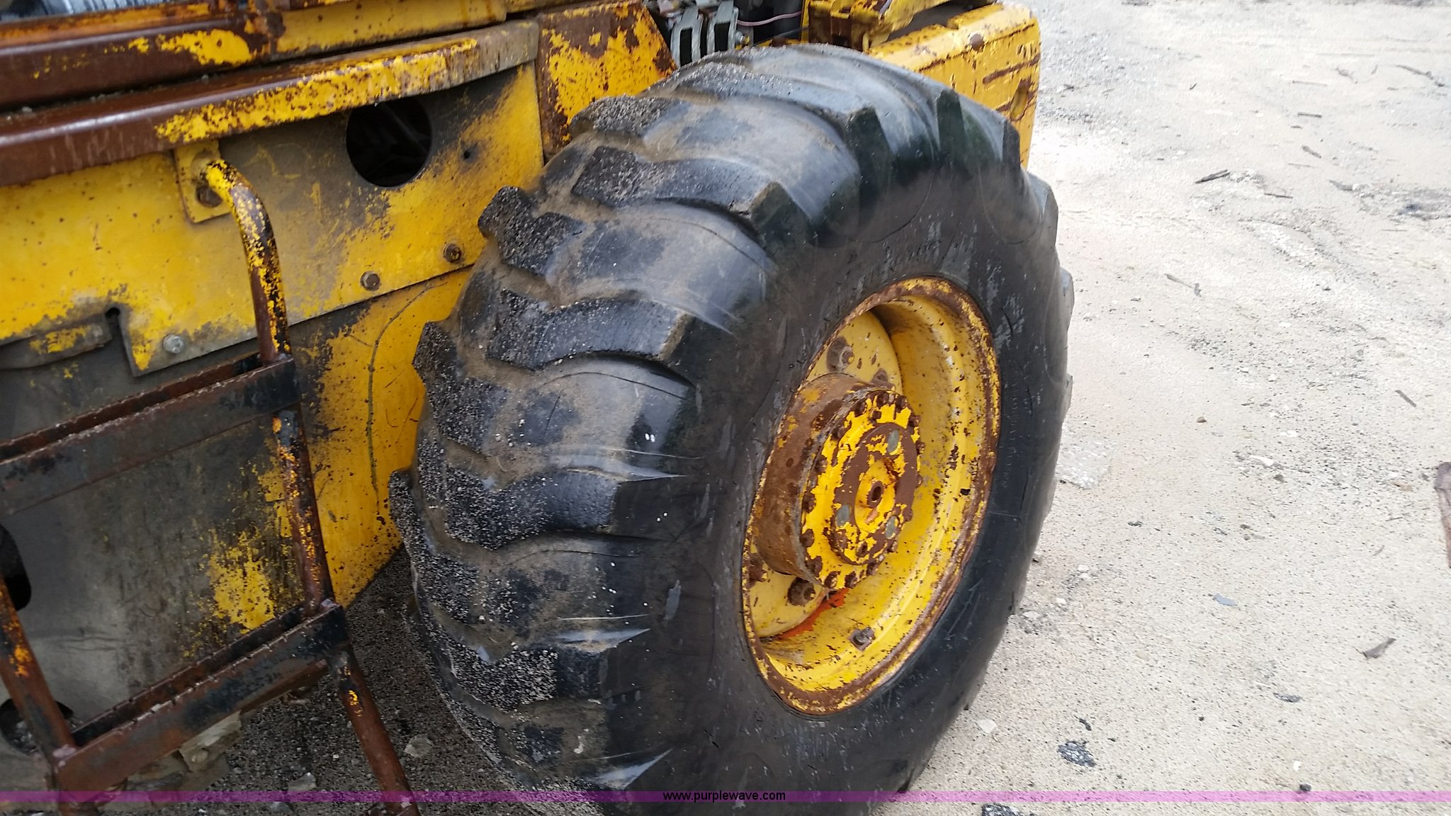 Purple Wave is selling a used Wheel Loader in Missouri. This item is a 1974 Allis Chalmers 840 wheel loader with the following: Six cylinder diesel engine, Powershift transmission, Enclosed cab, Heat, 87"W loader bucket, 72"L x 6"W forks, Counterweight, 16.9-24 tires, 12,300 lbs. base operating weight, Right rear tire needs to be replaced, Additional counterweight, Serial 840-3280