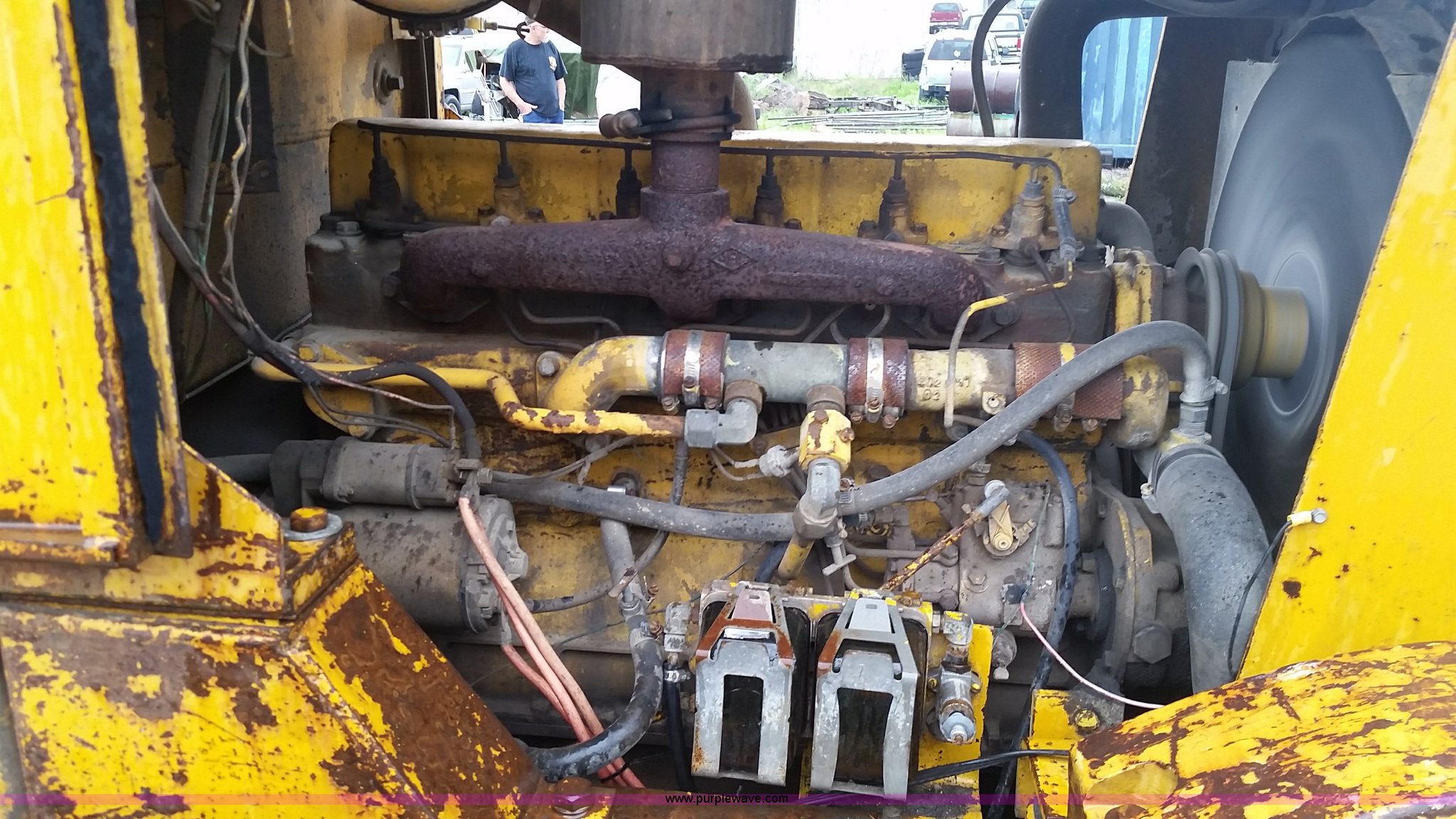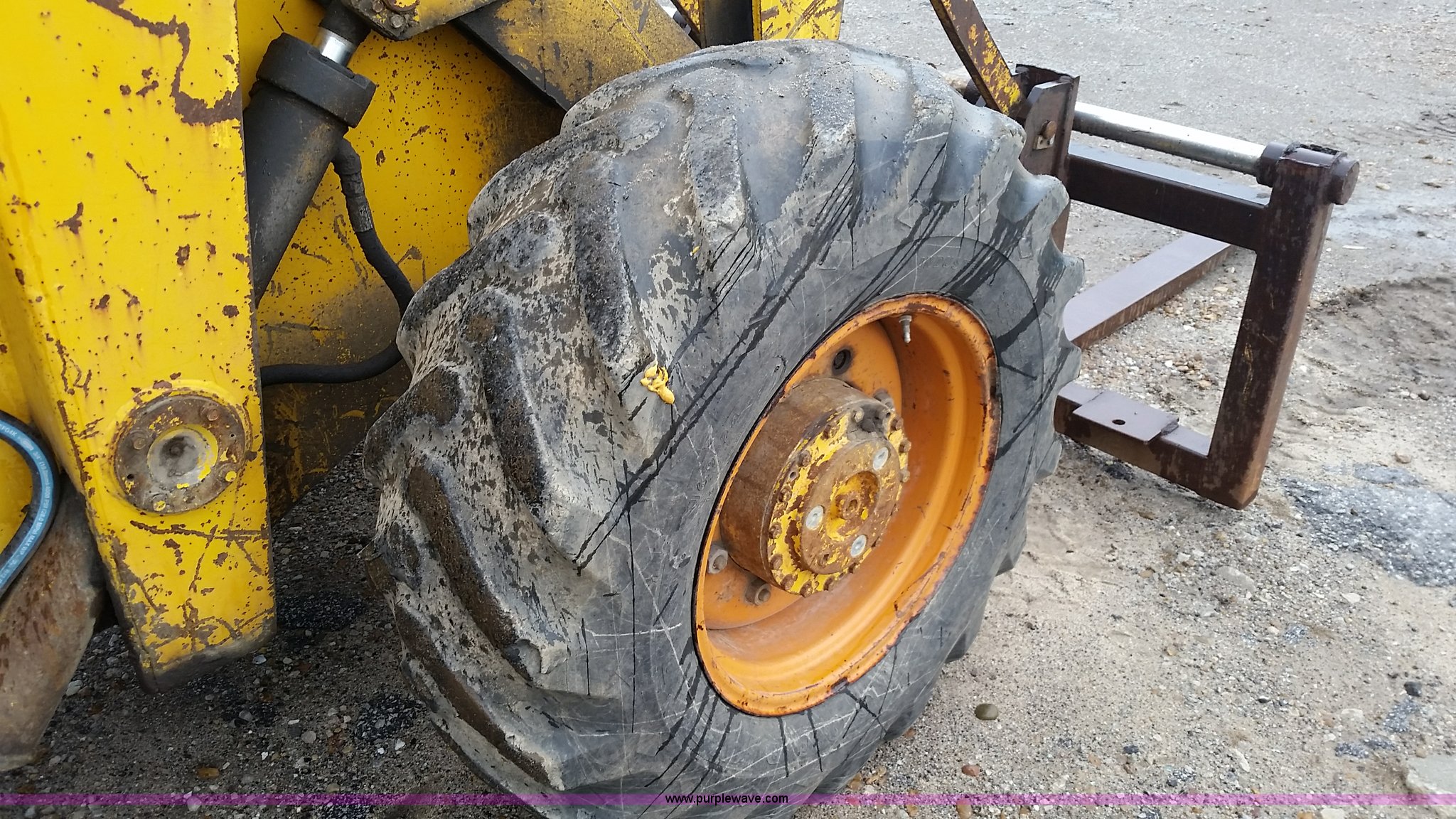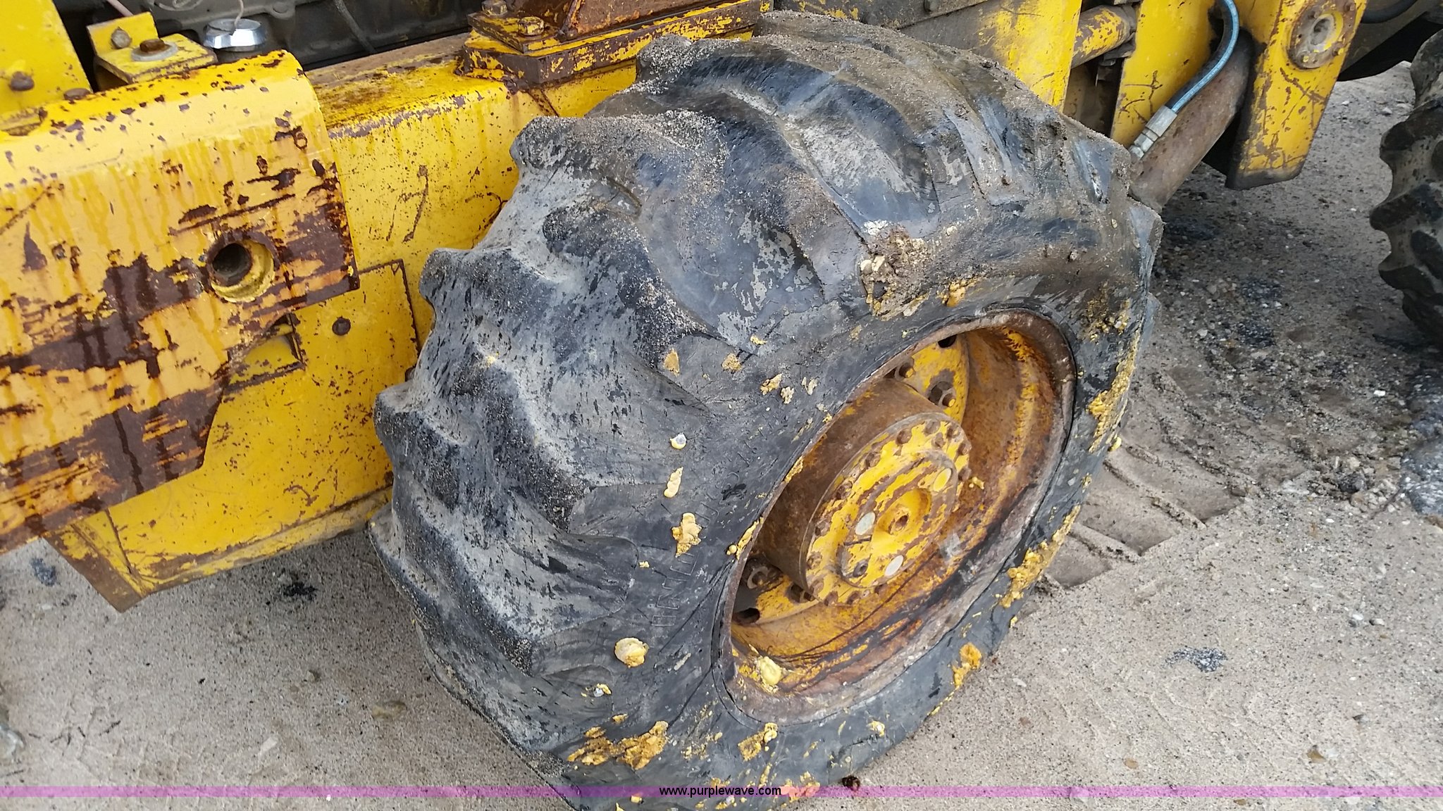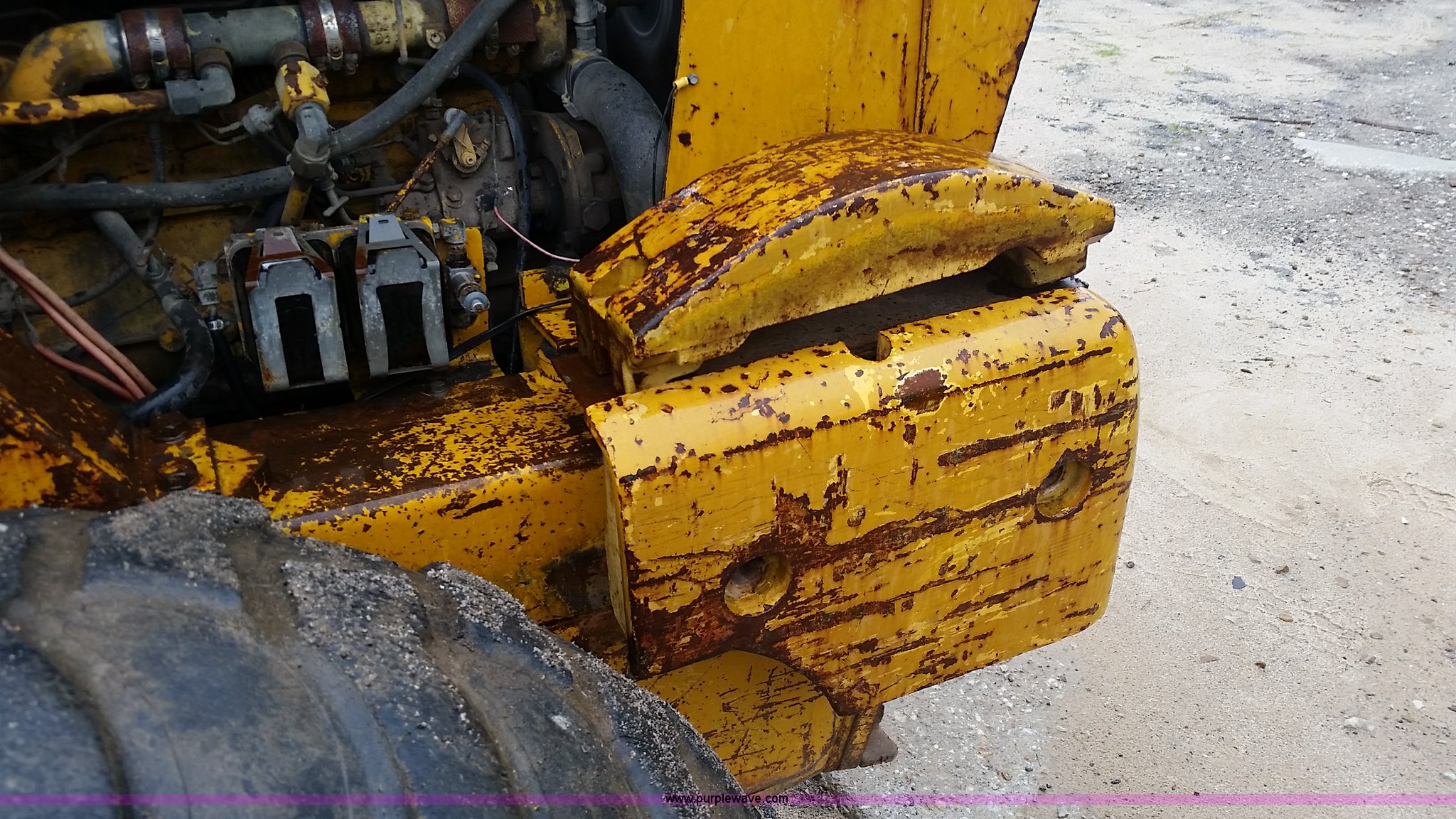 Purple Wave is selling a used Wheel Loader in Missouri. This item is a 1974 Allis Chalmers 840 wheel loader with the following: Six cylinder diesel engine, Powershift transmission, Enclosed cab, Heat, 87"W loader bucket, 72"L x 6"W forks, Counterweight, 16.9-24 tires, 12,300 lbs. base operating weight, Right rear tire needs to be replaced, Additional counterweight, Serial 840-3280