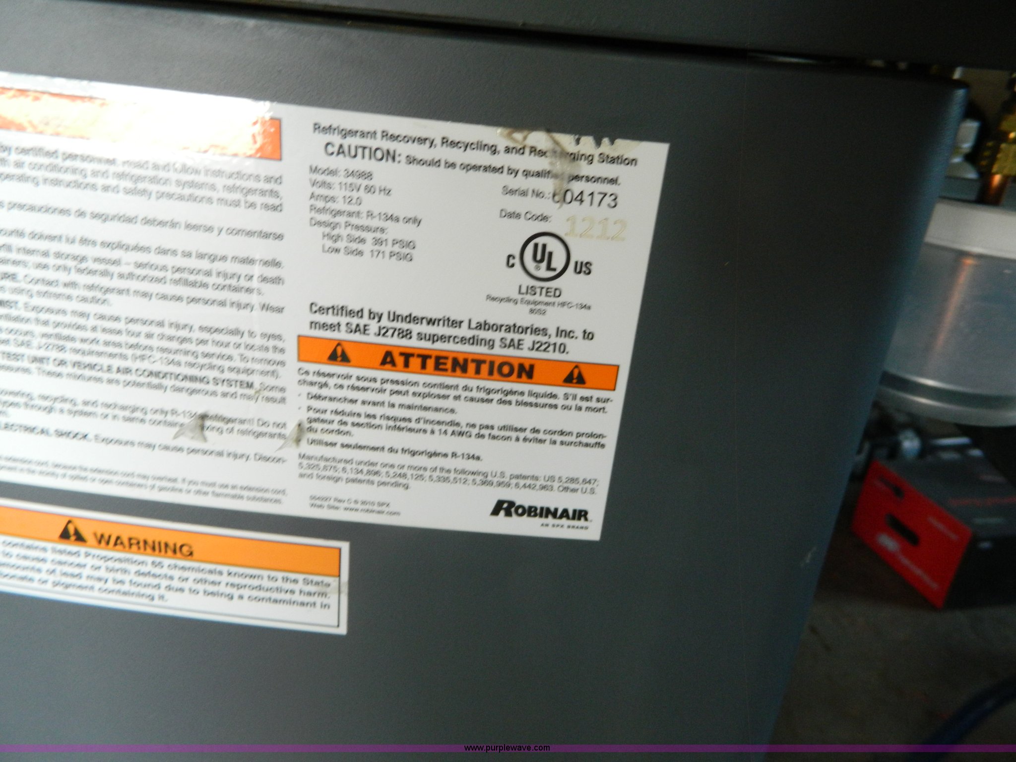 Take a look at this used Robinair 34988 recovery/recycle/recharge unit being sold on June 2nd, 2016 in the SOLD! June 2 Prairie Ag & Auto Business Liquidation Auction. Take a look at all of the item information below or take a look at similar auctions for Shop Tools.
