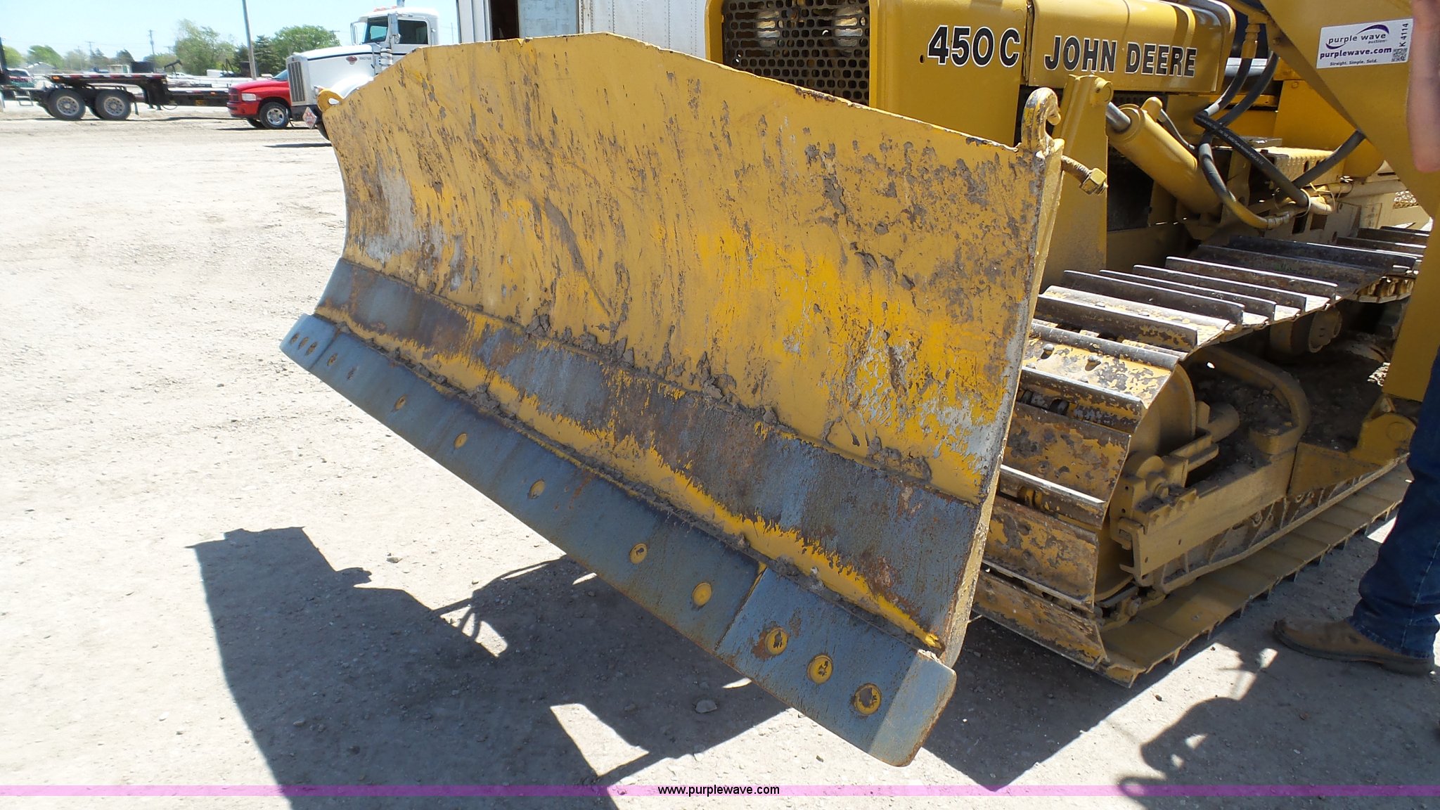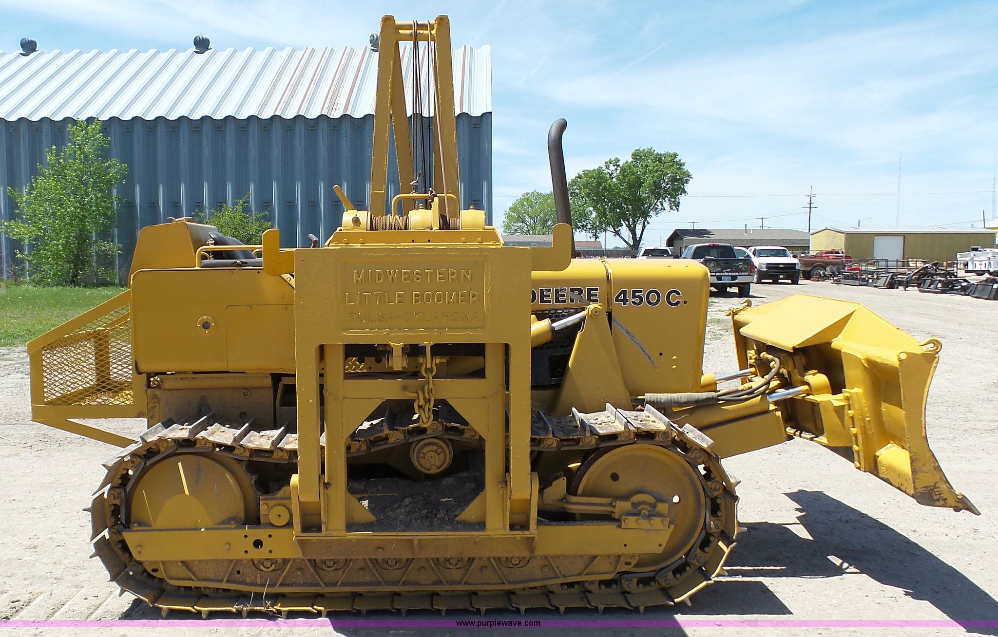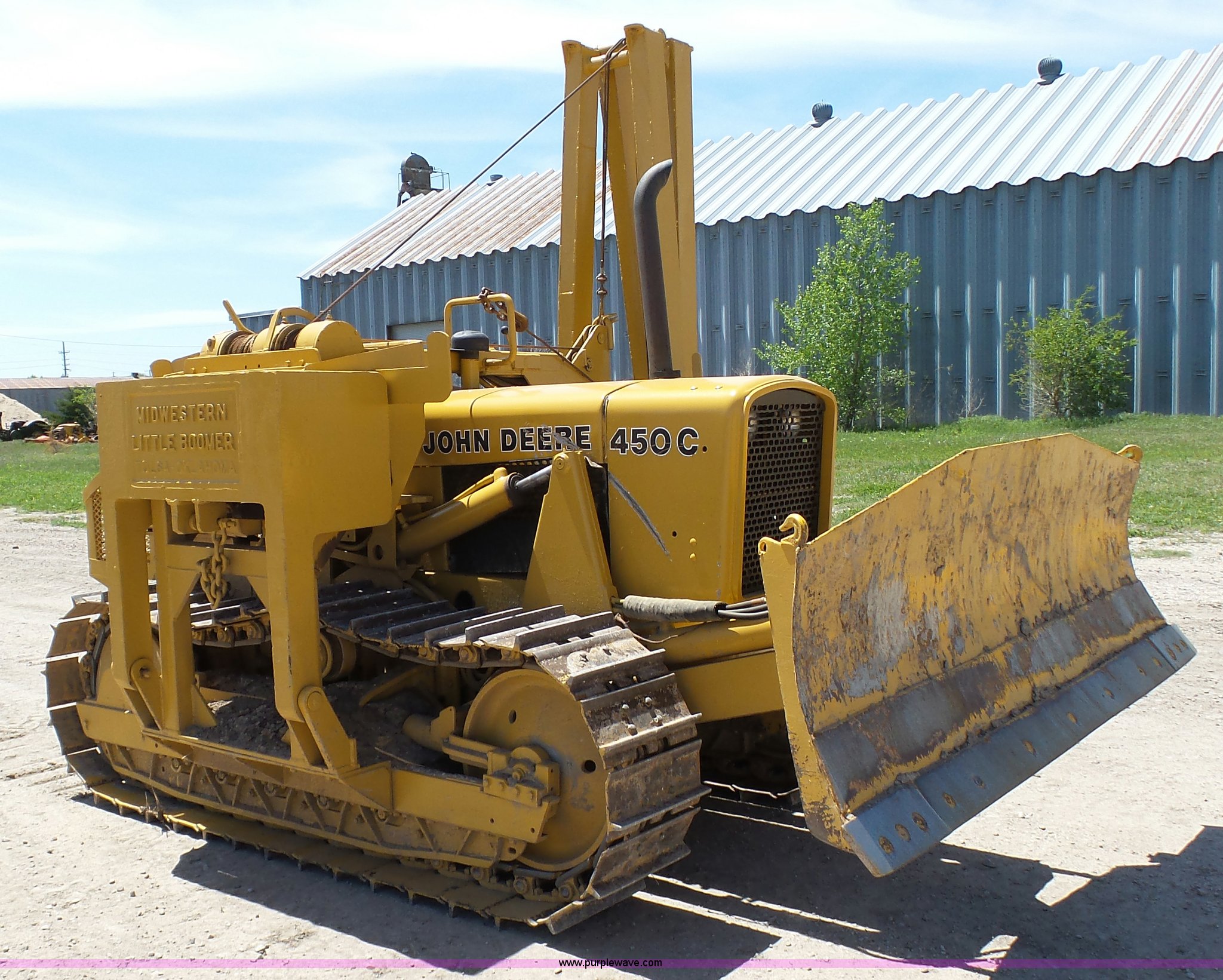 Purple Wave is selling a used Crawler Pipelayer in Kansas. This item is a 1982 John Deere 450C pipelayer with the following: Unknown hours on meter, John Deere 3.6L four cylinder diesel engine, Powershift transmission, 8F-8R gears, Suspension seat, Front and rear work lights, Clutch brake, Screen guards, 10'W six-way dozer blade, Ramsey winch, Midwestern 450 pipelayer, 14' boom length, Rear draw bar, Five bottom rollers, 16"W single grouser track pads, 14,172 lbs. base operating weight, Serial 4500C378007T
