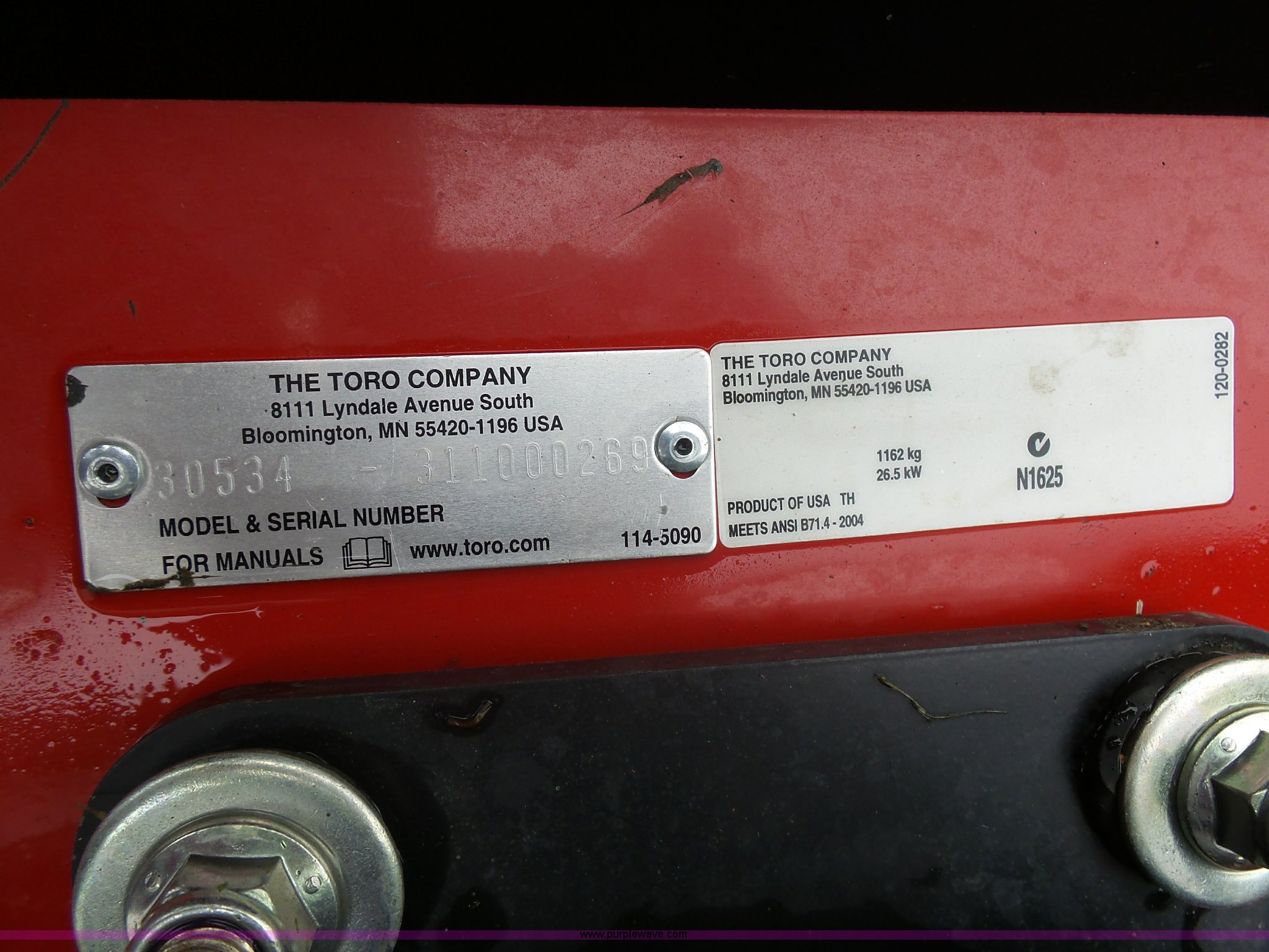Purple Wave is selling a used Commercial Turf Mower in South Dakota. This item is a Toro Groundsmaster 360 lawn mower with the following: Model 30534, 926 hours on meter, 72" cut, Kubota four cylinder diesel engine, 36 HP, Serial BA2097, All wheel steer, Side or rear discharge, 14 mph max mowing speed, 8.5 mph max reverse speed, 24x10.5-12 tires, 1,162 kg base operating weight, Serial 311000269
