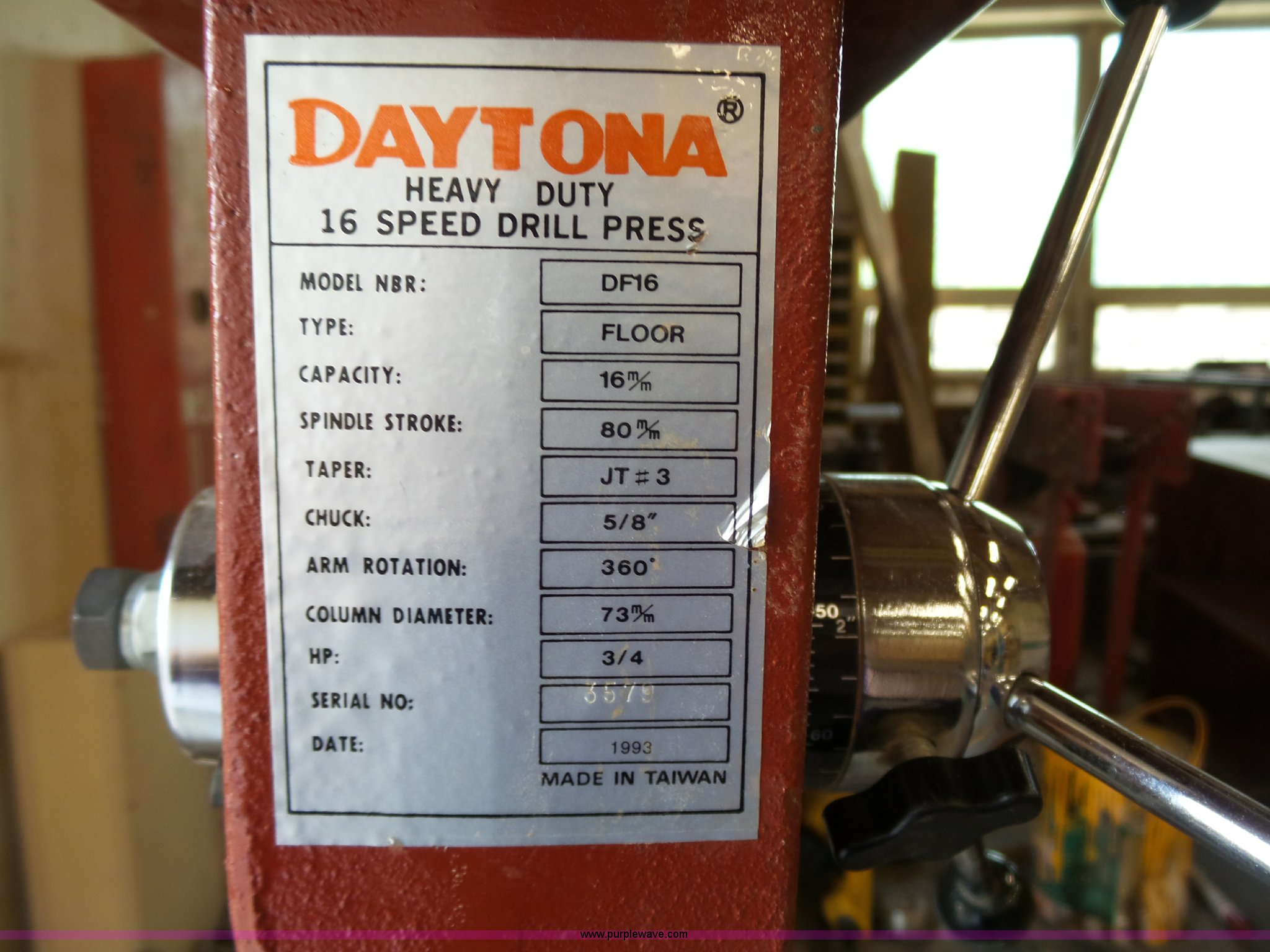 1993 Daytona DF16 drill press has sold in White City, Kansas for $357.50. Item AM9579 sold on June 7th, 2016.