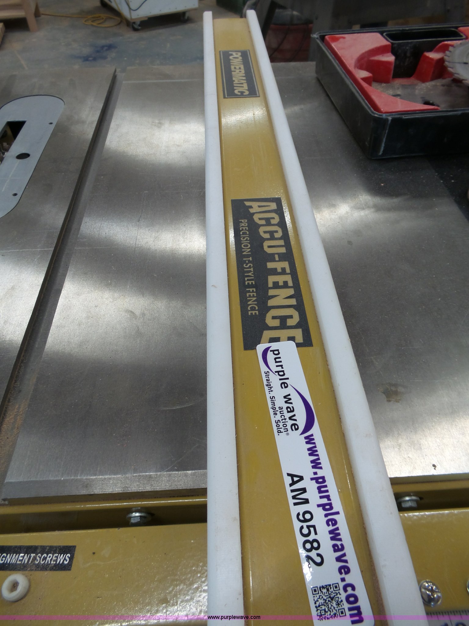Purple Wave is selling a used Tools in Kansas. This item is a Powermatic 64A table saw with the following: 8" dado set, 10" rubsaw blade, Accu fence, Plate covers, 36" table with extension, Serial 11060642032