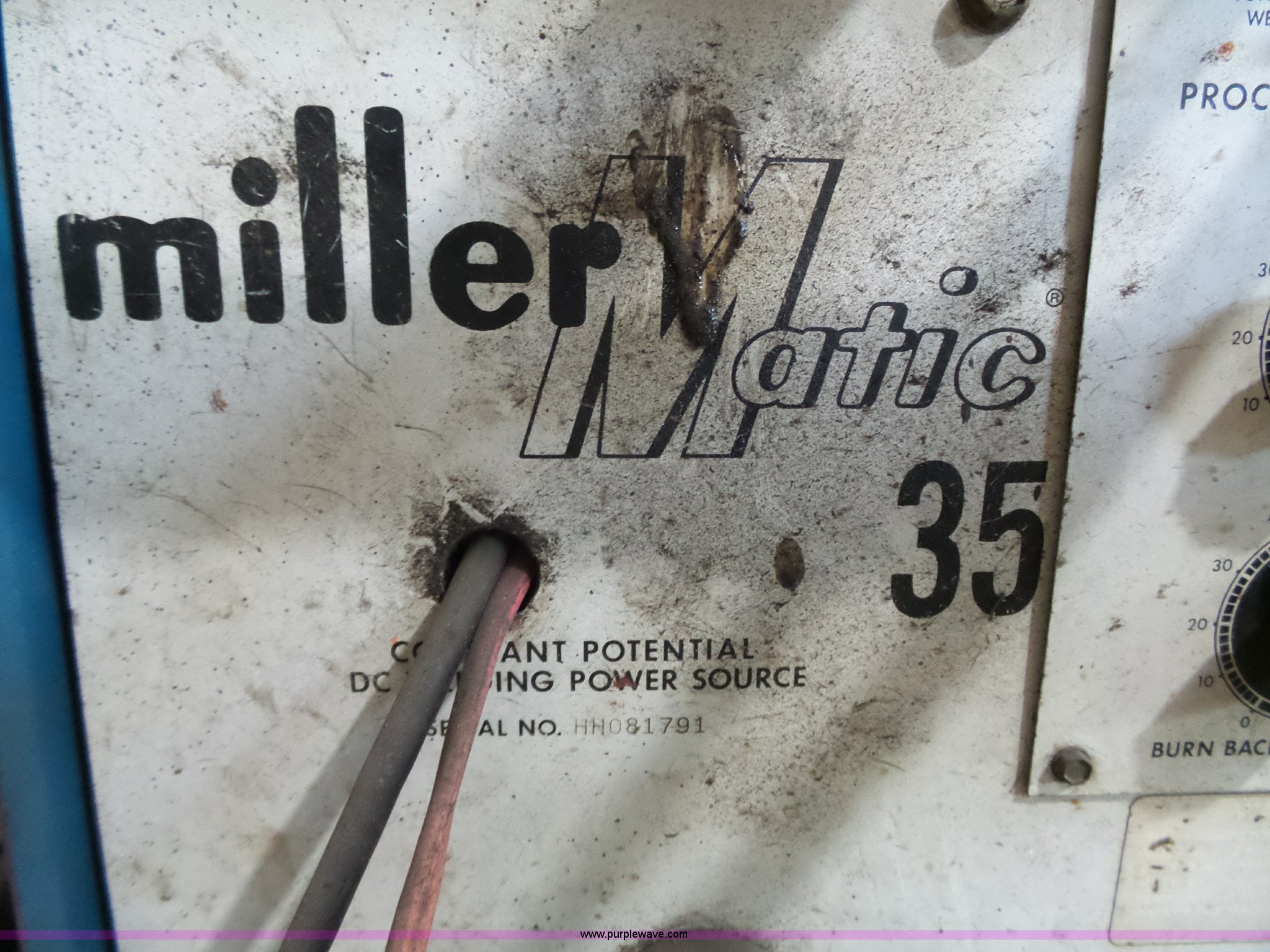 Purple Wave is selling a used Welder (Manual) in Kansas. This item is a Miller Miller Matic 35 wire feed welder with the following: Model SK35, Leads, Non-operational unit, Serial HH081791