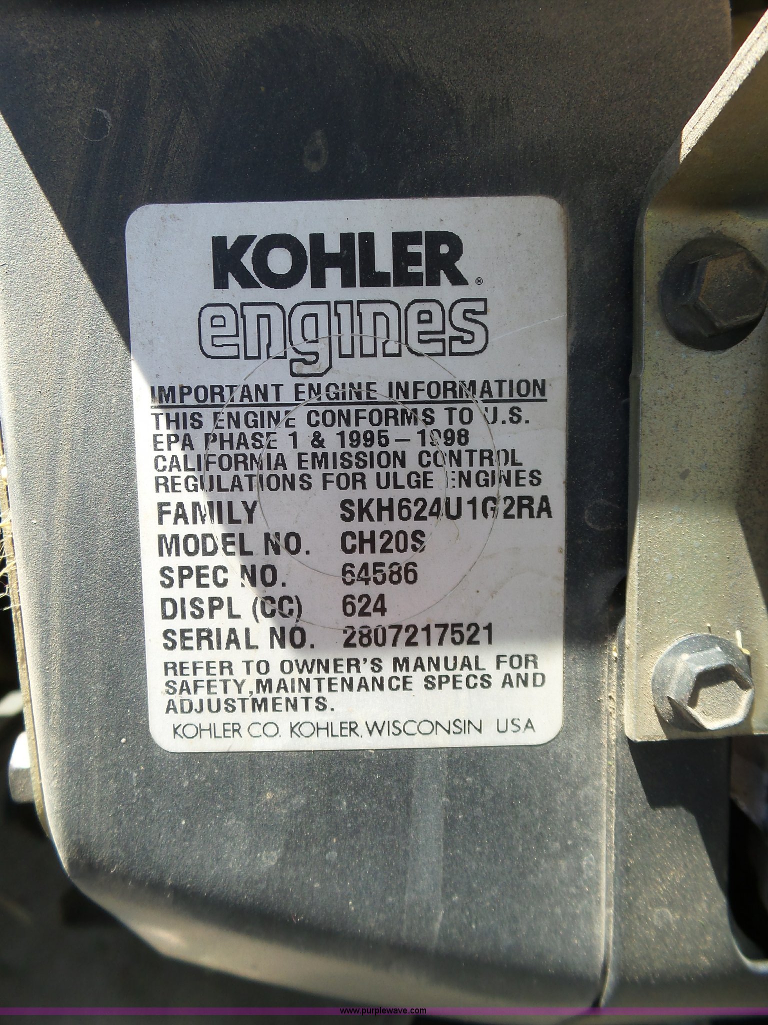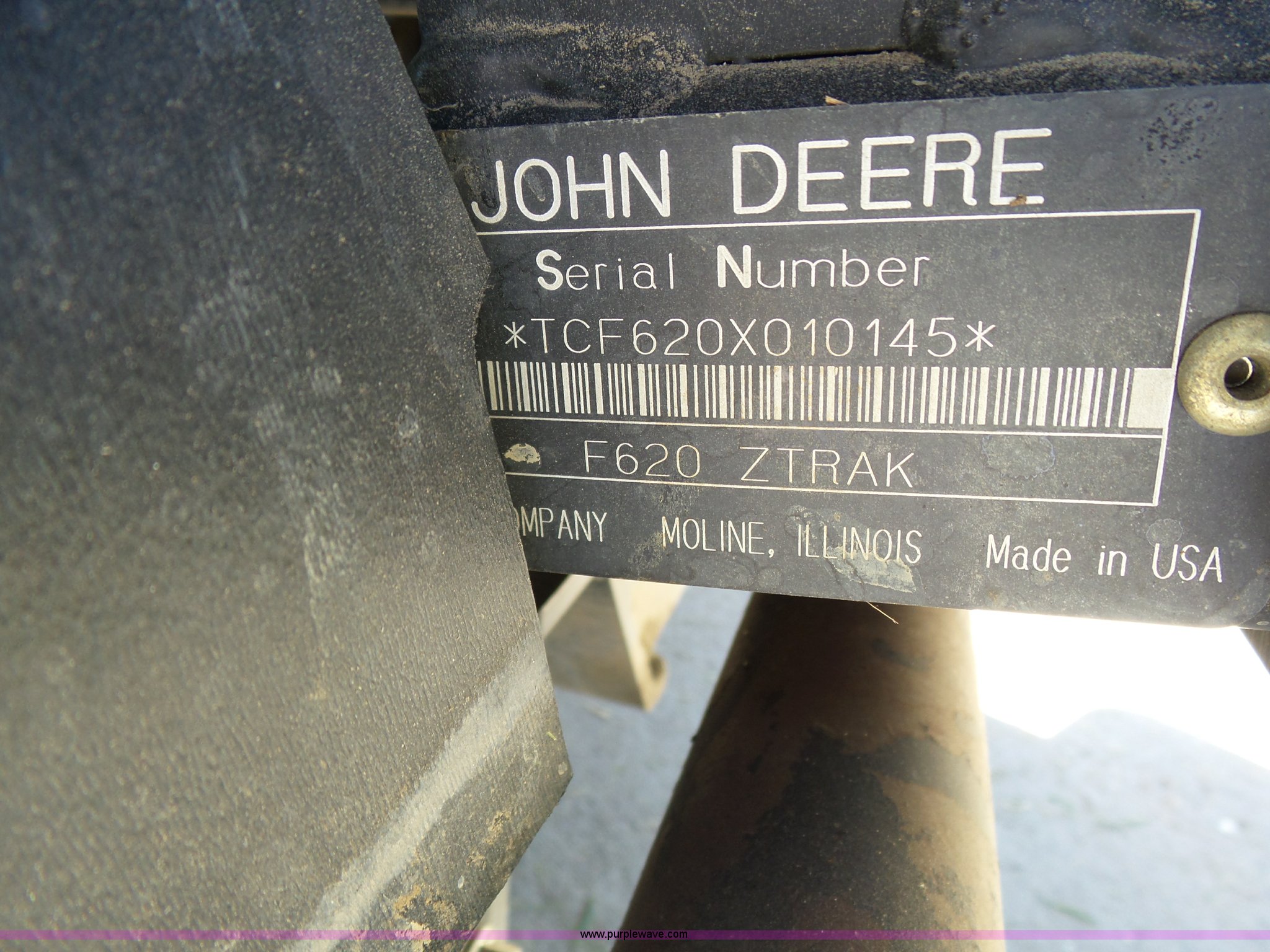 Purple Wave is selling a used Lawn Mower in Kansas. This item is a John Deere F620 Z-Trak ZTR lawn mower with the following: 2,090 hours on meter, Hours may vary, still in use, 48" cut, Kohler 625cc V-twin gas engine, Model CH205, 20 HP, Serial 2807217521, Deck serial TC482TX010116, 20x10.00-10 front tires, 13x6.50-6 rear tires, Cosmetic damage, Serial TCF620X010145