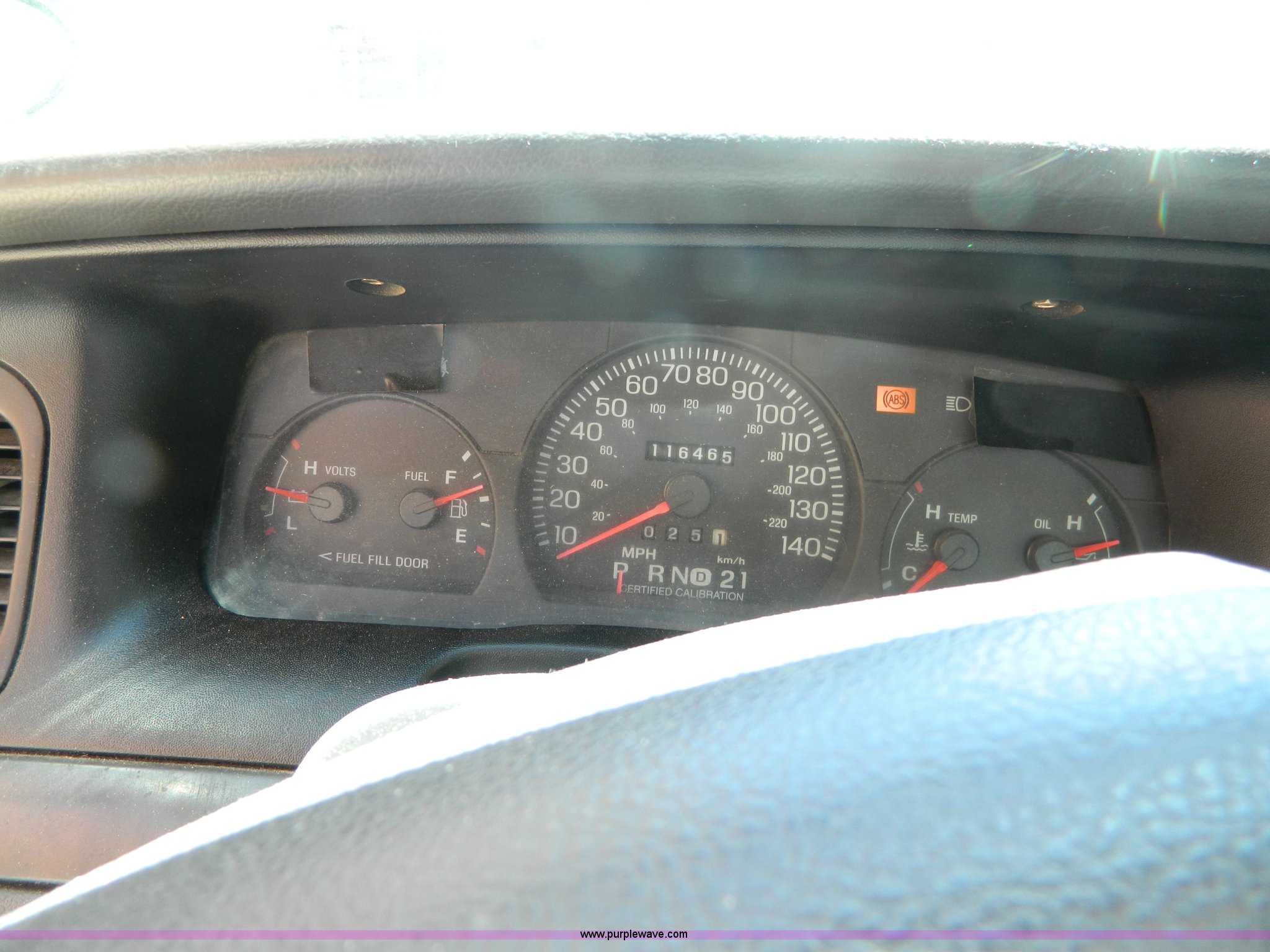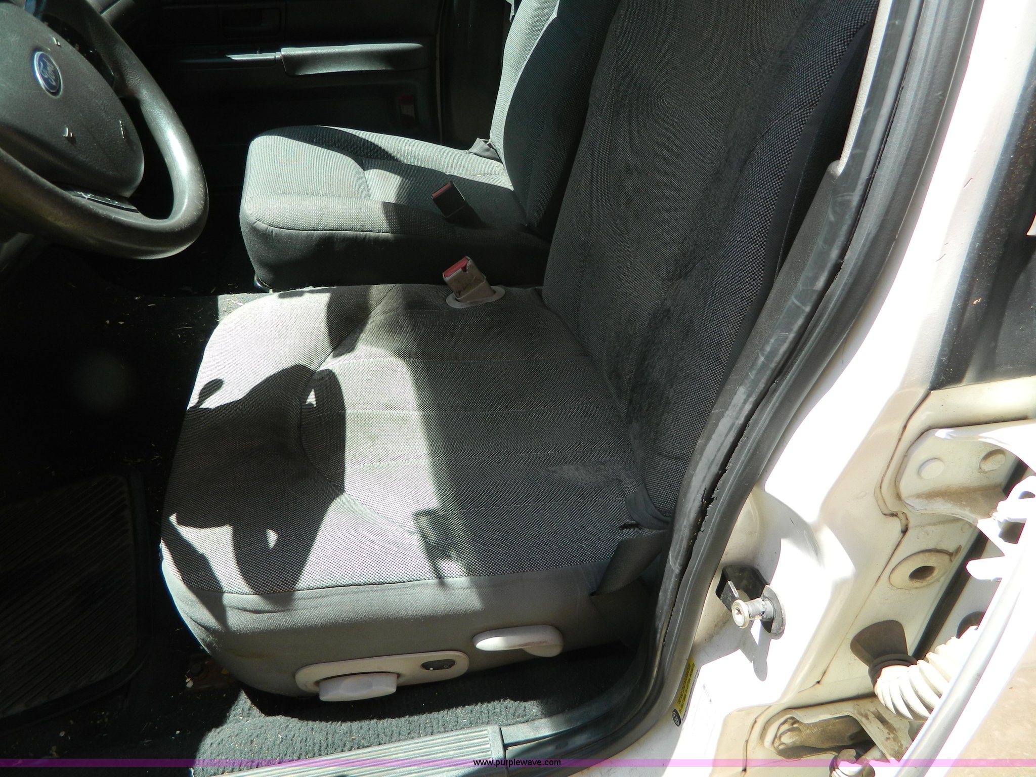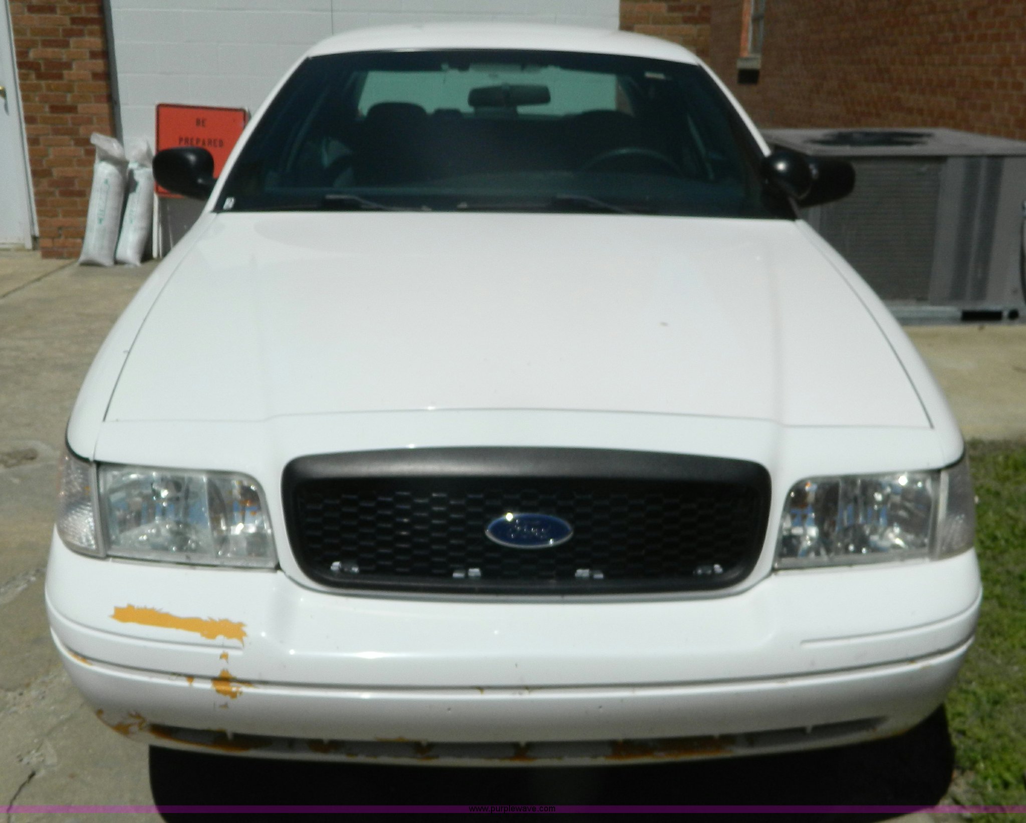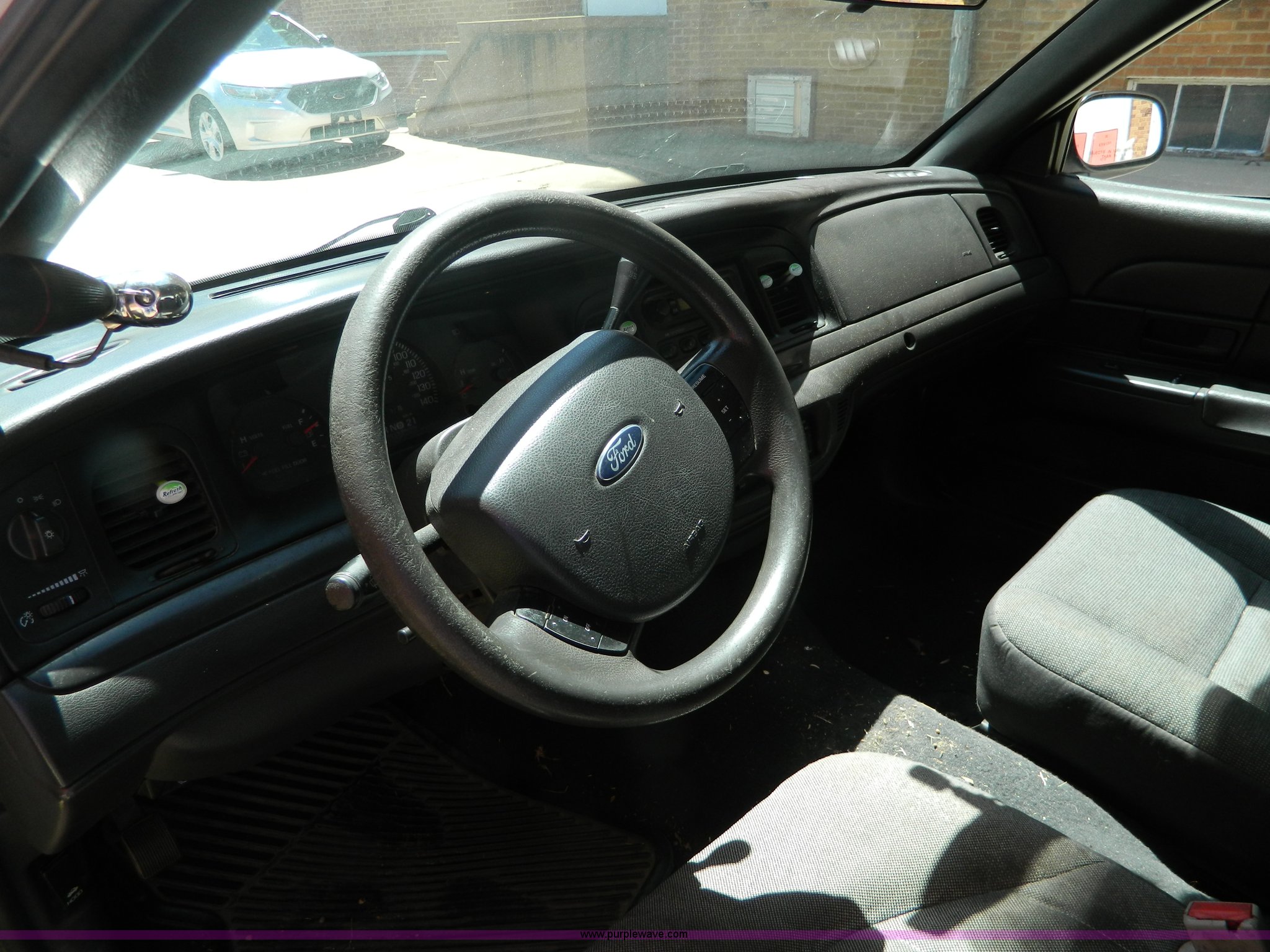 Purple Wave is selling a used Passenger Vehicle in Kansas. This item is a 2005 Ford Crown Victoria Police Interceptor with the following: 116,465 miles on odometer, 4.6L V8 SOHC 16V gas engine, Automatic transmission, AC and heat, Tilt, Cruise, AM/FM, Power windows, locks, mirrors, and seats, Cloth interior, 235/60R16 tires, ABS light is on, Paint peeling, Holes in roof, Interior/exterior cosmetic damage