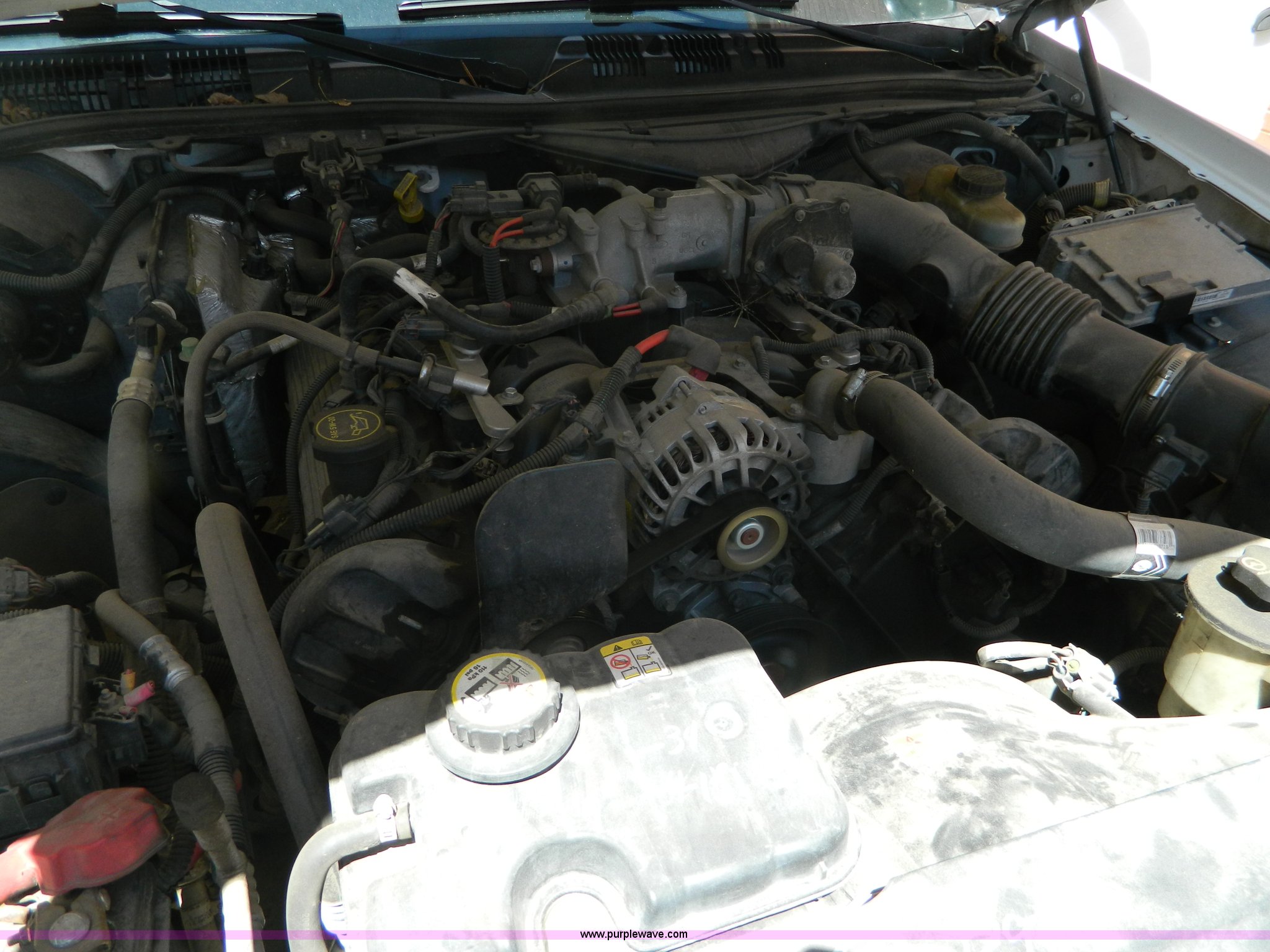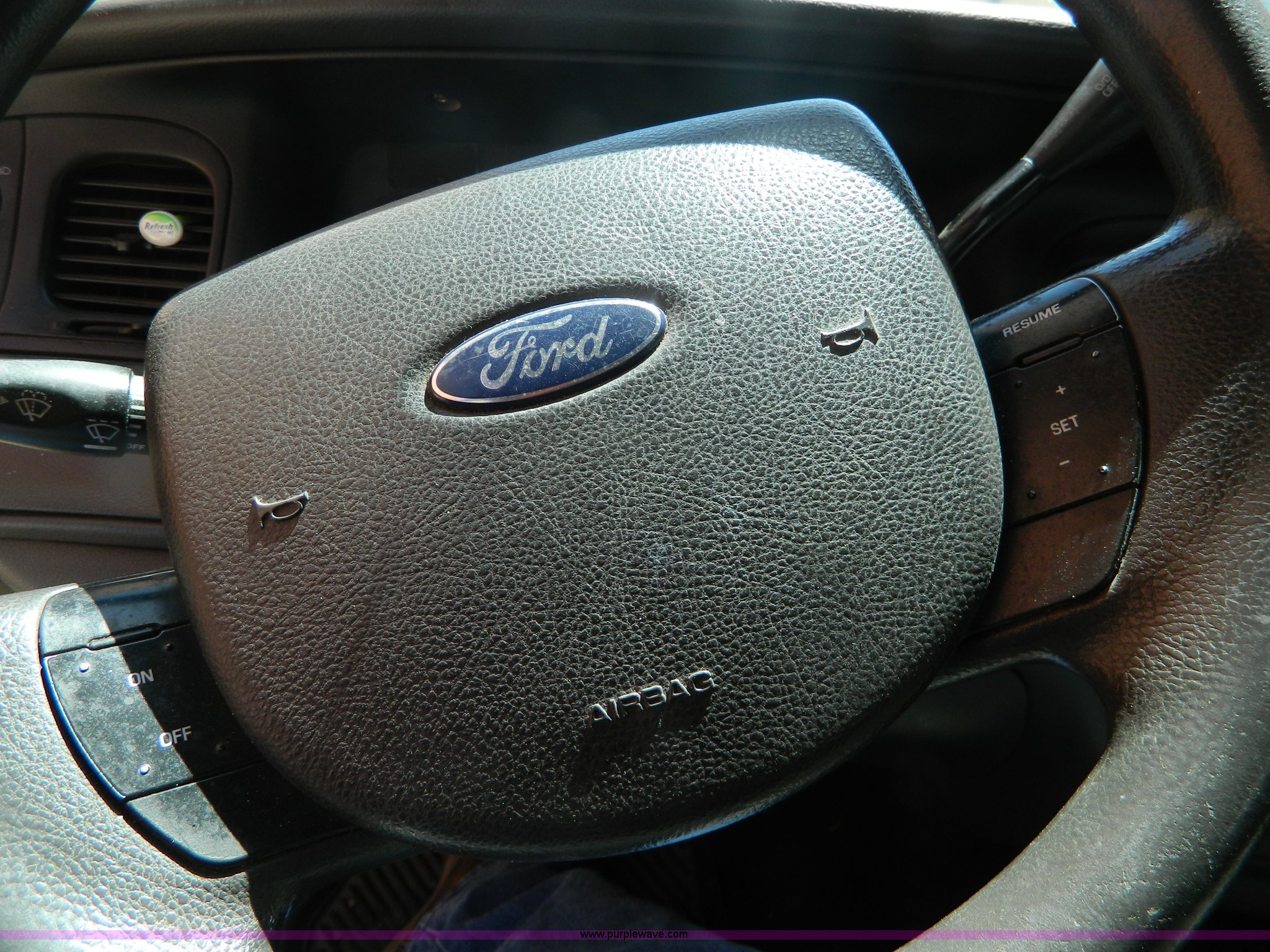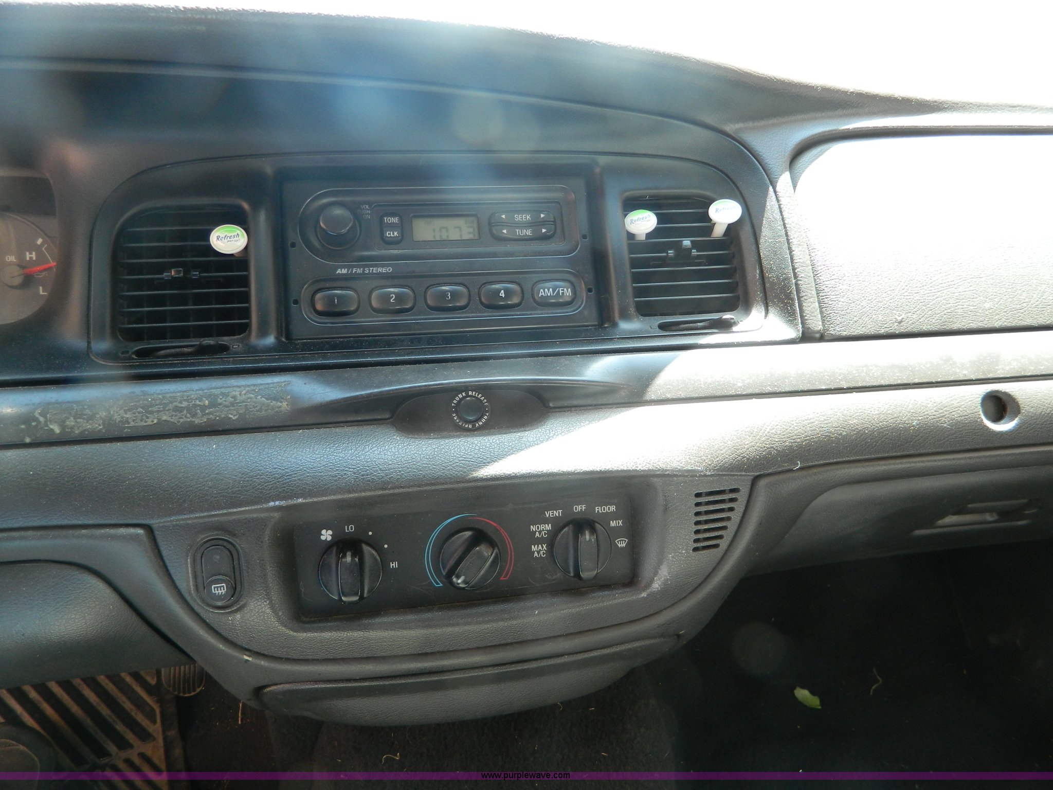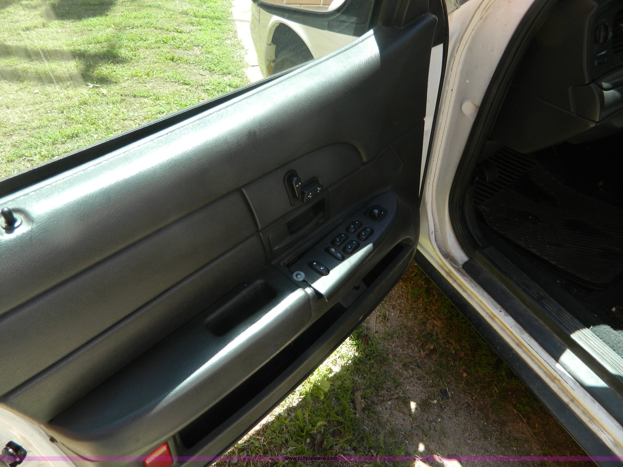 Purple Wave is selling a used Passenger Vehicle in Kansas. This item is a 2005 Ford Crown Victoria Police Interceptor with the following: 116,465 miles on odometer, 4.6L V8 SOHC 16V gas engine, Automatic transmission, AC and heat, Tilt, Cruise, AM/FM, Power windows, locks, mirrors, and seats, Cloth interior, 235/60R16 tires, ABS light is on, Paint peeling, Holes in roof, Interior/exterior cosmetic damage