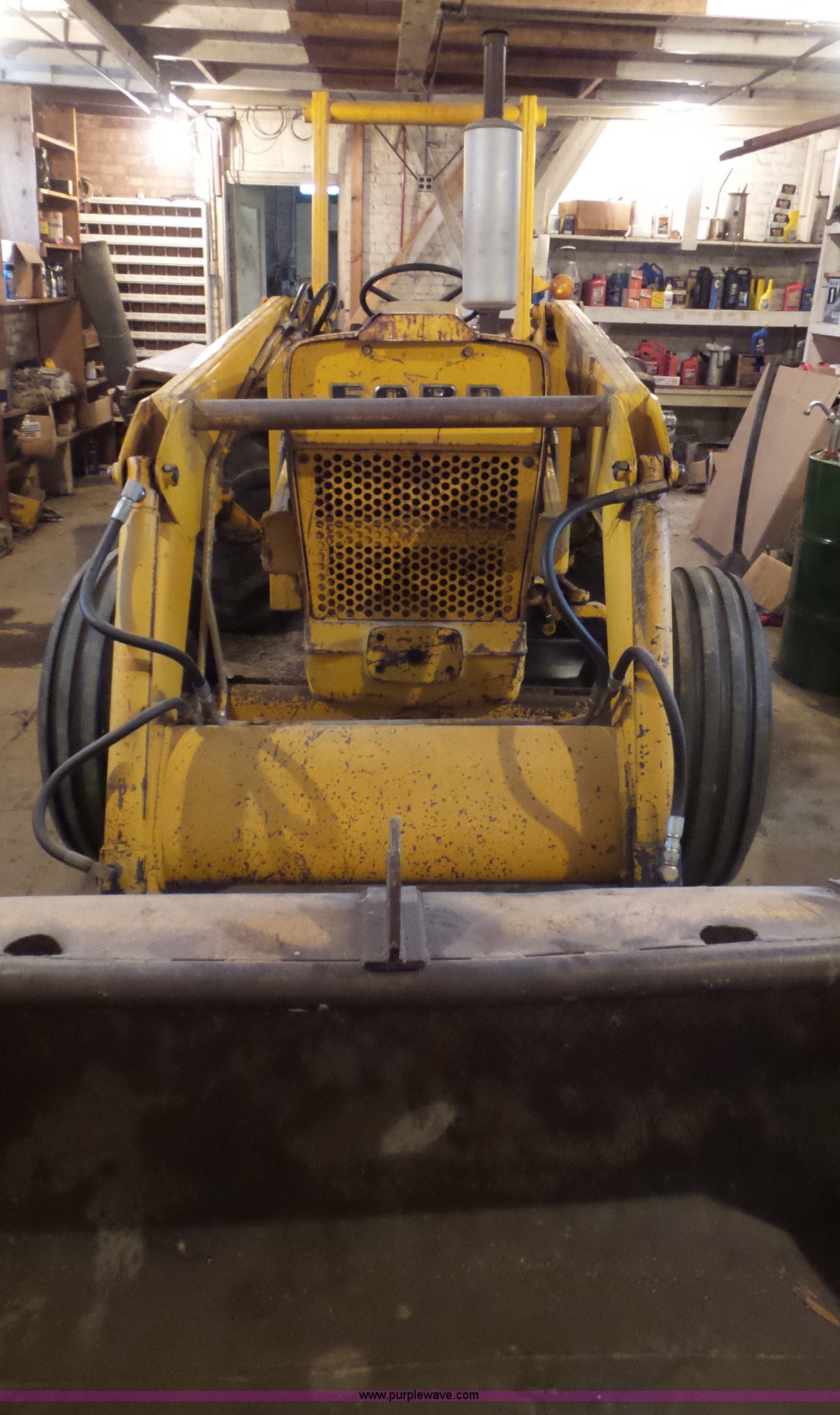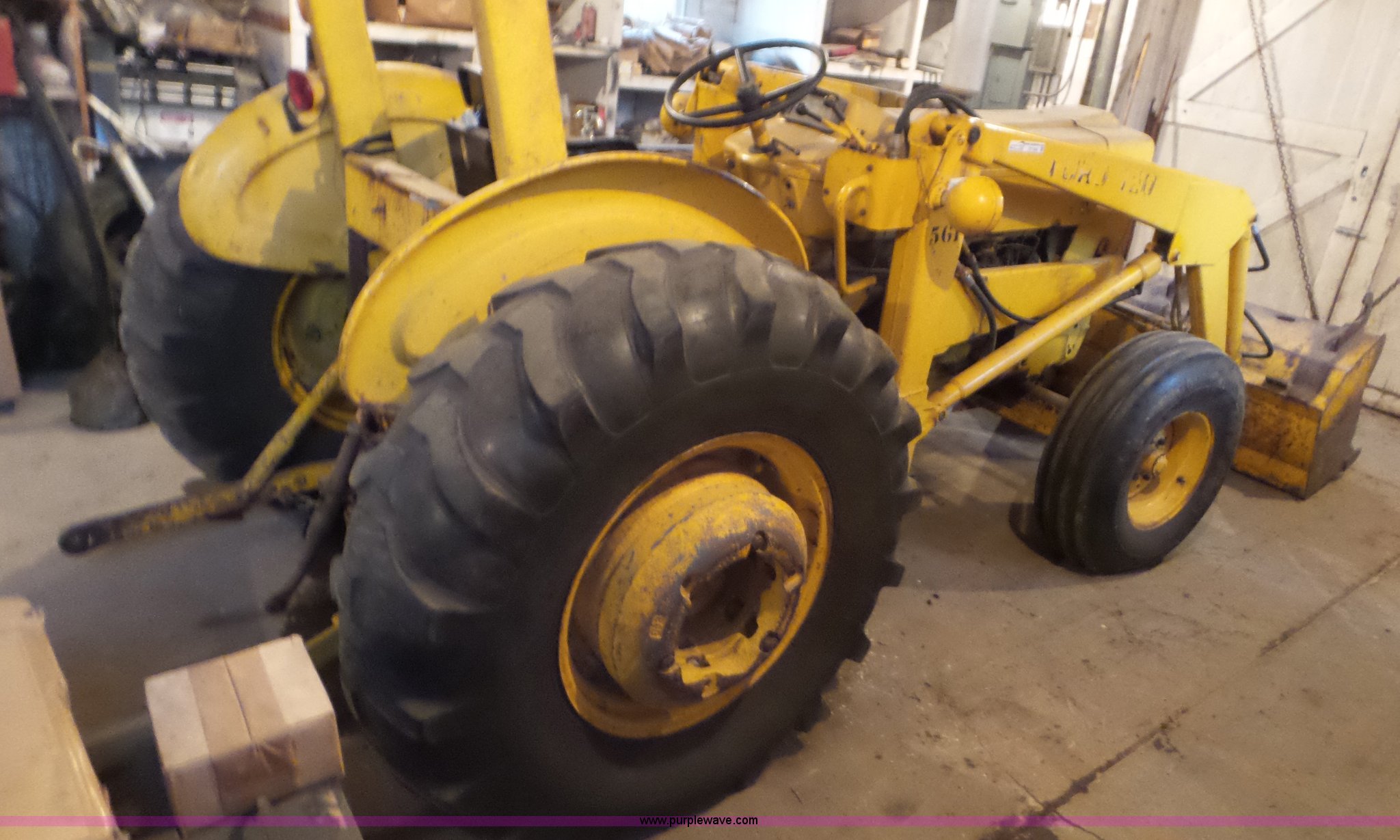Purple Wave is selling a used Tractor in Kansas. This item is a 1976 Ford 420 tractor with the following: 336 hours on meter, Ford three cylinder gas engine, Manual transmission, 8F-2R gears, Suspension seat, Ford loader, 66"W bucket, Two-lever controls, Three point, Top link, Front hydraulic remote set, (3) wheel weights, 10.00-16 front tires, 16.9-24 rear tires, Engine knocks, Hydraulic leak, Unknown operating condition, Last used approx. 3 years ago