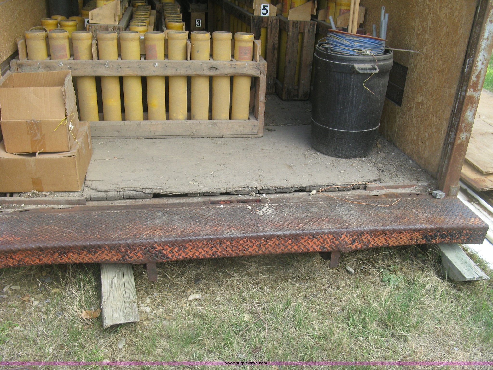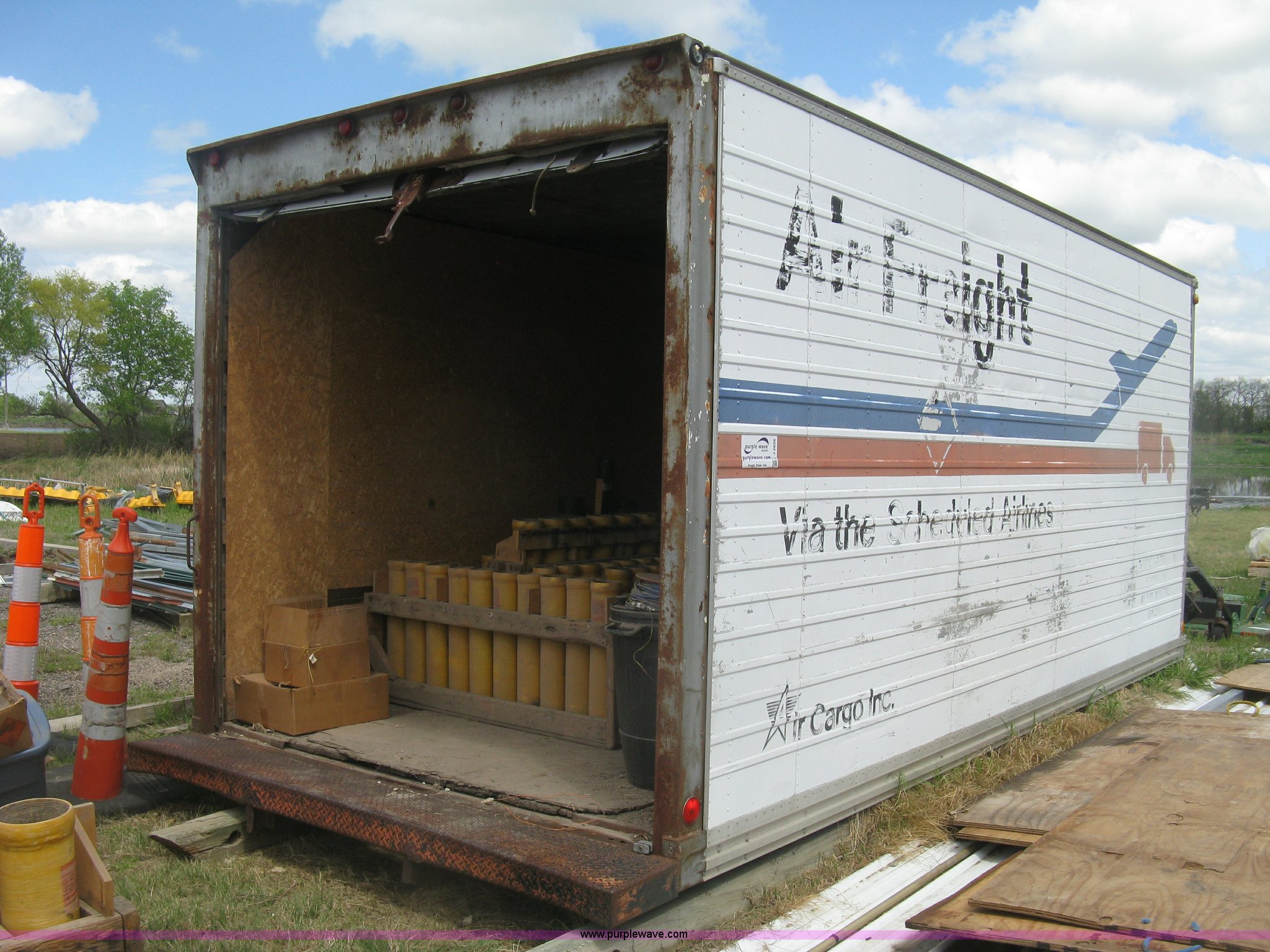 Purple Wave is selling a used Storage or Shipping Container in Kansas. This item is a Firework deployment equipment and storage container with the following: (90) 24"H x 4" diameter fiberglass launch tubes, (60) 32"H x 5" diameter fiberglass launch tubes, (252) 20"H x 3" diameter PVC launch tubes, Deployment control board, Wire leads, Hold down stakes, Rack, Assorted supplies, Operational when last used five years ago, Brown storage box, 18.5'L x 8'W, 7.6'H interior, Wood floor, Some damaged, Roll up door, Front exterior sheeting damage, Rust