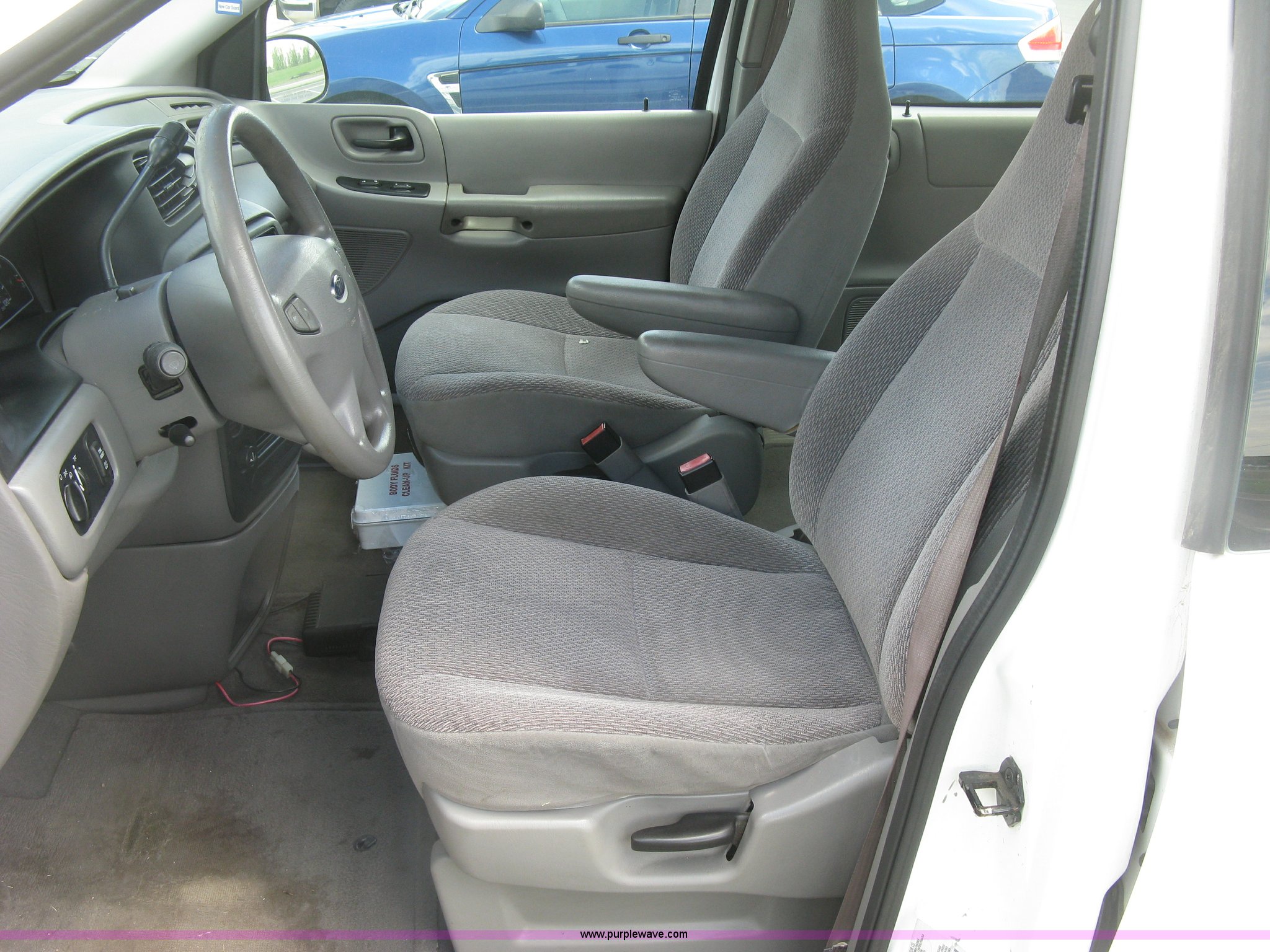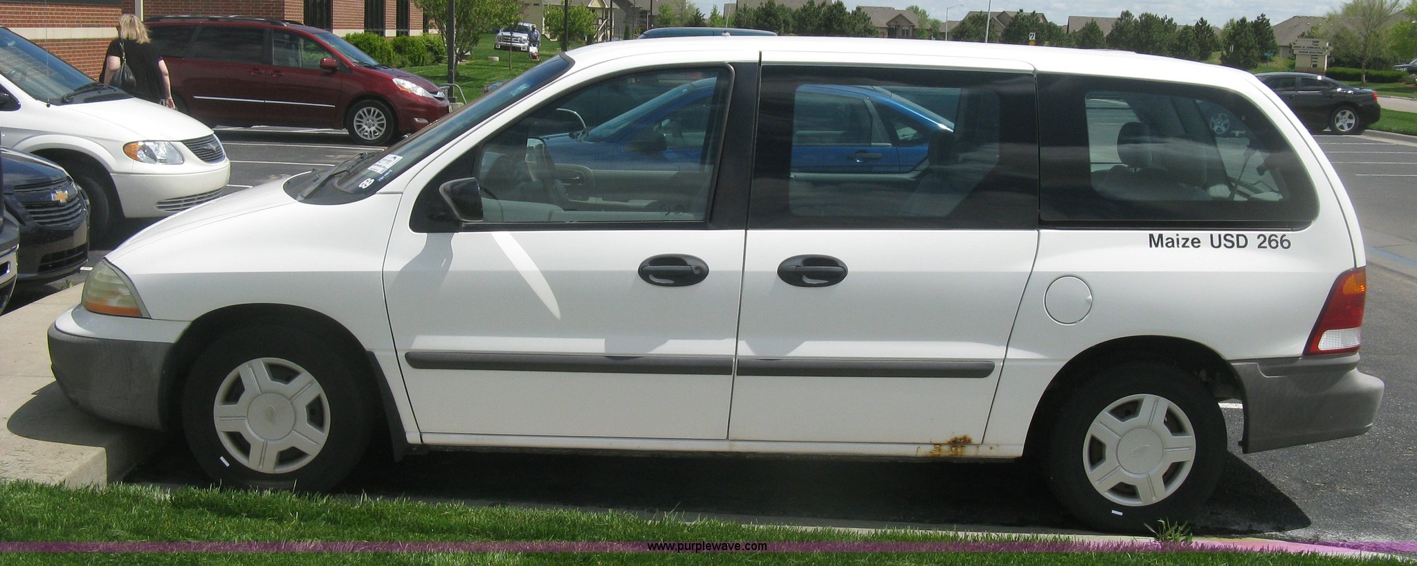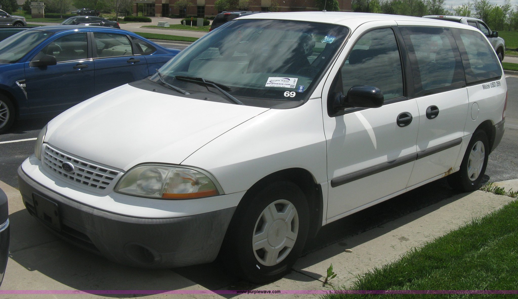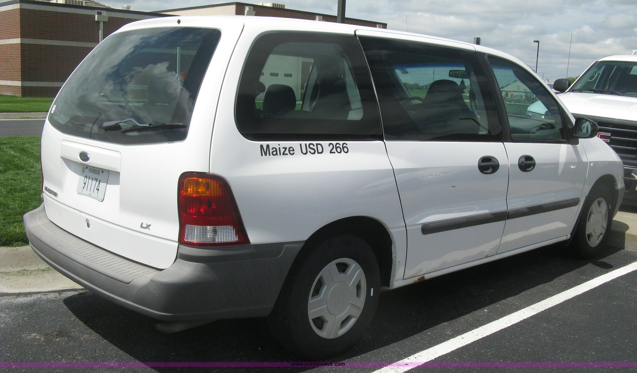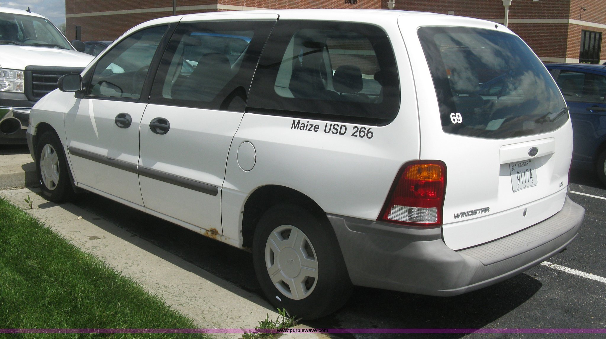 Purple Wave is selling a used Passenger Vehicle in Kansas. This item is a 2001 Ford Windstar LX van with the following: 141,159 miles on odometer, 3.8L V6 OHV 12V gas engine, Automatic transmission, AC and heat, Tilt, Cruise, AM/FM/cassette, Power windows, locks, and mirrors, Cloth interior, P215/70R15 tires, Weak battery, Rust, Scratches, Dents, Two-way radio not included, will be removed to prior to auction, Unit# 69