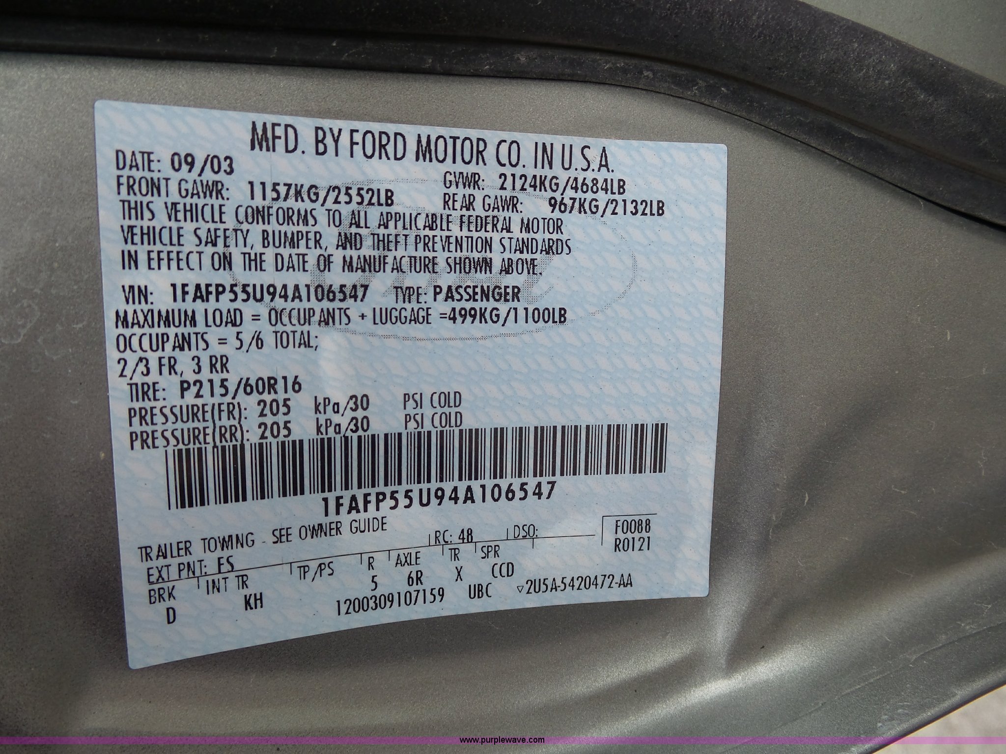 Purple Wave is selling a used Passenger Vehicle in Kansas. This item is a 2004 Ford Taurus SES with the following: 164,275 miles on odometer, Miles may vary, still in use, 3.0L V6 OHV 12V gas engine, Automatic transmission, AC and heat, Tilt, Cruise, AM/FM/CD, Power windows, locks, mirrors, and seat, Cloth interior, 215/60R16 tires, Decals will be removed or painted over