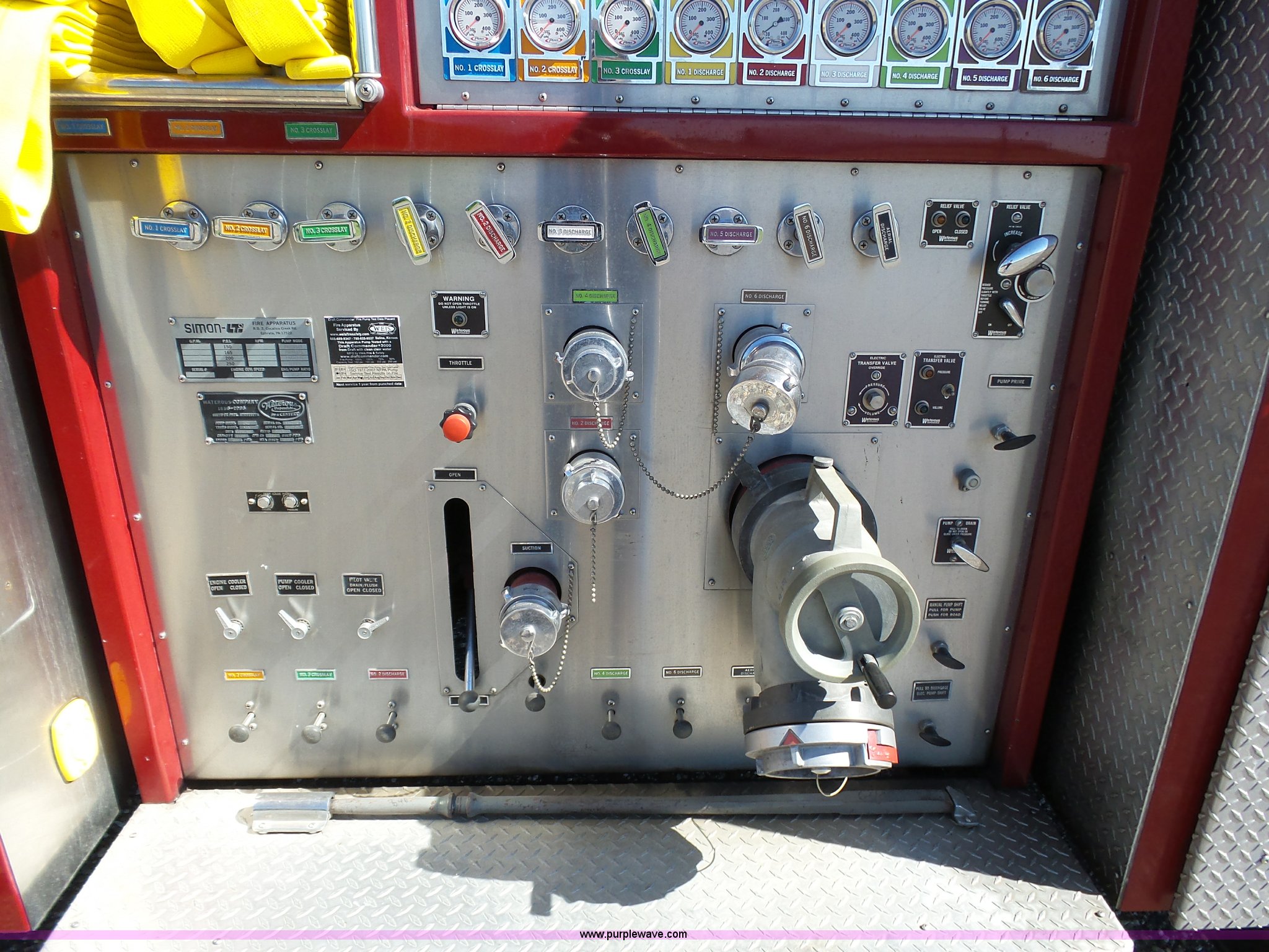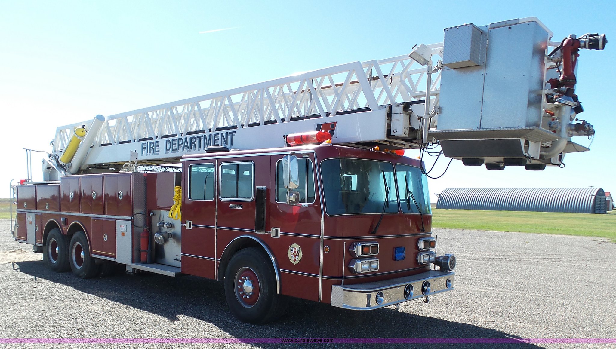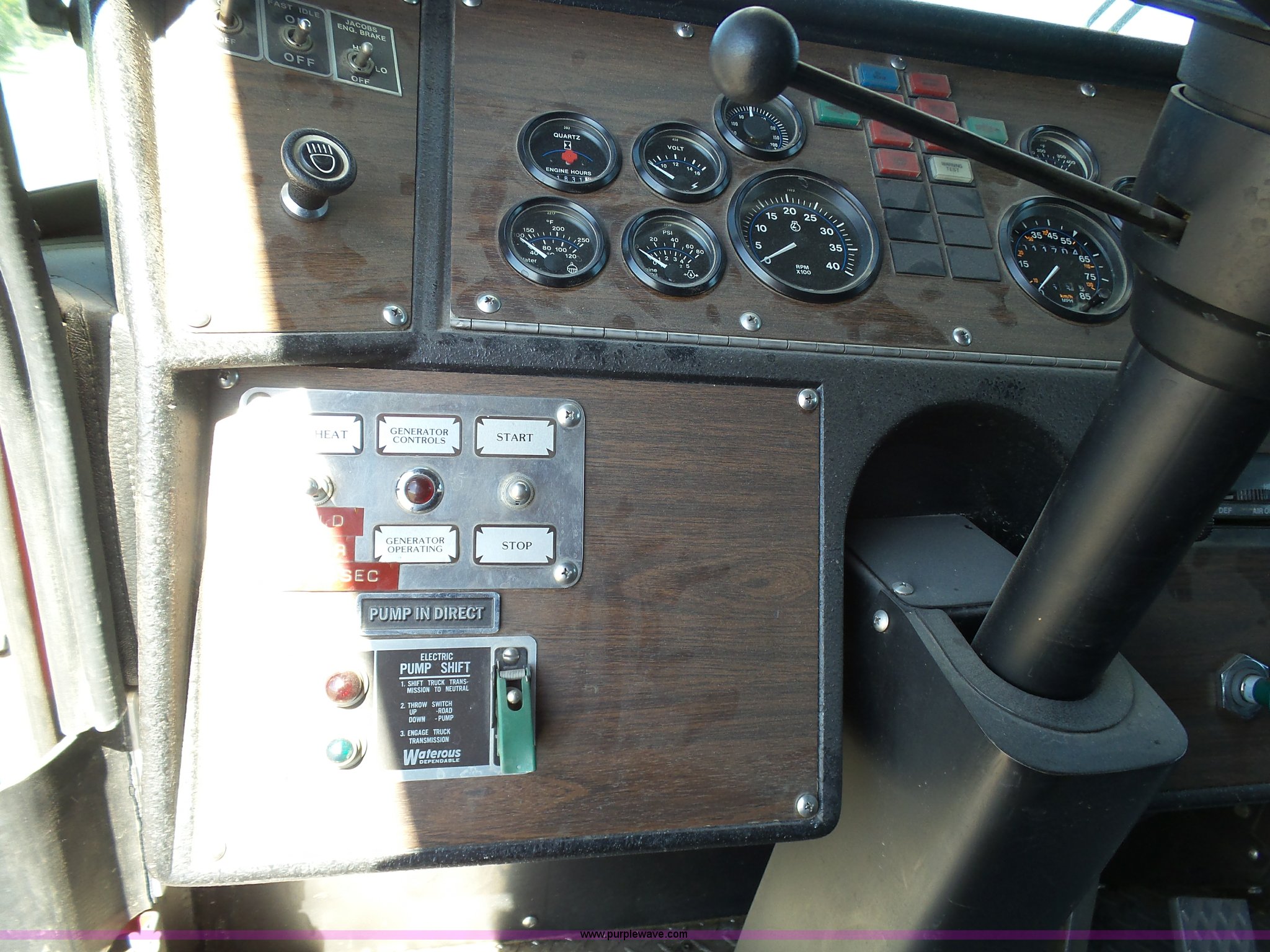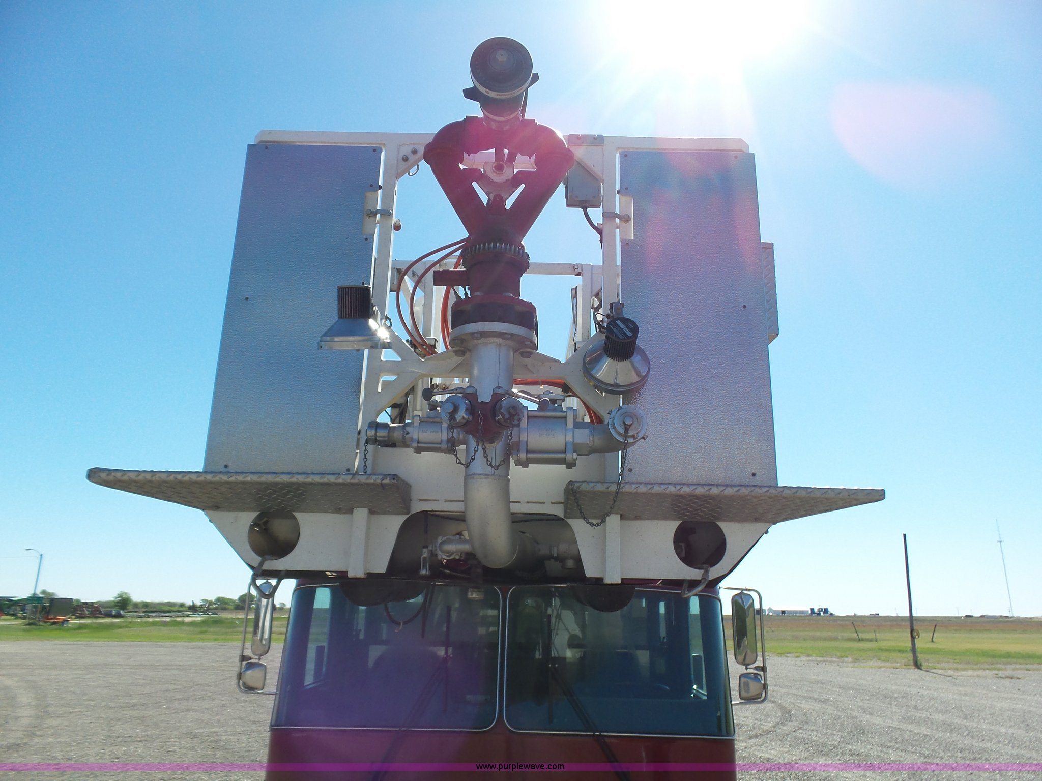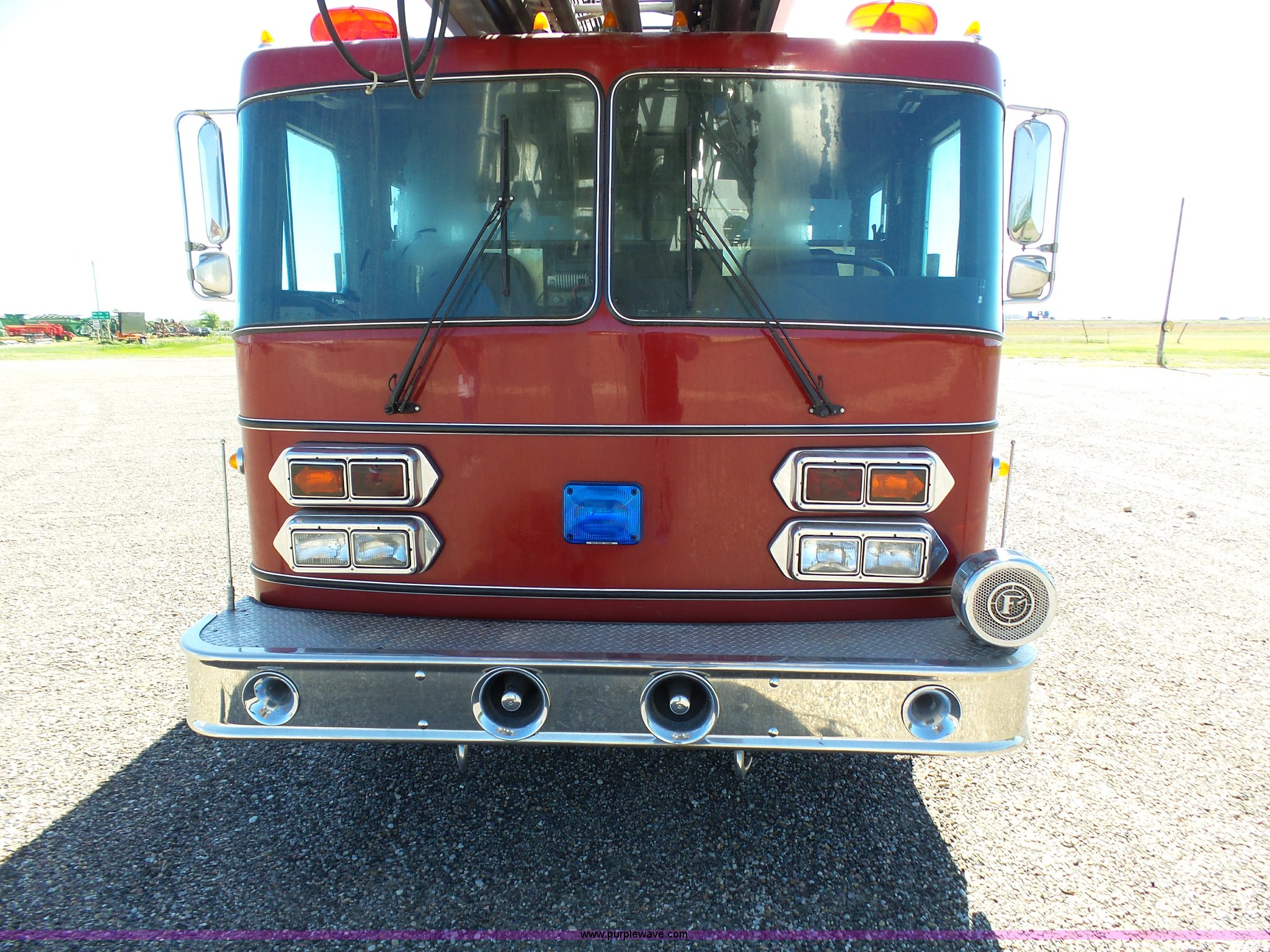 Purple Wave is selling a used Fire Truck or Emergency Vehicle in Kansas. This item is a 1982 Hendrickson 1871-WS fire truck with the following: 11,704 miles on odometer, 1,832 hours on meter, Detroit Diesel Silver 92 8V-92-TA turbo diesel engine, Serial 8VF076069, Automatic transmission, Model HT-740-D, Tandem axle, Heat, Air suspension seat, Air horn, Waterous MT-35-100 platform, 981 hours on meter, Serial 818218, 1,500 gpm pump, (4) outriggers, Simon LTi 818218 fire apparatus, Elevated control station, Akromatic 100 front turret gun, Style 5050, Electric cord reel, Outlet box, Work lights, Four section ladder, 100'L, Fresh air bottles, Air brakes, 40'3"L x 8'W x 11'8"H overall, 21'2" wheelbase, 425/65R22.5 front tires, 11.00R20 rear tires, GVWR 63,750 lbs, Hoses and radios will be removed prior to auction, Engine and transmission oil leak, Ladder extension cylinders leak