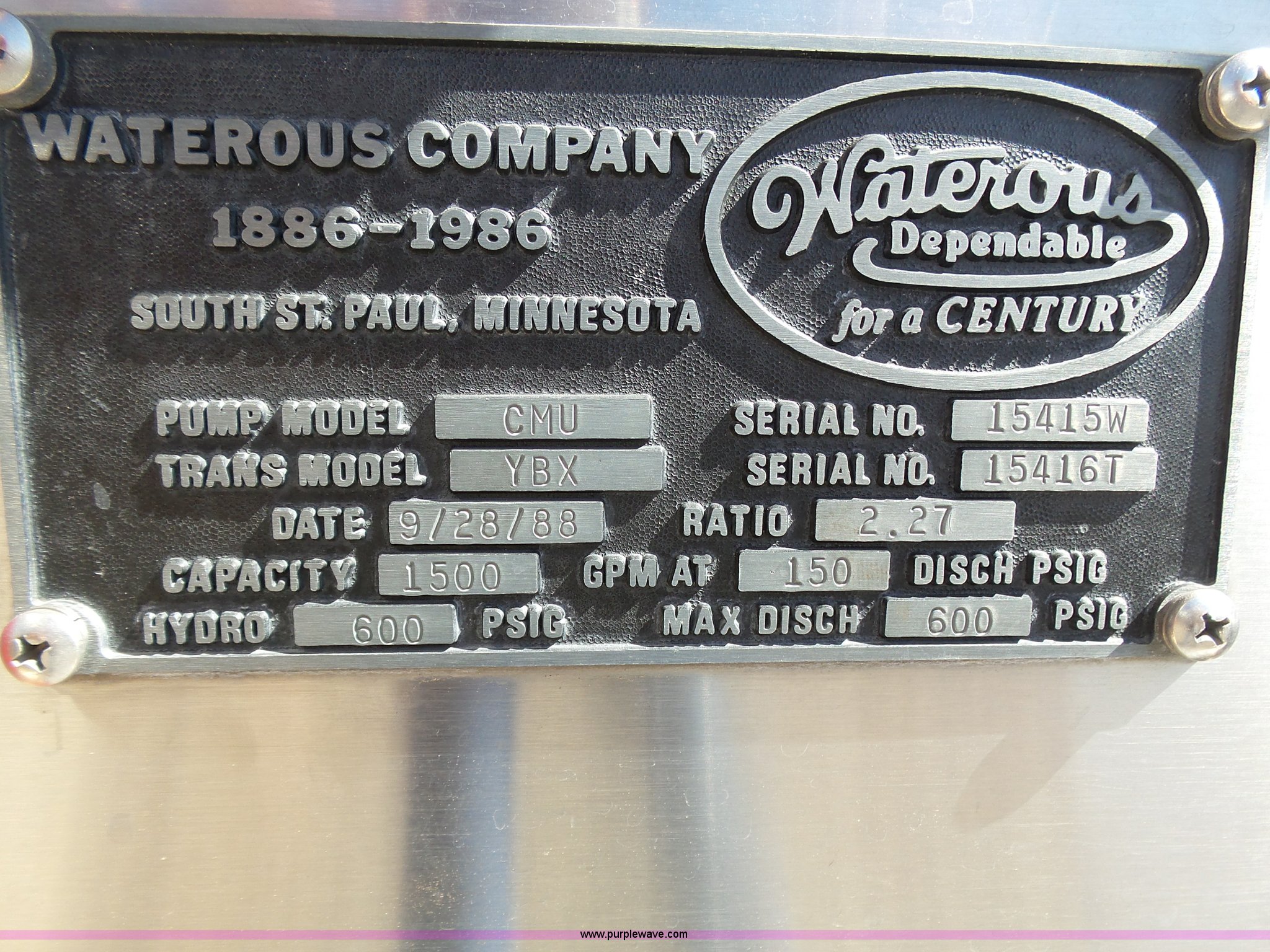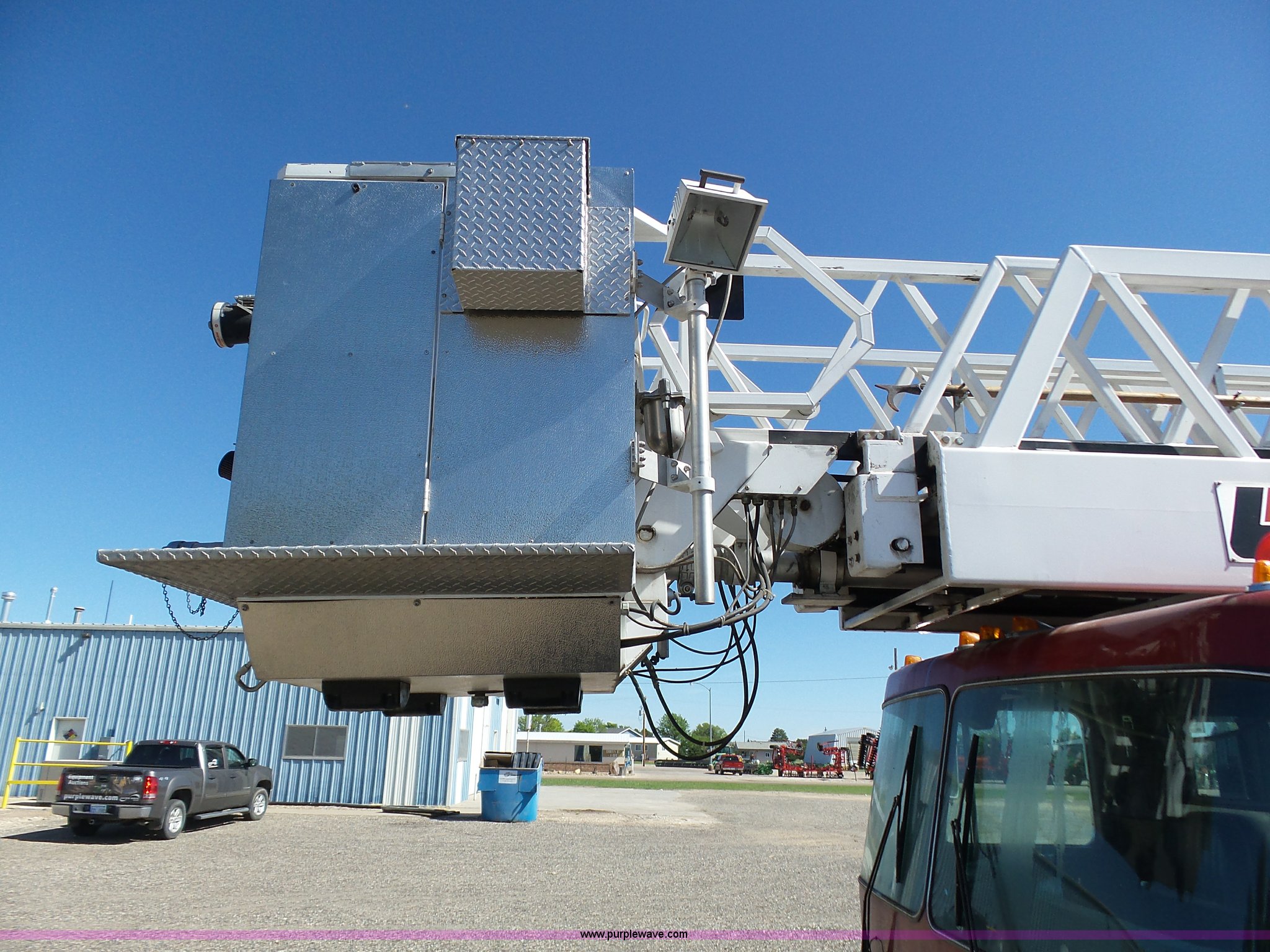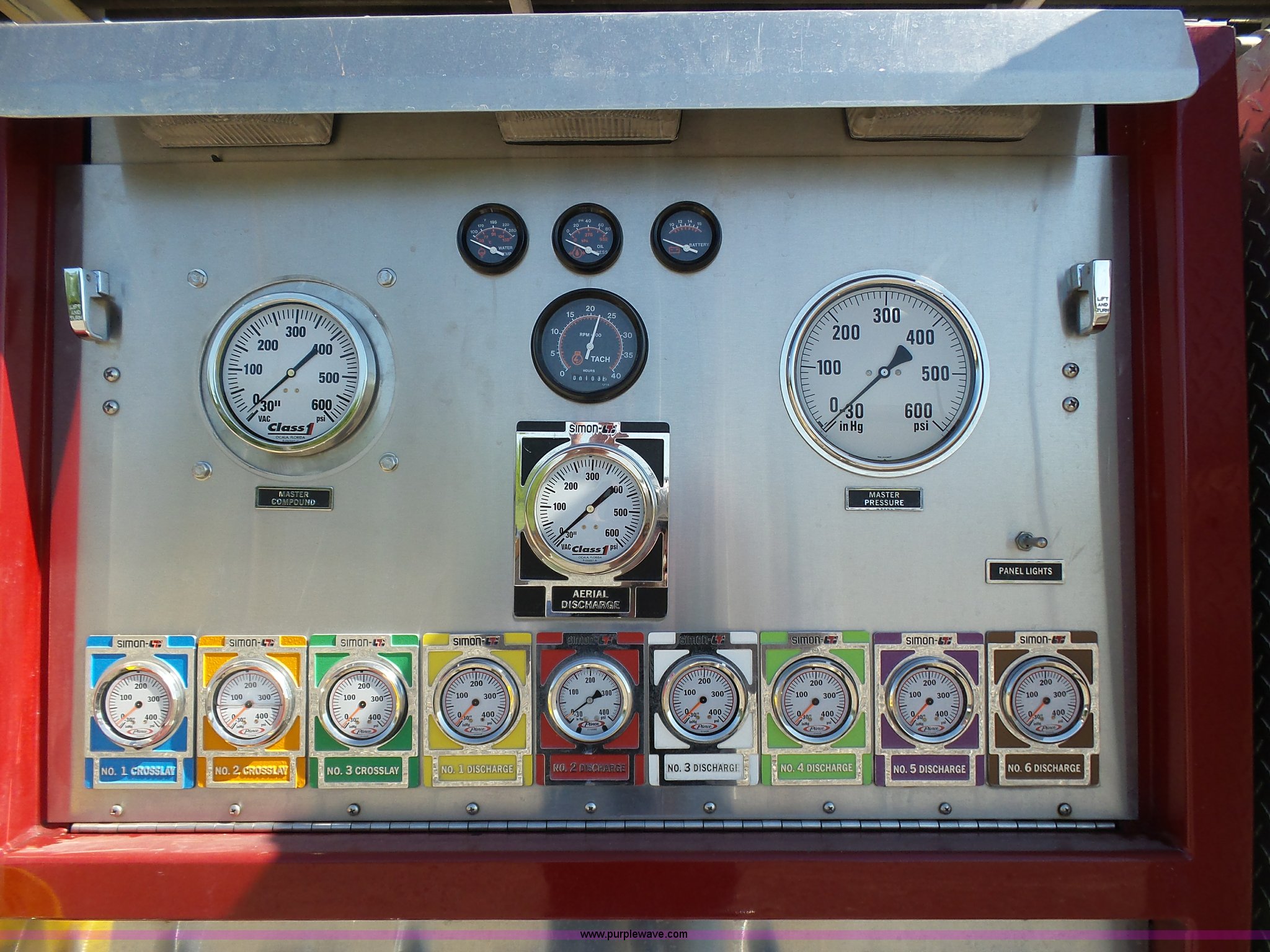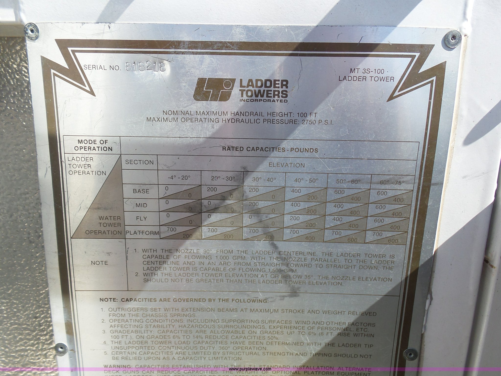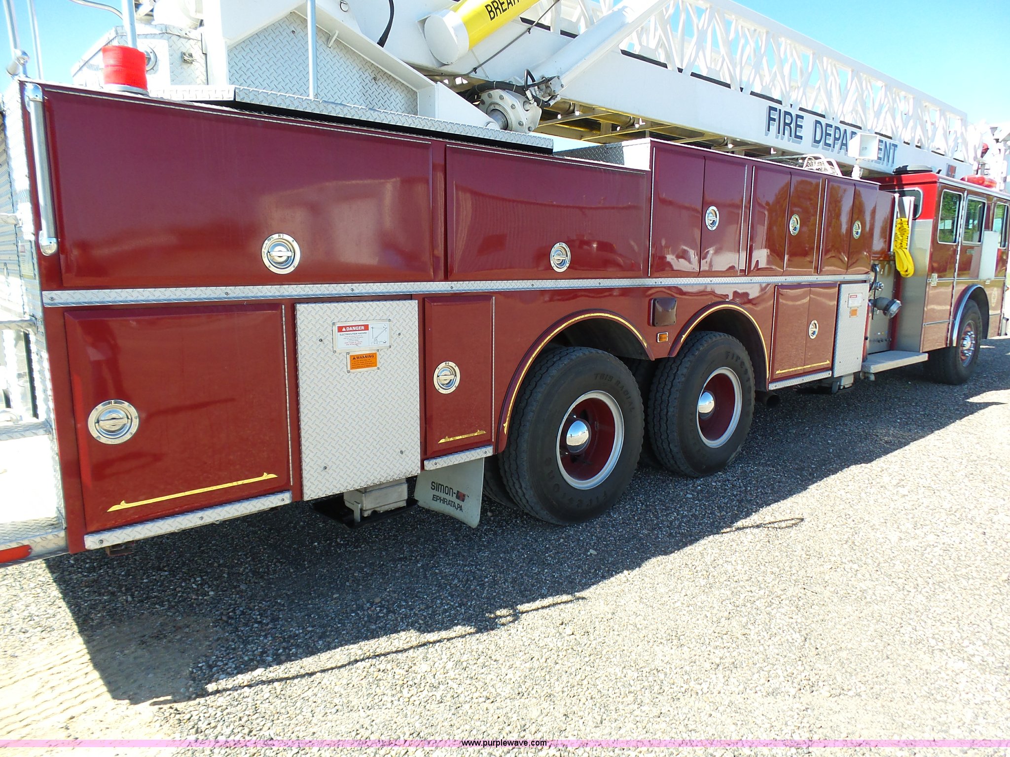 Purple Wave is selling a used Fire Truck or Emergency Vehicle in Kansas. This item is a 1982 Hendrickson 1871-WS fire truck with the following: 11,704 miles on odometer, 1,832 hours on meter, Detroit Diesel Silver 92 8V-92-TA turbo diesel engine, Serial 8VF076069, Automatic transmission, Model HT-740-D, Tandem axle, Heat, Air suspension seat, Air horn, Waterous MT-35-100 platform, 981 hours on meter, Serial 818218, 1,500 gpm pump, (4) outriggers, Simon LTi 818218 fire apparatus, Elevated control station, Akromatic 100 front turret gun, Style 5050, Electric cord reel, Outlet box, Work lights, Four section ladder, 100'L, Fresh air bottles, Air brakes, 40'3"L x 8'W x 11'8"H overall, 21'2" wheelbase, 425/65R22.5 front tires, 11.00R20 rear tires, GVWR 63,750 lbs, Hoses and radios will be removed prior to auction, Engine and transmission oil leak, Ladder extension cylinders leak