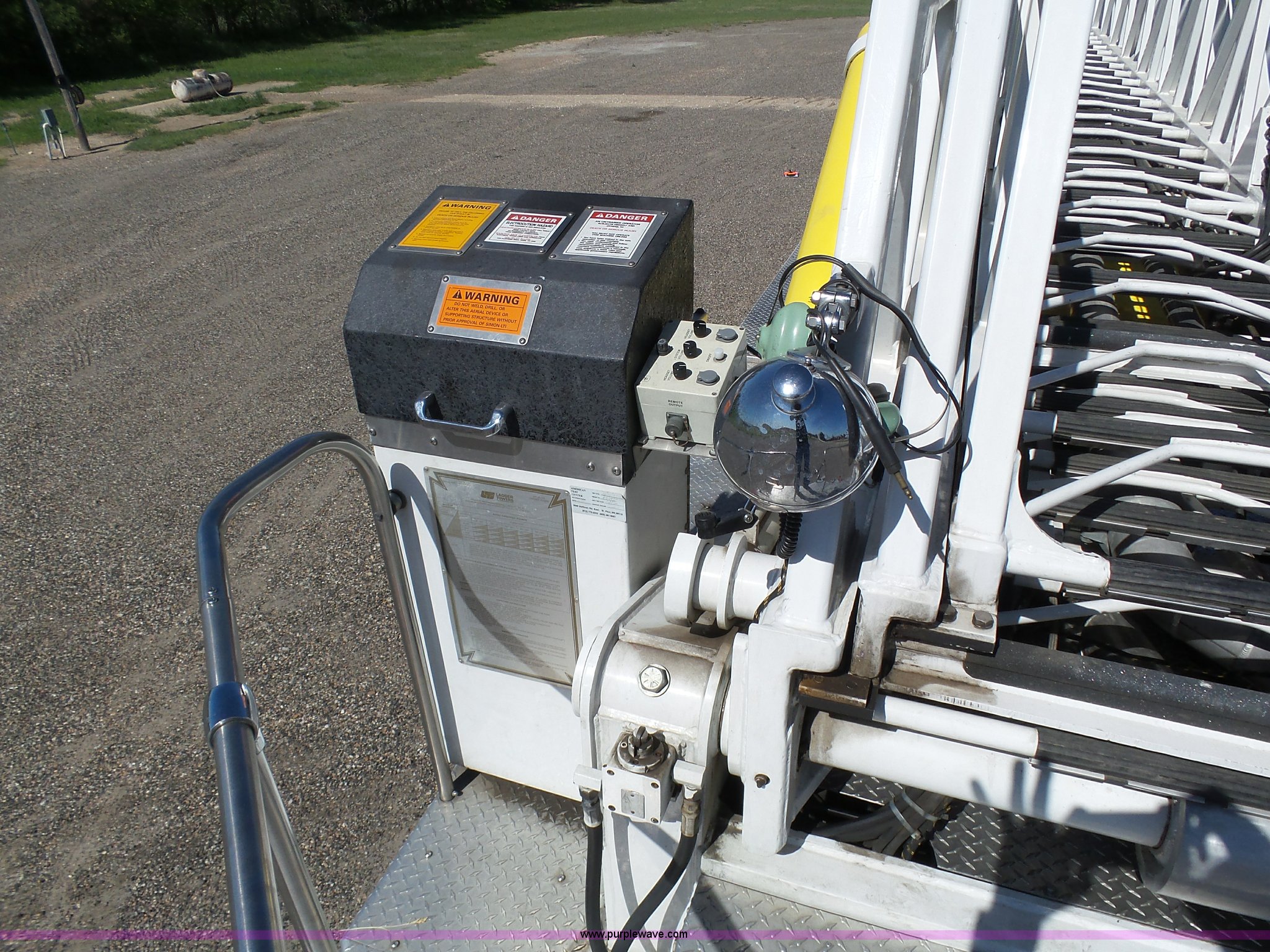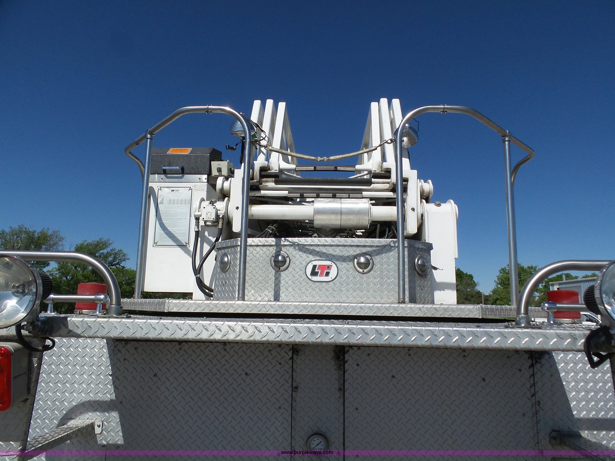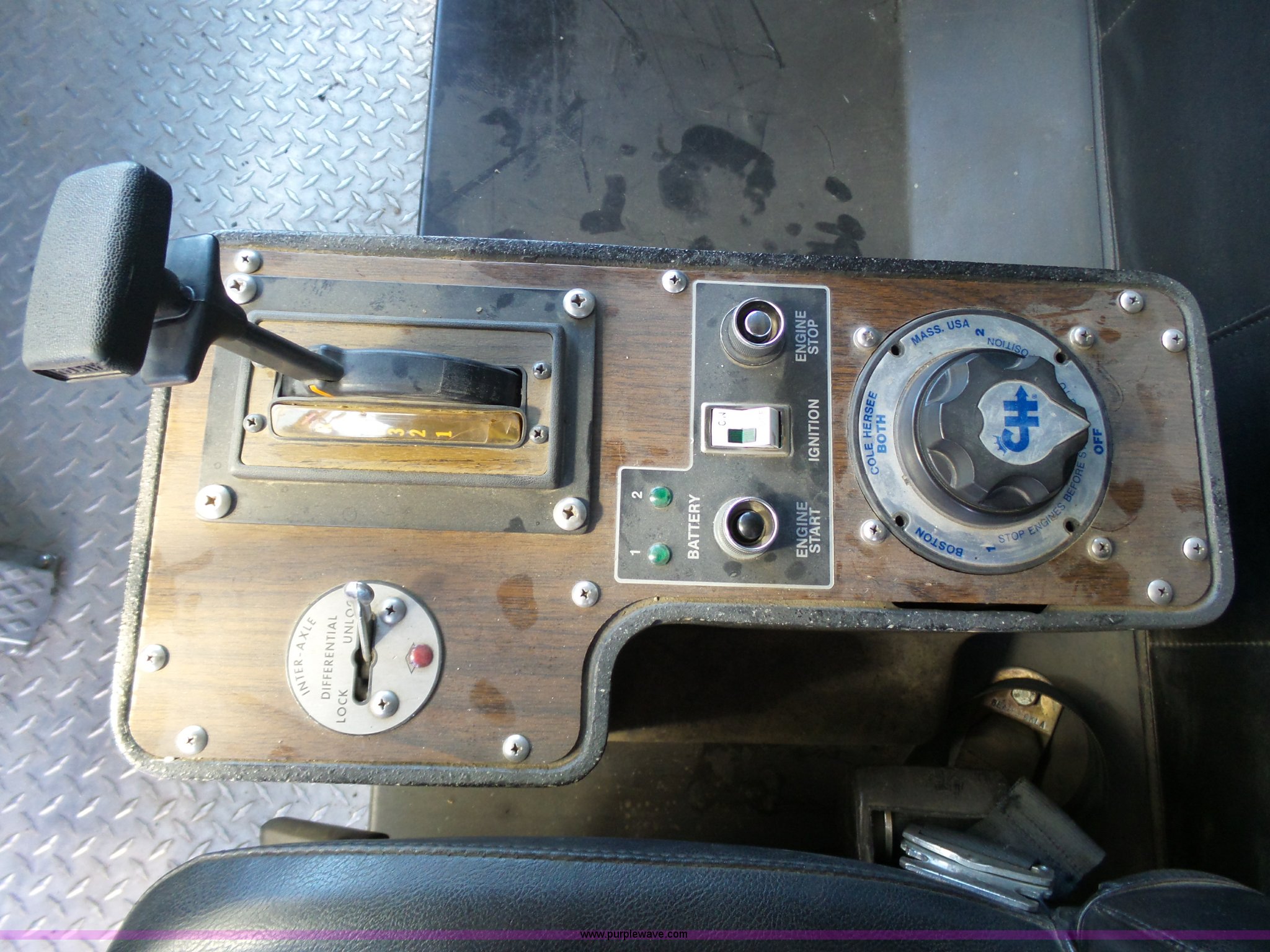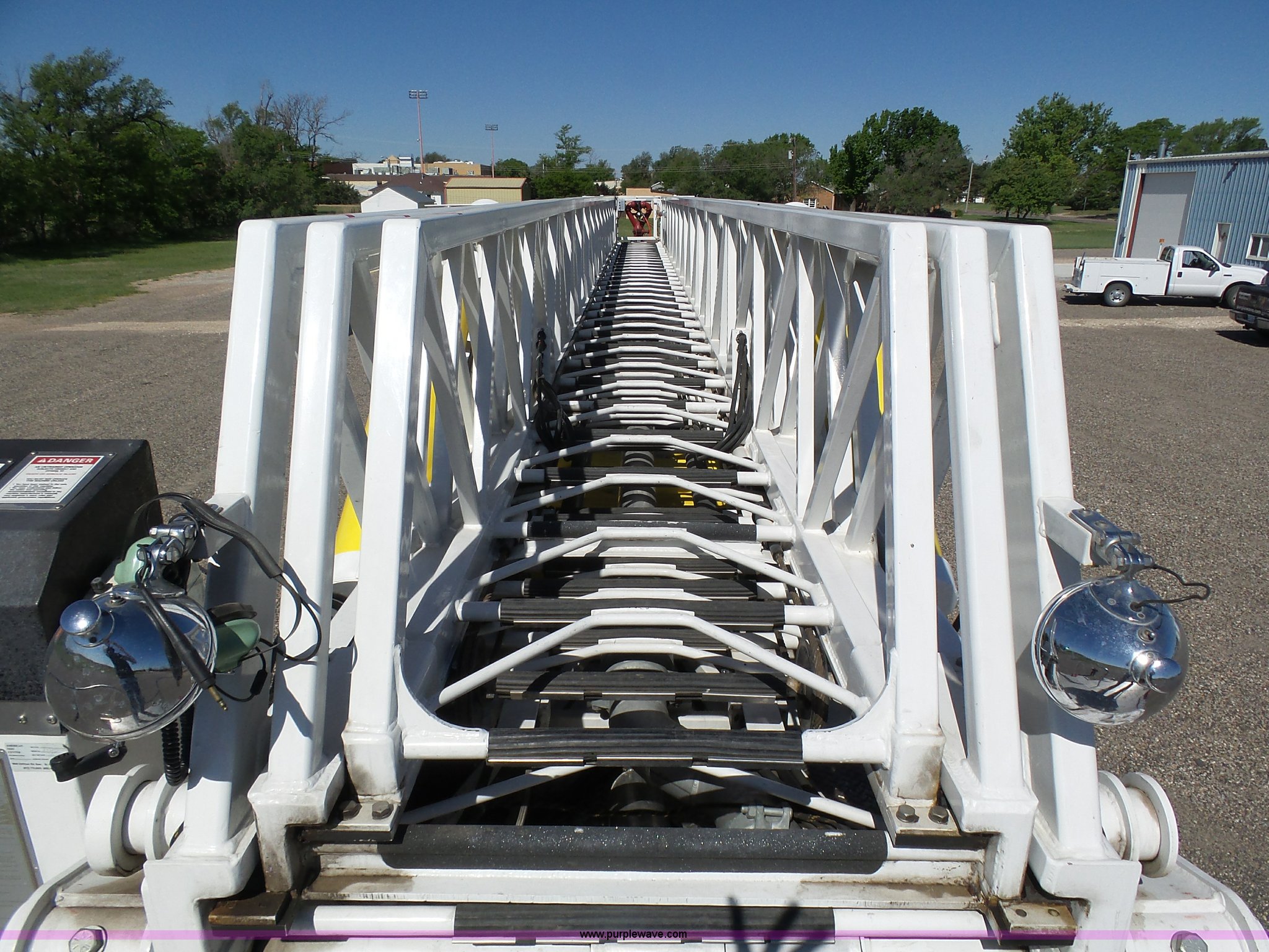 1982 Hendrickson 1871-WS fire truck. 11,704 miles on odometer, 1,832 hours on meter, Detroit Diesel Silver 92 8V-92-TA turbo diesel engine Serial 8VF076069, Automatic transmission Model HT-740-D, Tandem axle, Heat, Air suspension seat, Air horn, Waterous MT-35-100 platform 981 hours on meter, Serial 818218, 1,500 gpm pump, (4) outriggers, Simon LTi 818218 fire apparatus, Elevated control station, Akromatic 100 front turret gun Style 5050, Electric cord reel Outlet box, Work lights, Four section ladder 100'L, Fresh air bottles, Air brakes, 40'3"L x 8'W x 11'8"H overall, 21'2" wheelbase, 425/65R22.5 front tires, 11.00R20 rear tires, GVWR 63,750 lbs, Hoses and radios will be removed prior to auction, Engine and transmission oil leak, Ladder extension cylinders leak. Kansas title. 11HFT6487CLZ15914. City of Dighton. 750 E Long. Dighton, KS 67839