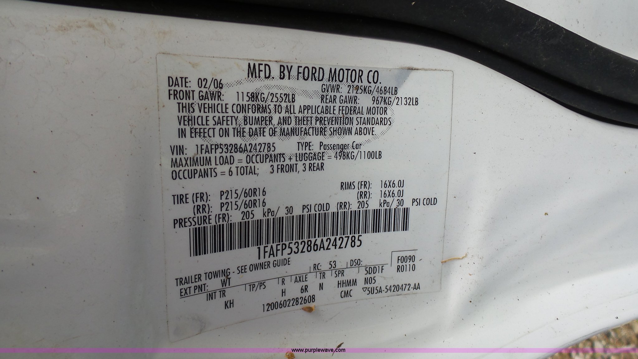 Purple Wave is selling a used Passenger Vehicle in Kansas. This item is a 2006 Ford Taurus with the following: 111,361 miles on odometer, 3.0L V6 OHV 12V FFV gas engine, Automatic transmission, AC and heat, Tilt, Cruise, AM/FM/cassette, Power windows, locks, and mirrors, Cloth interior, 215/60R16 tires, Rear damage