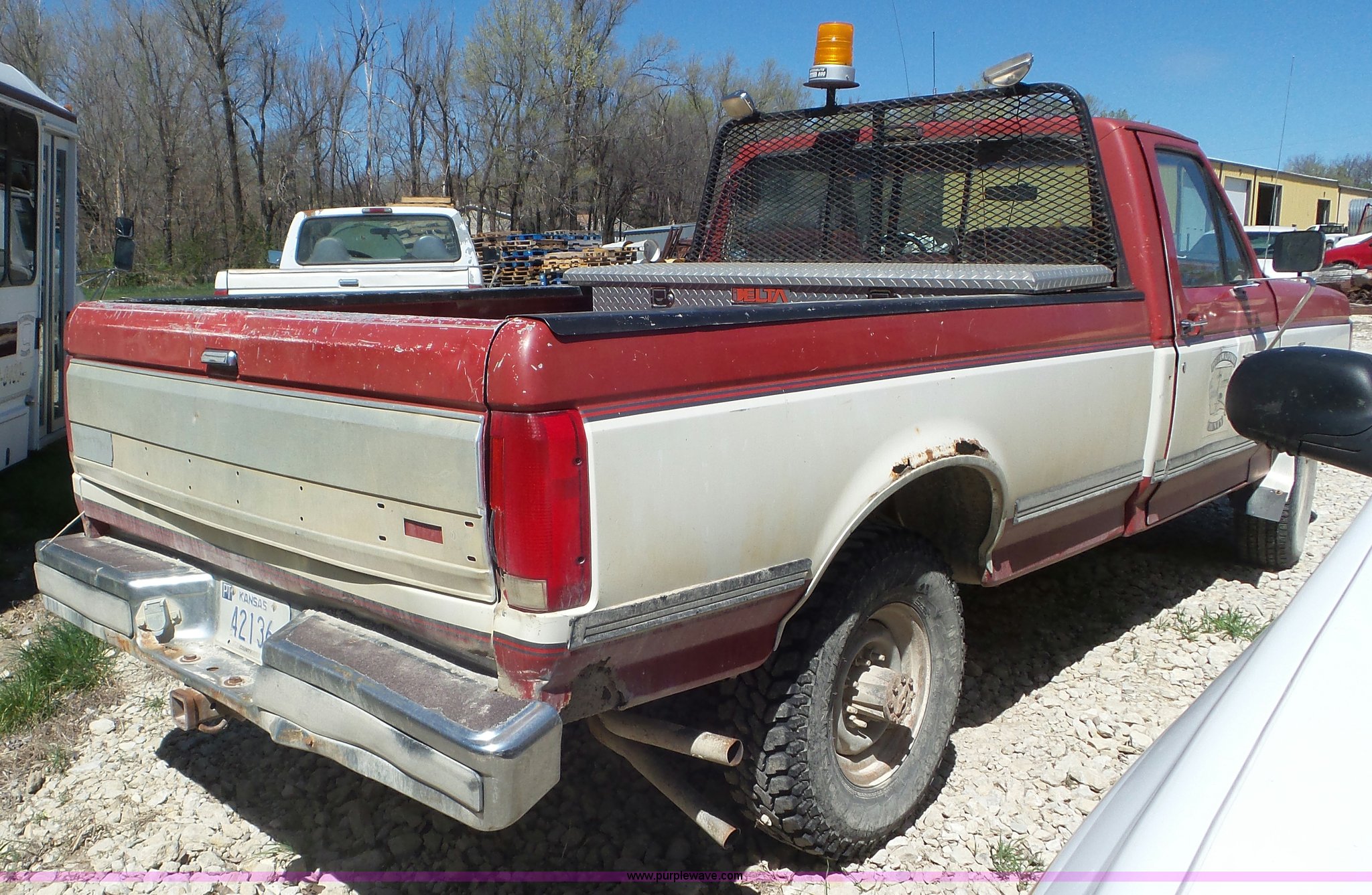 Purple Wave is selling a used 3/4 or 1 Ton Pickup or Van in Kansas. This item is a 1991 Ford F250 pickup truck with the following: 100,549 miles on odometer, 7.5L V8 VIH 16V gas engine, Automatic transmission, AC and heat, Tilt, Cruise, AM/FM/cassette, Power locks, Cloth interior, Toolbox, Receiver hitch, 235/85R16 tires, Interior/exterior cosmetic damage