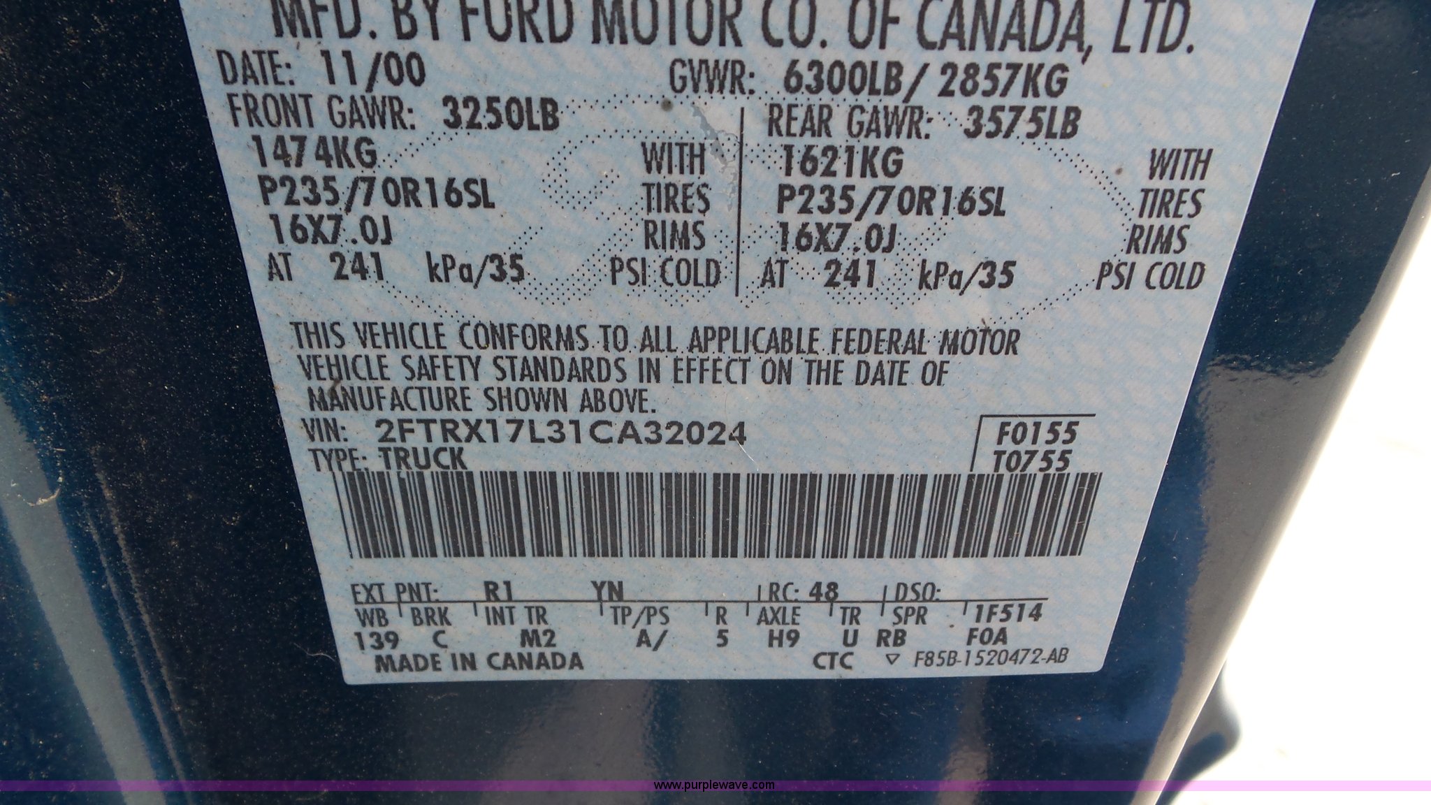 2001 Ford F150 SuperCab pickup truck. 116,402 miles on odometer, 5.4L V8 SOHC 16V gas engine, Automatic transmission, AC and heat, Tilt, Cruise, AM/FM/CD, Power windows, locks, mirrors, and seat, Cloth interior, Running boards, Bed liner, Topper Topper rear glass broken, Receiver hitch, 235/70R16 tires, Interior/exterior cosmetic damage, Odometer light inoperable, Unit# 187. Kansas title.. Seller is a government entity who will be assigning and distributing the title. Please contact the seller for distribution questions. 2FTRX17L31CA32024. City of Lawrence CMG. 1141 Haskell Ave. Lawrence, KS 66044