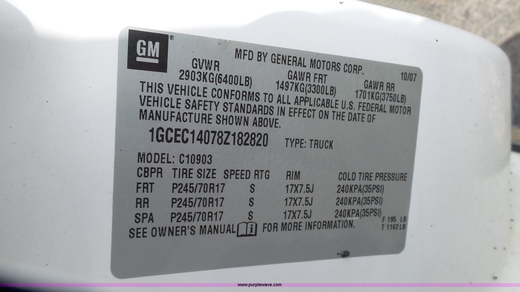 Purple Wave is selling a used 1/2 Ton Pickup or Van in Missouri. This item is a 2008 Chevrolet Silverado 1500 pickup truck with the following: 177,863 miles on odometer, 5.3L V8 OHV 16V FFV gas engine, Automatic transmission, AC and heat, Tilt, Cruise, AM/FM/CD, Manual windows and locks, Vinyl interior, Long bed, Bed liner, Receiver hitch, 245/70R17 tires, Interior/exterior cosmetic damage, Heat blows cold air