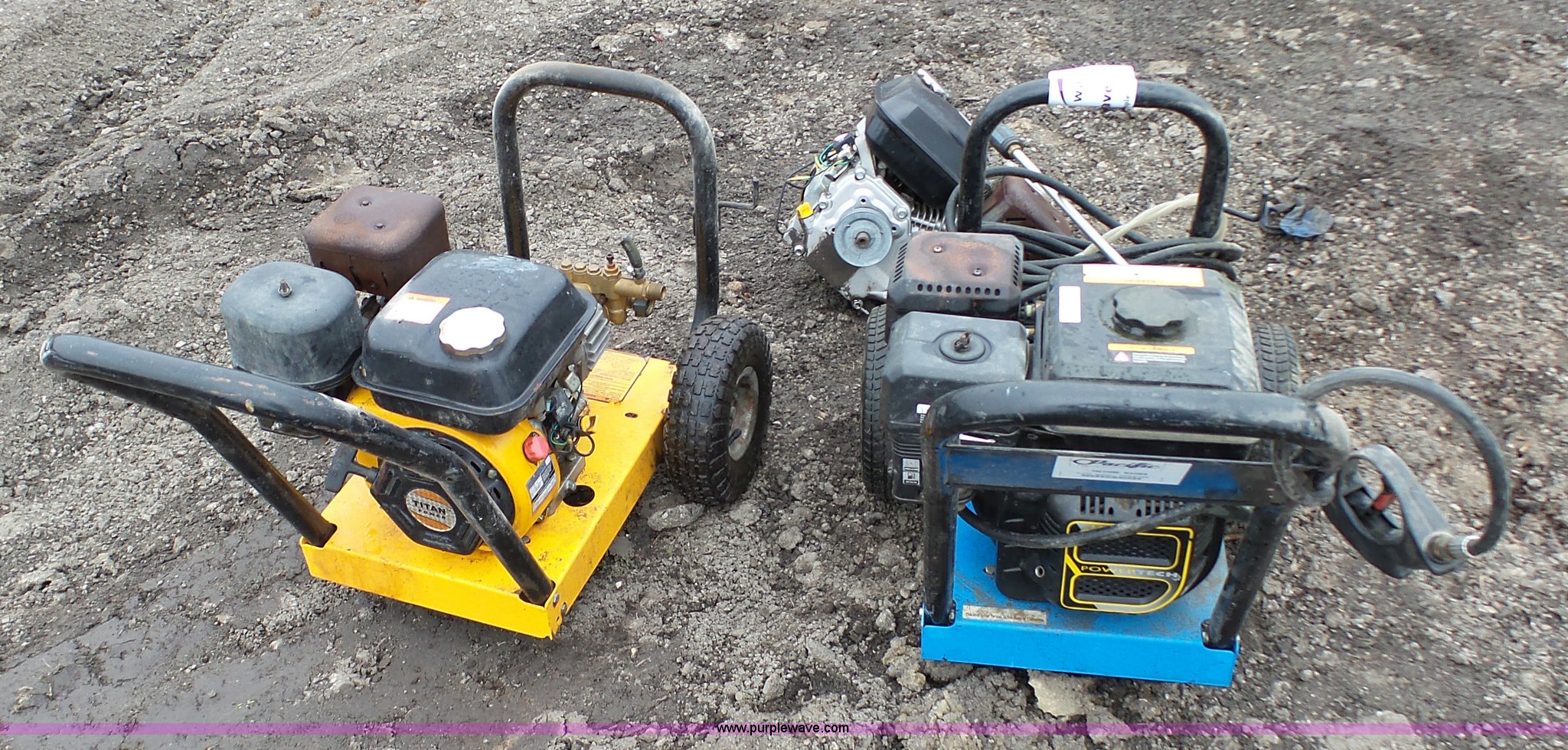Purple Wave is selling a used Pressure Washer in Kansas. This item is a (3) pressure washers with the following: Single cylinder gas engine, Hose with gun, Additional engine, Unknown operating condition