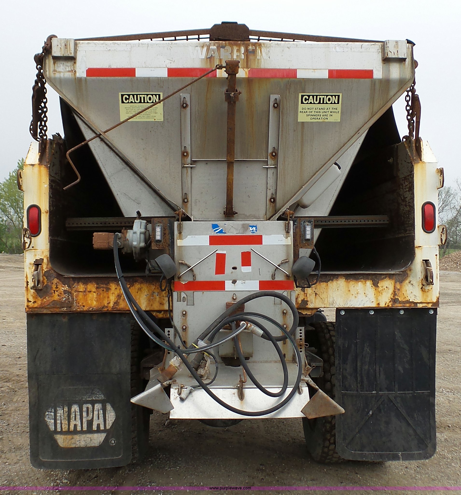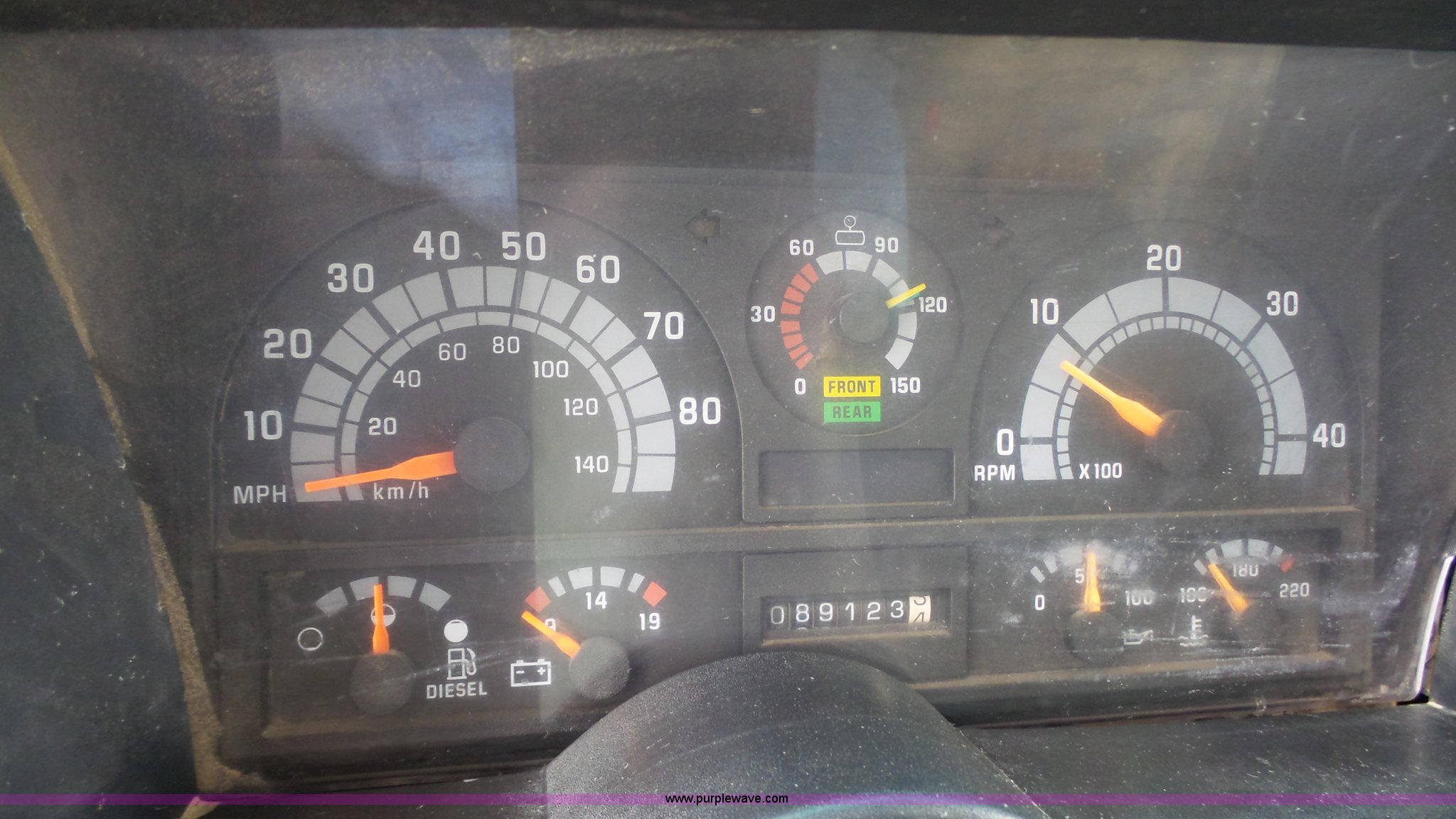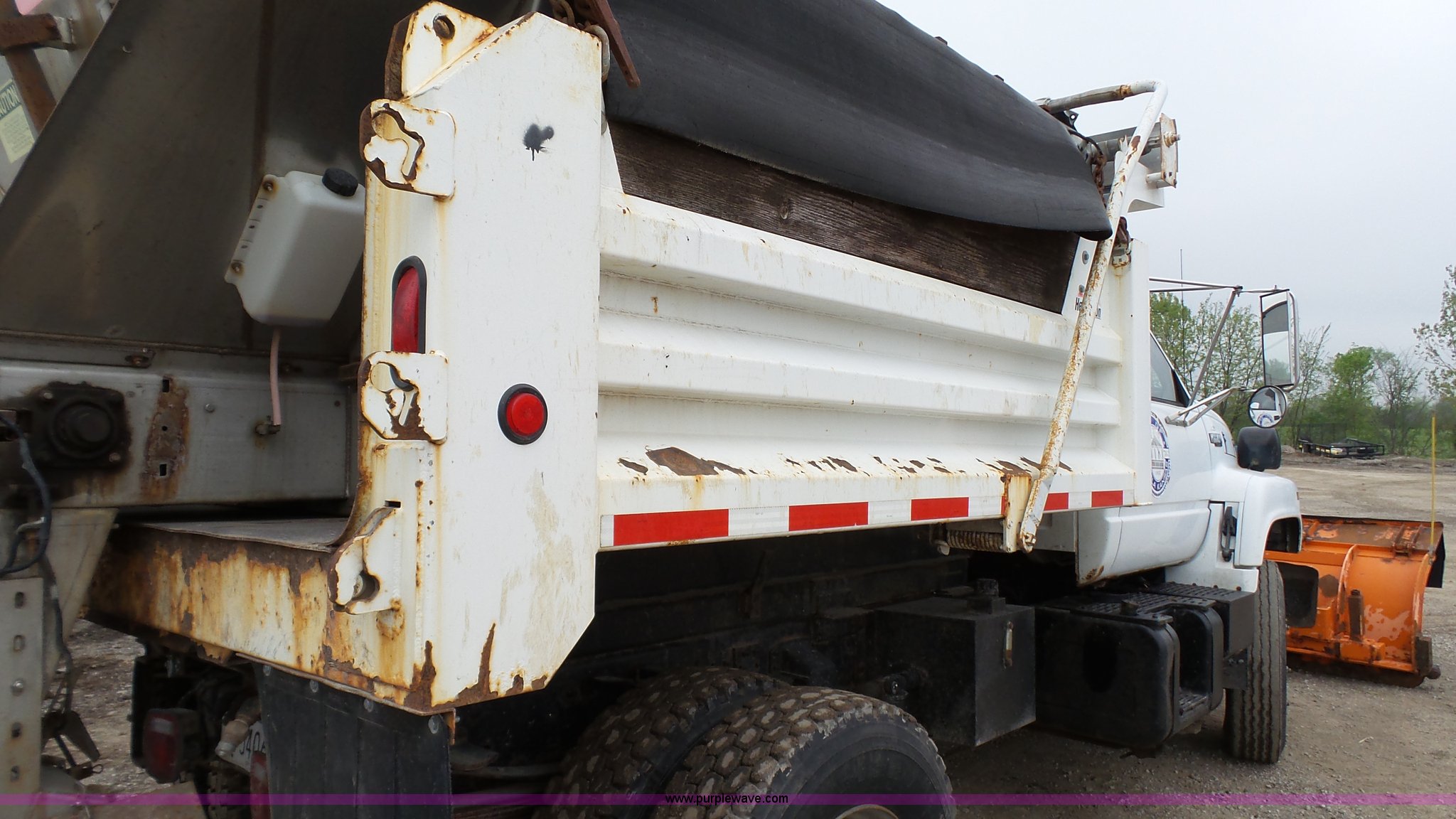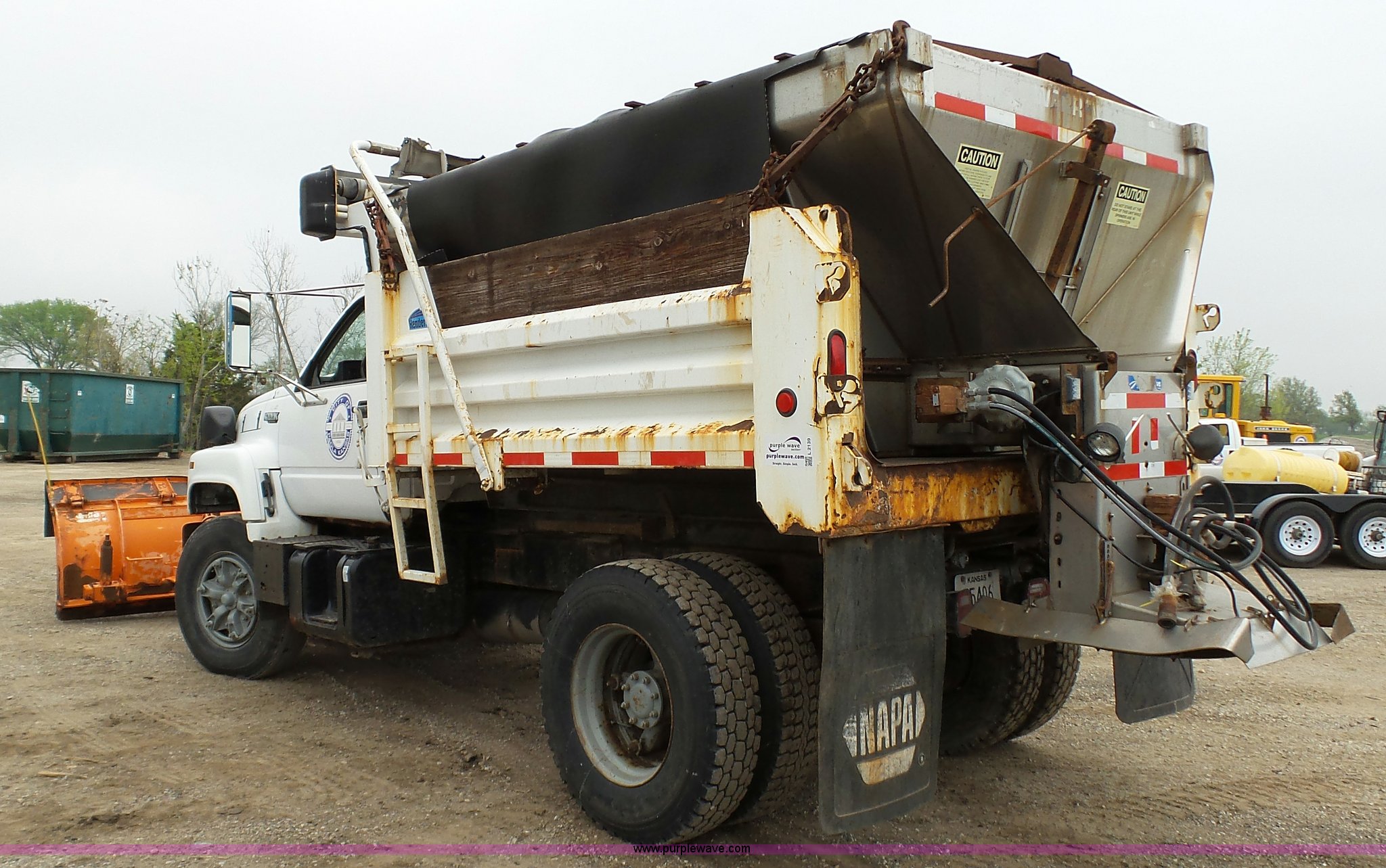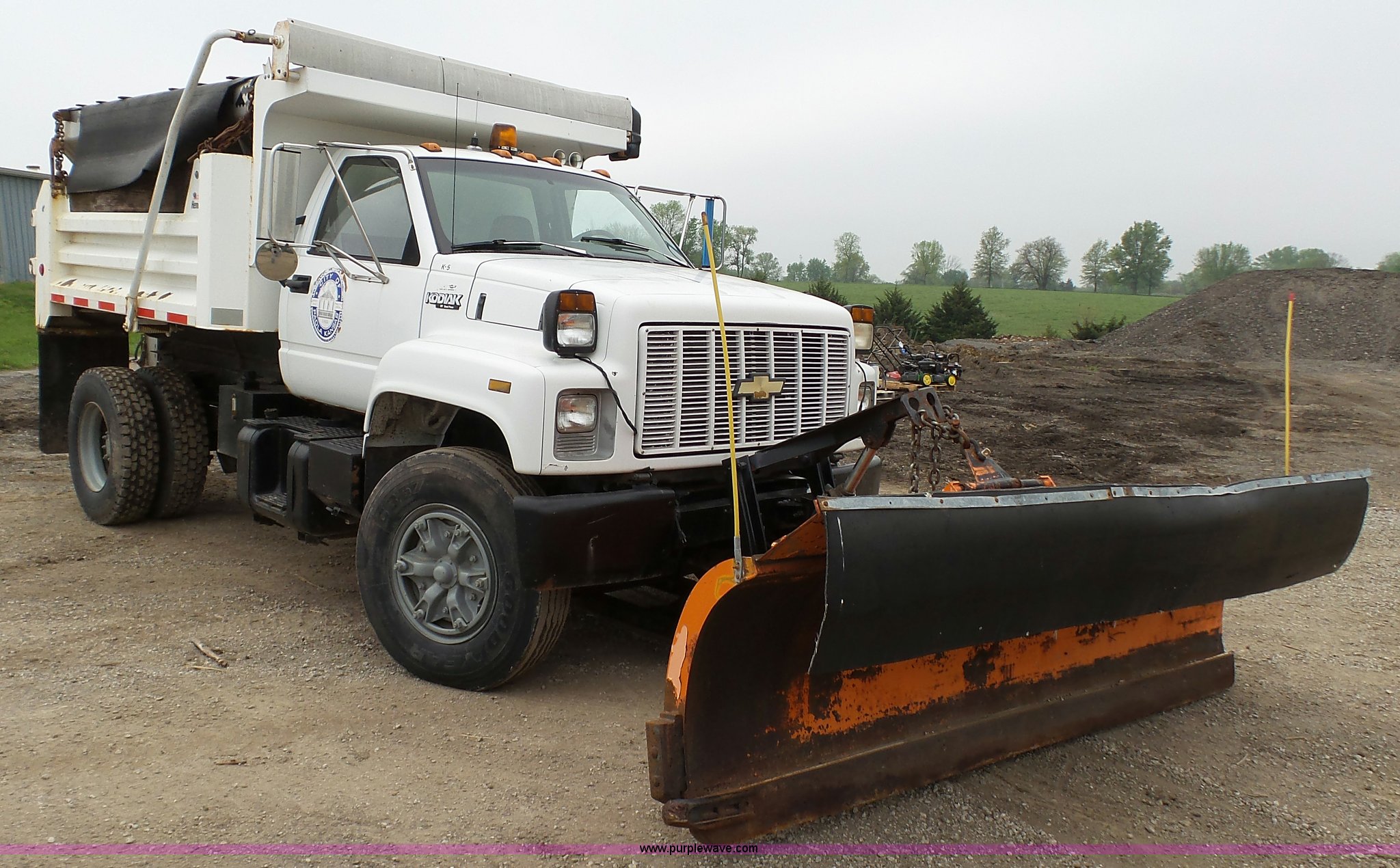 Purple Wave is selling a used Construction Dump Truck in Kansas. This item is a 1993 Chevrolet Kodiak dump truck with the following: 89,123 miles on odometer, 8,111 hours on meter, Caterpillar 3116 6.6L six cylinder turbo diesel engine, Five speed manual transmission, Single axle, Heat, Suspension seat, Block heater, PTO, Henderson steel dump bed, 10'L x 8'W, 35" side height, Rollover tarp, Single ram hoist, Monroe MP36R10-CT plow, 10'W, Warren stainless steel spreader, 10'L, Single spreader, Dual fuel tanks, Spring suspension, Air brakes, 11R22.5 tires, GVWR 33,200 lbs, FAWR 12,000 lbs, RAWR 21,200 lbs, Service records available upon request