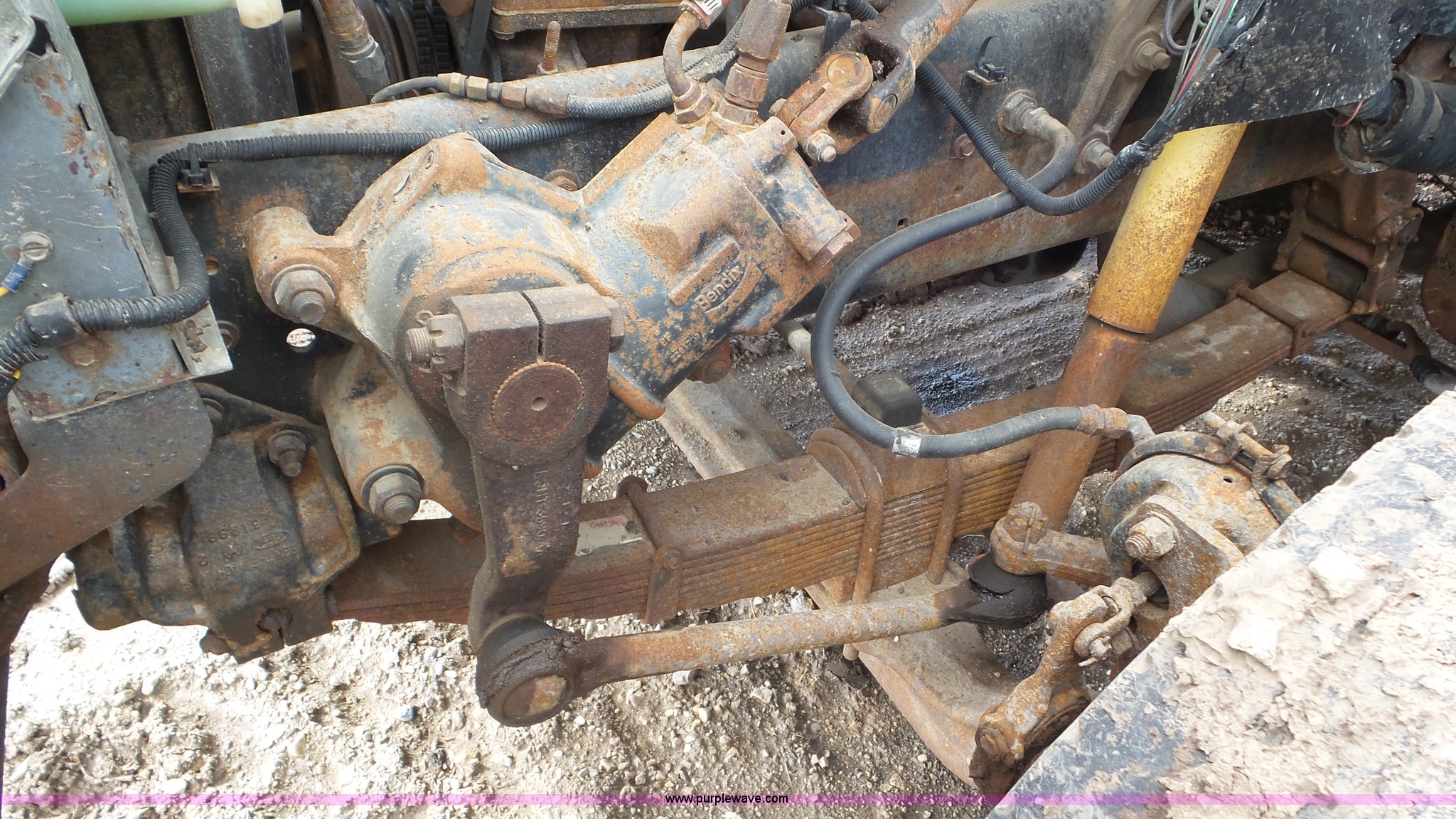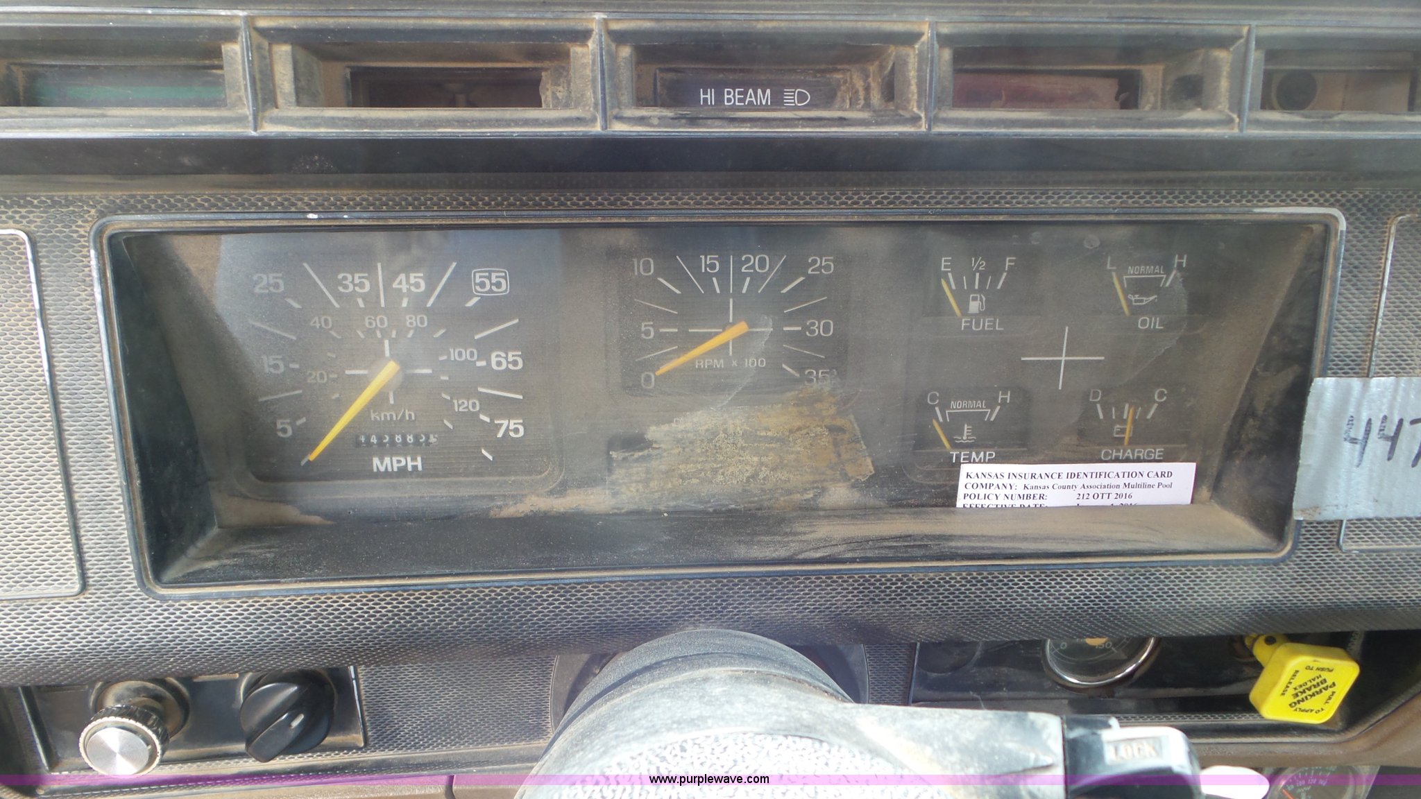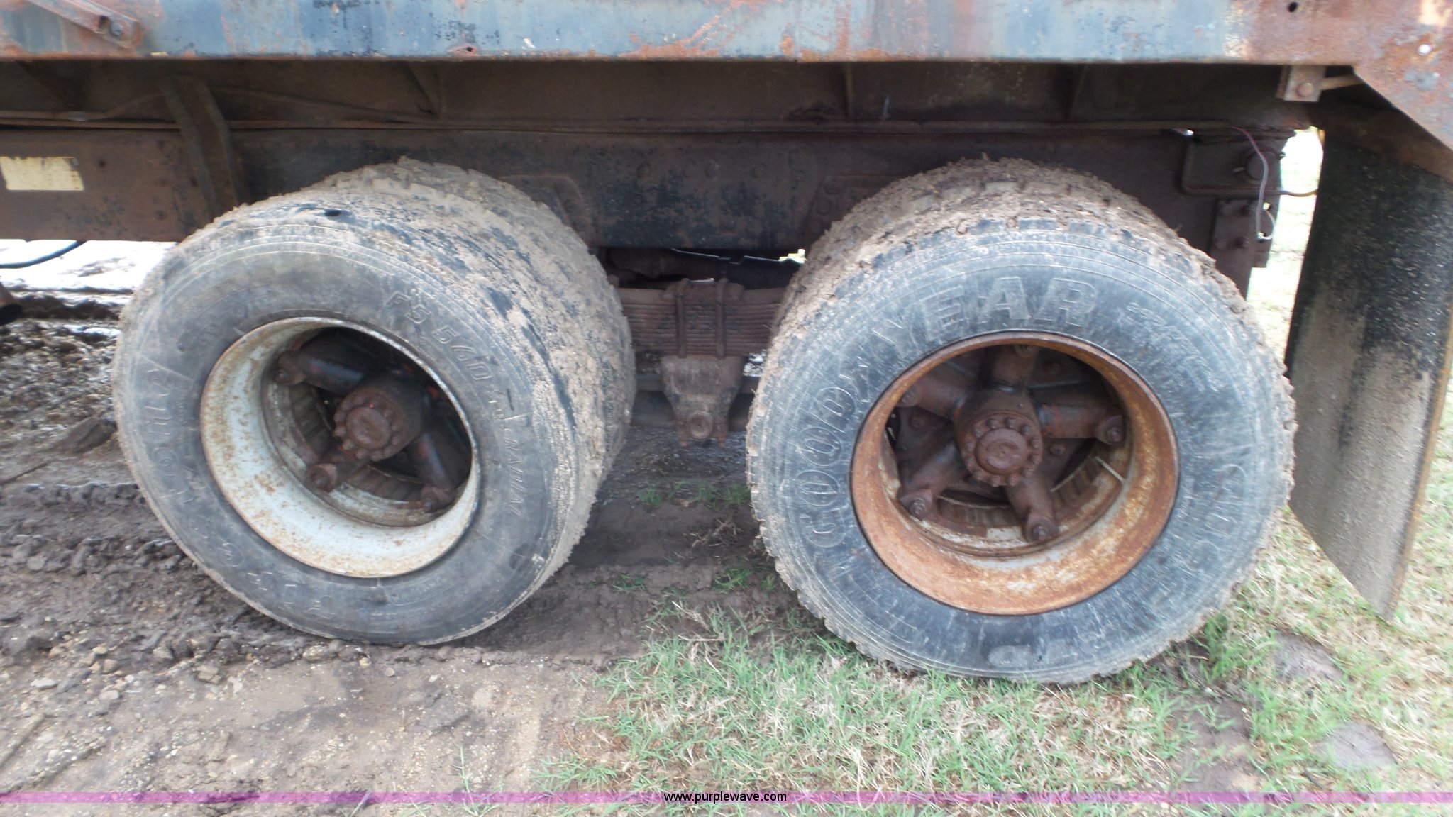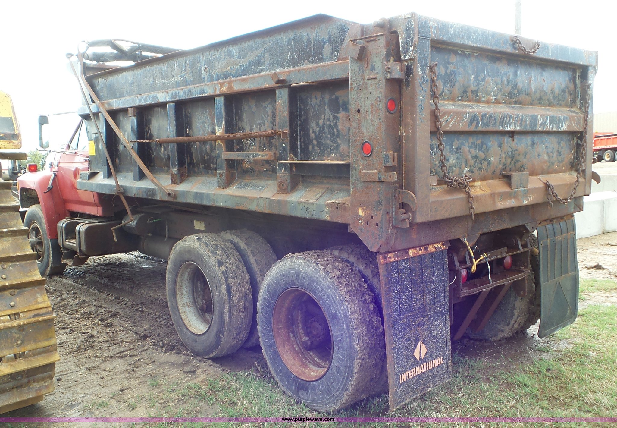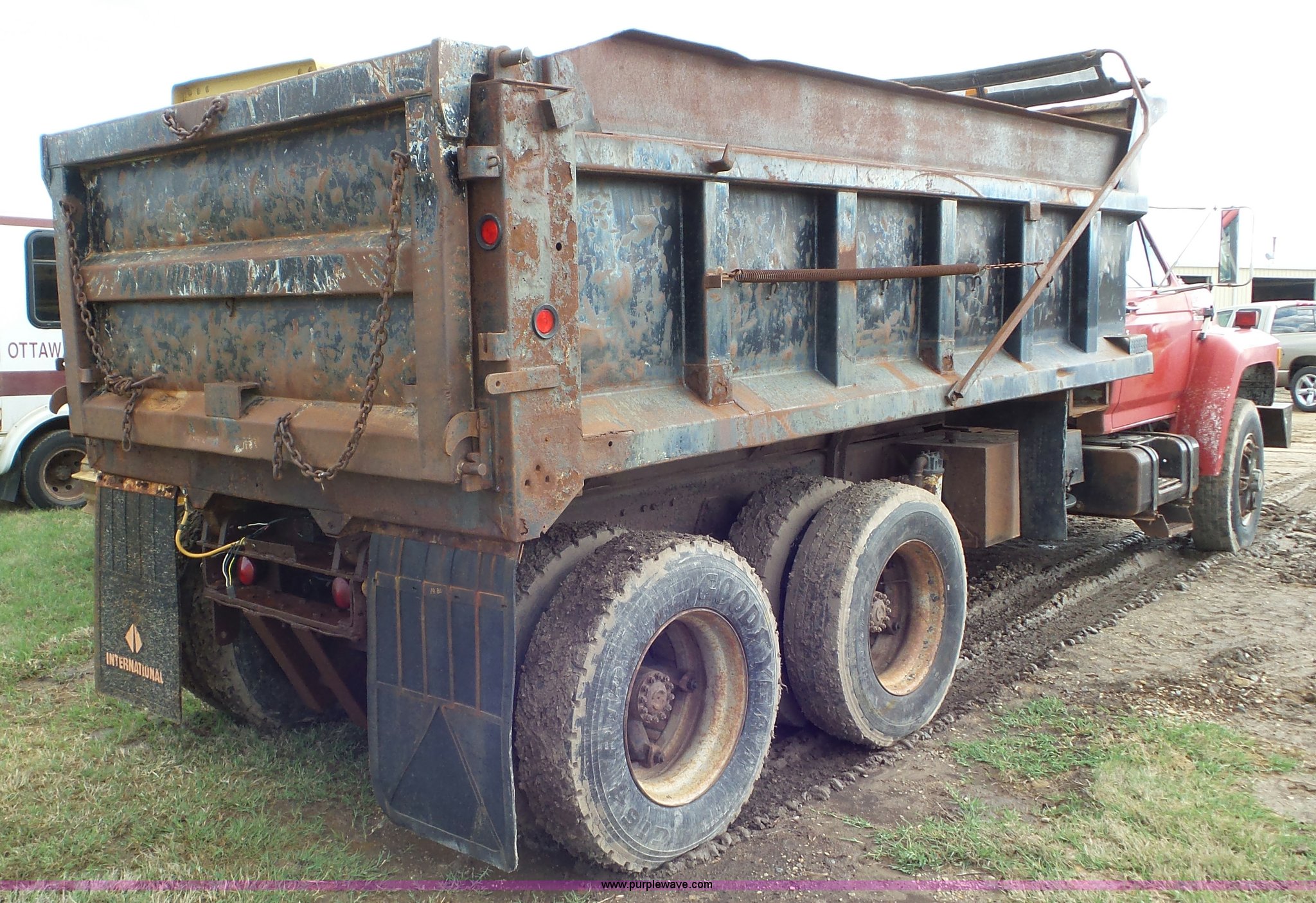 Purple Wave is selling a used Construction Dump Truck in Kansas. This item is a 1989 Ford F900 dump truck with the following: 443,883 miles on odometer, Ford 7.8L L6 turbo diesel engine, Eaton Fuller 10 speed manual transmission, Tandem axle, Heat, AM/FM, Suspension seat, Block heater, PTO, 15'L x 8'W steel dump bed, 44"H sides, Rollover tarp, Single ram hoist, Air operated end gate, Dual fuel tanks, Spring over walking beam suspension, Air brakes, 189" wheelbase, 11R22.5 front tires, 295/75R22.5 rear tires