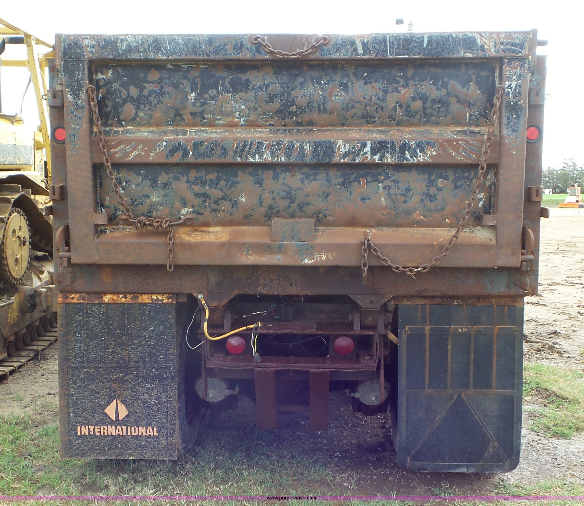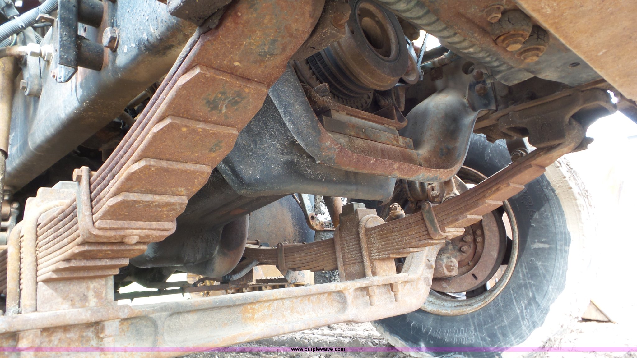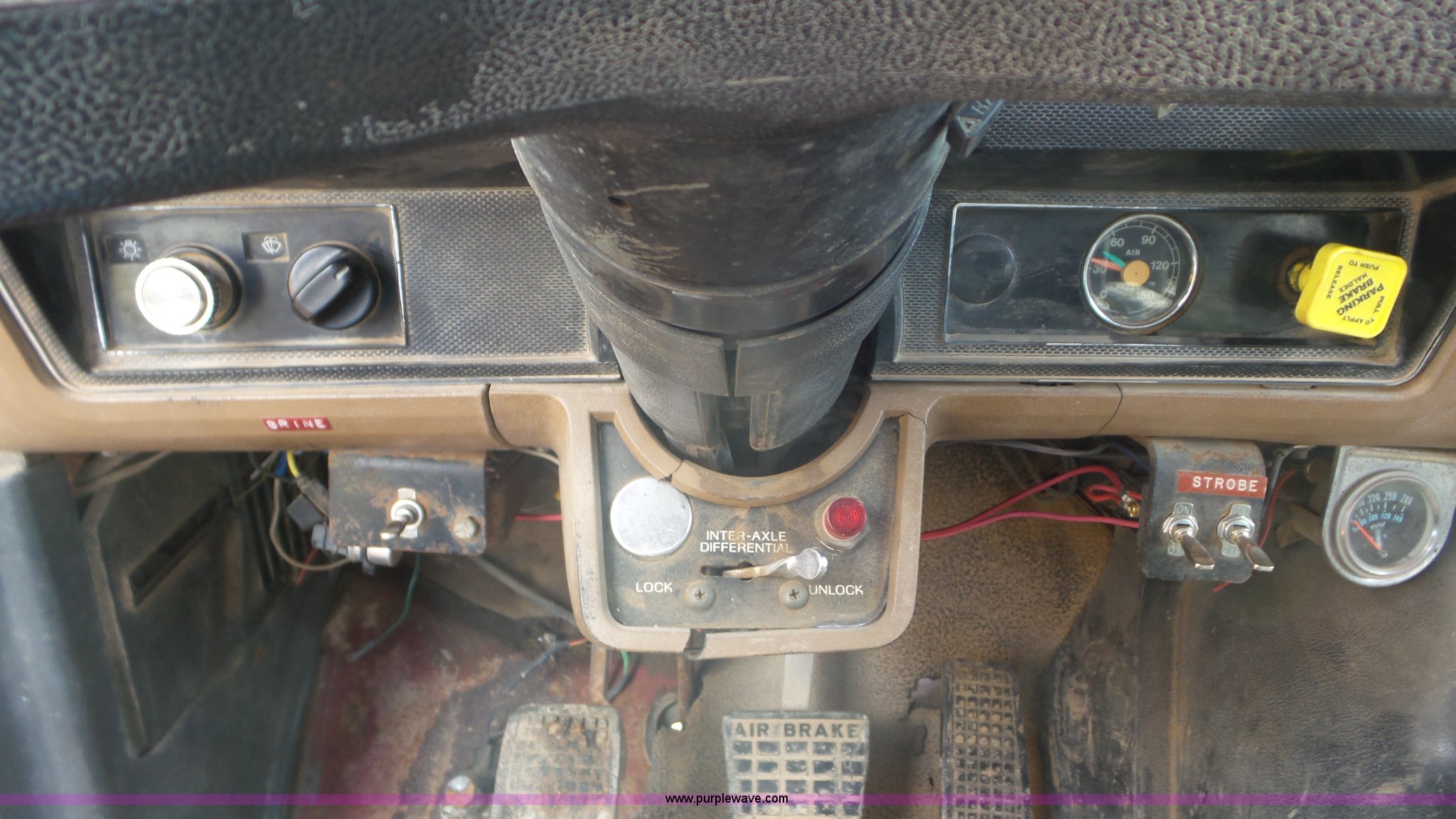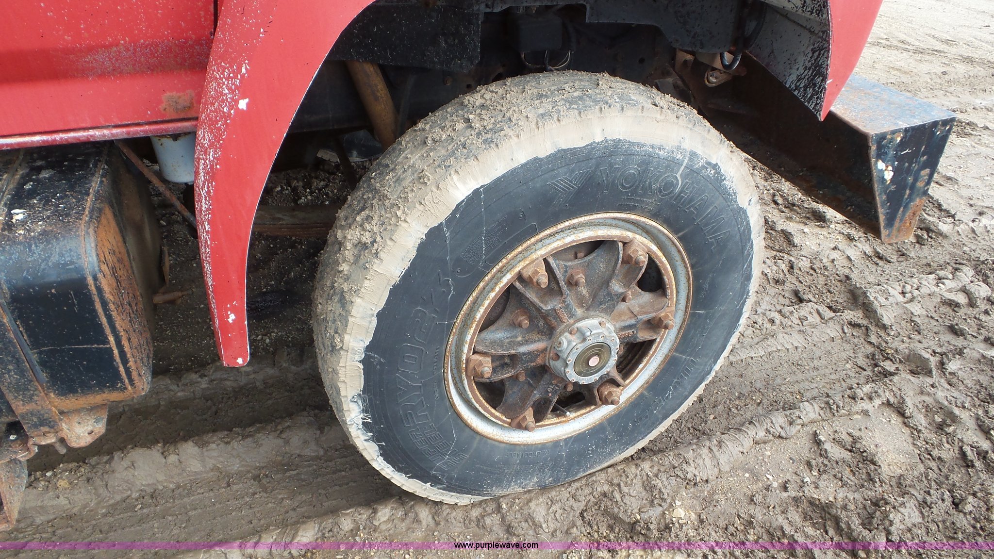 Purple Wave is selling a used Construction Dump Truck in Kansas. This item is a 1989 Ford F900 dump truck with the following: 443,883 miles on odometer, Ford 7.8L L6 turbo diesel engine, Eaton Fuller 10 speed manual transmission, Tandem axle, Heat, AM/FM, Suspension seat, Block heater, PTO, 15'L x 8'W steel dump bed, 44"H sides, Rollover tarp, Single ram hoist, Air operated end gate, Dual fuel tanks, Spring over walking beam suspension, Air brakes, 189" wheelbase, 11R22.5 front tires, 295/75R22.5 rear tires