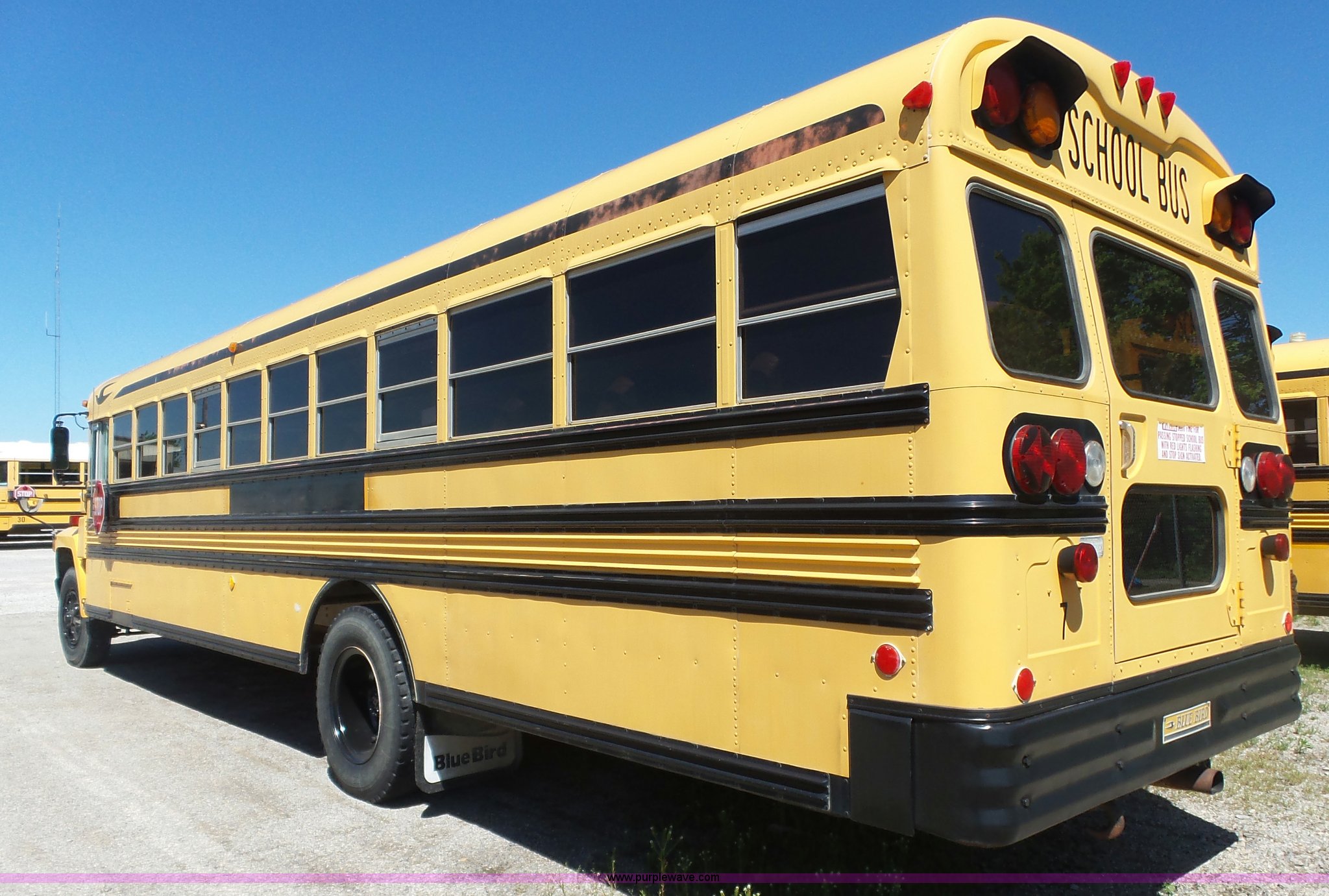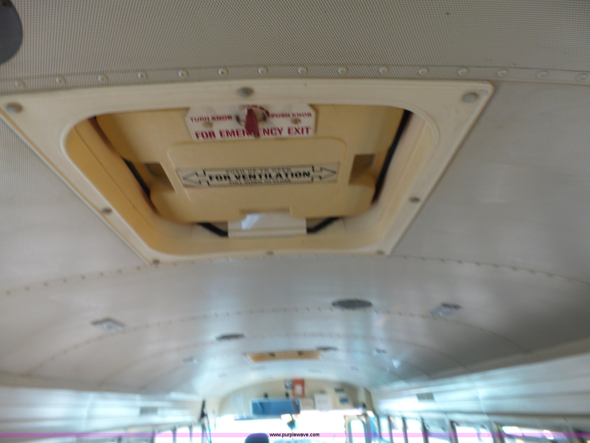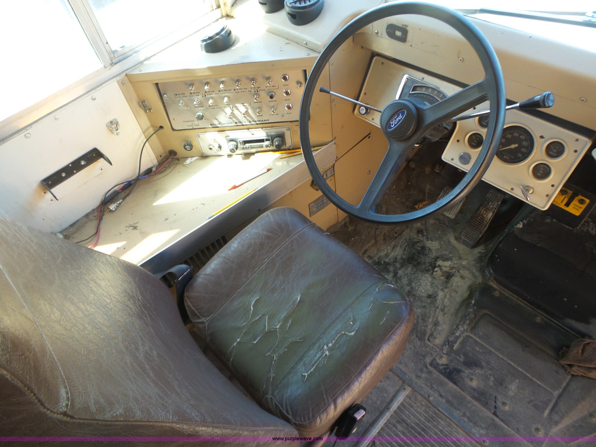 Purple Wave is selling a used Bus in Kansas. This item is a 1992 Ford B700 school bus with the following: 125,529 miles on odometer, Cummins ISB 5.9L L6 turbo diesel engine, Automatic transmission, Single axle, Heat, AM/FM/cassette, 65 passenger capacity, Ceiling, front, rear, and side emergency egress, Lighted stop sign, Block heater, Spring suspension, Hydraulic brakes, 10R22.5 front tires, 9.00-20 rear tires, GVWR 26,500 lbs
