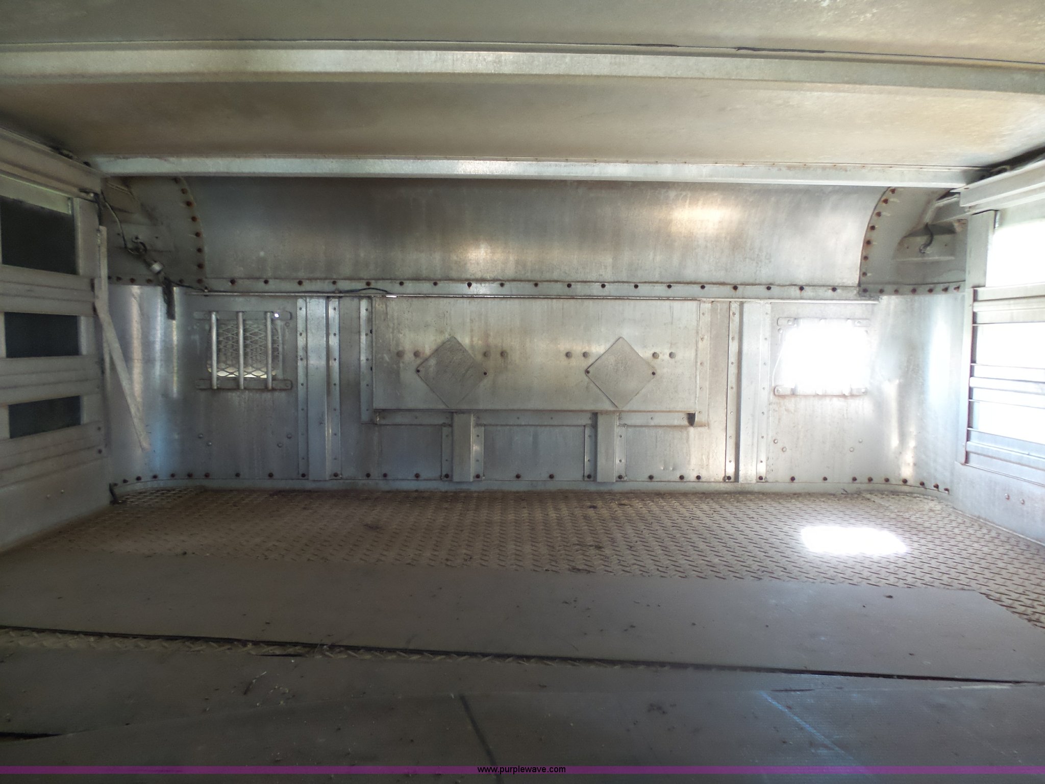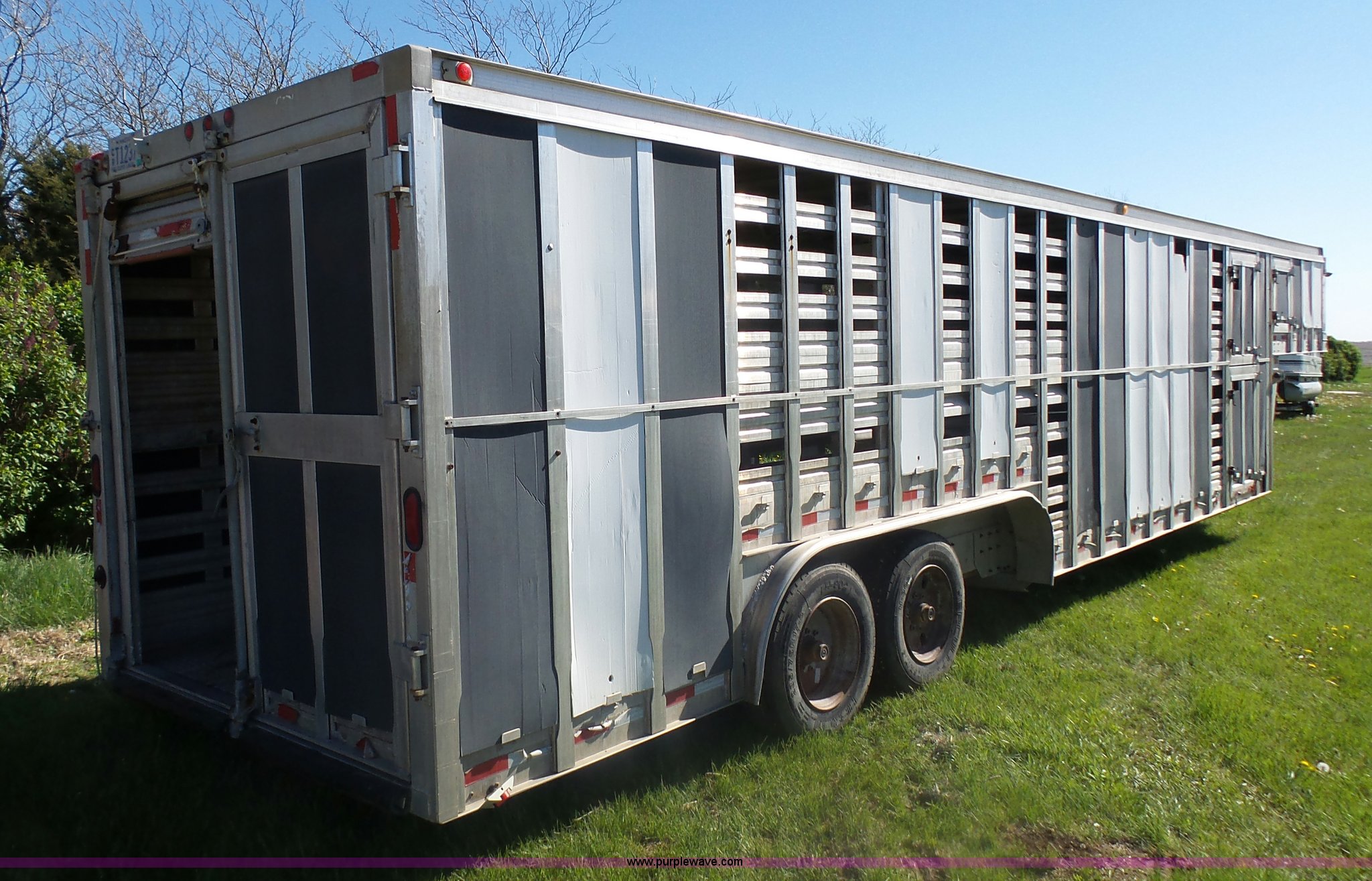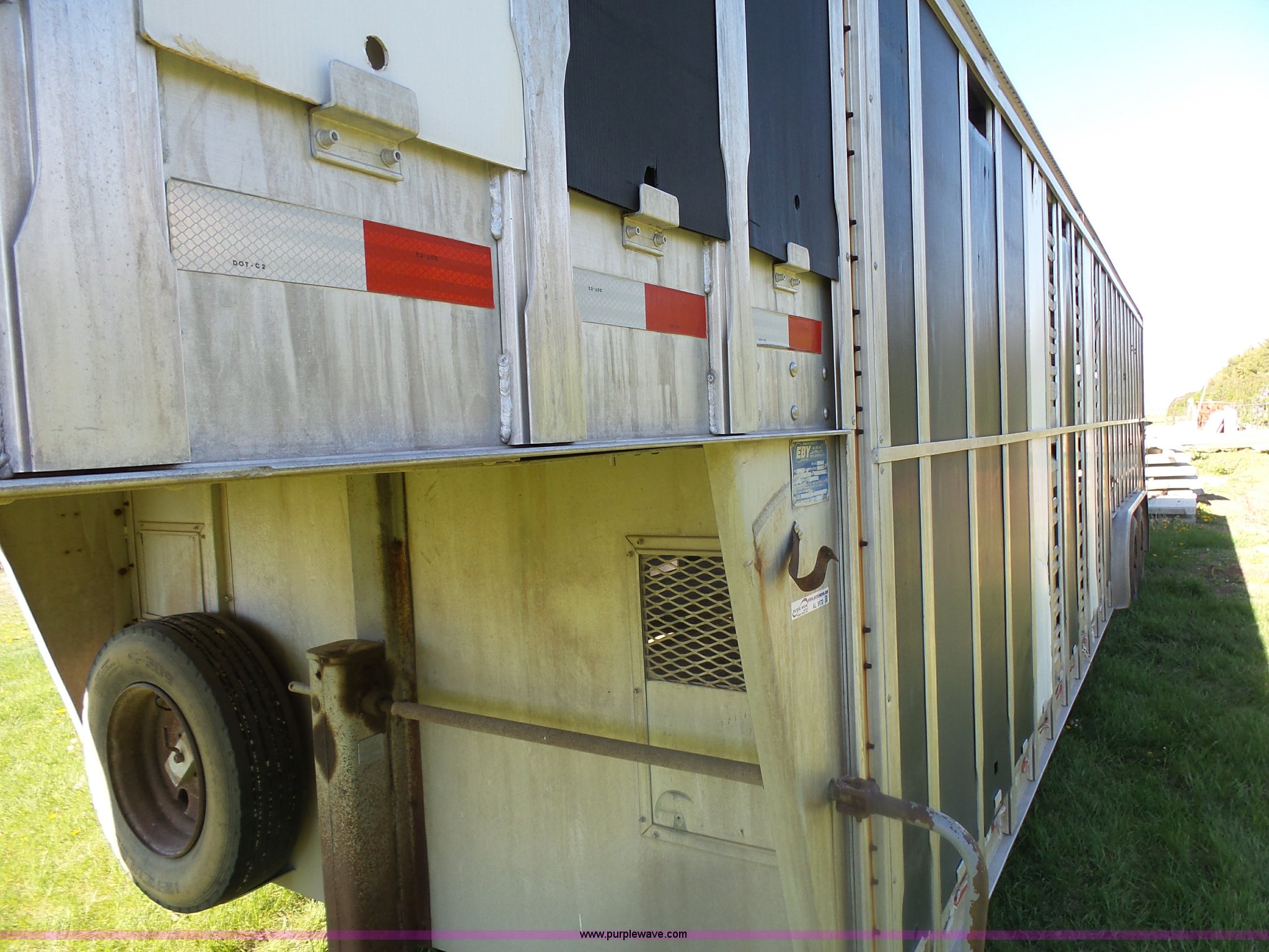 Purple Wave is selling a used Livestock Trailer in South Dakota. This item is a 1998 Eby 125 livestock trailer with the following: 40'L x 8'W, 8'W interior, (2) center divider gates, Side door, Rear roll up gate, Side load gate, Dock bumper, Aluminum construction, Spare tire carrier, Fifth wheel plate, Jost A400 single leg landing gear, Electric brakes, Tandem axle, Steel wheels, 235/75R17.5 tires, GVWR 30,000 lbs, GAWR 8,000 lbs