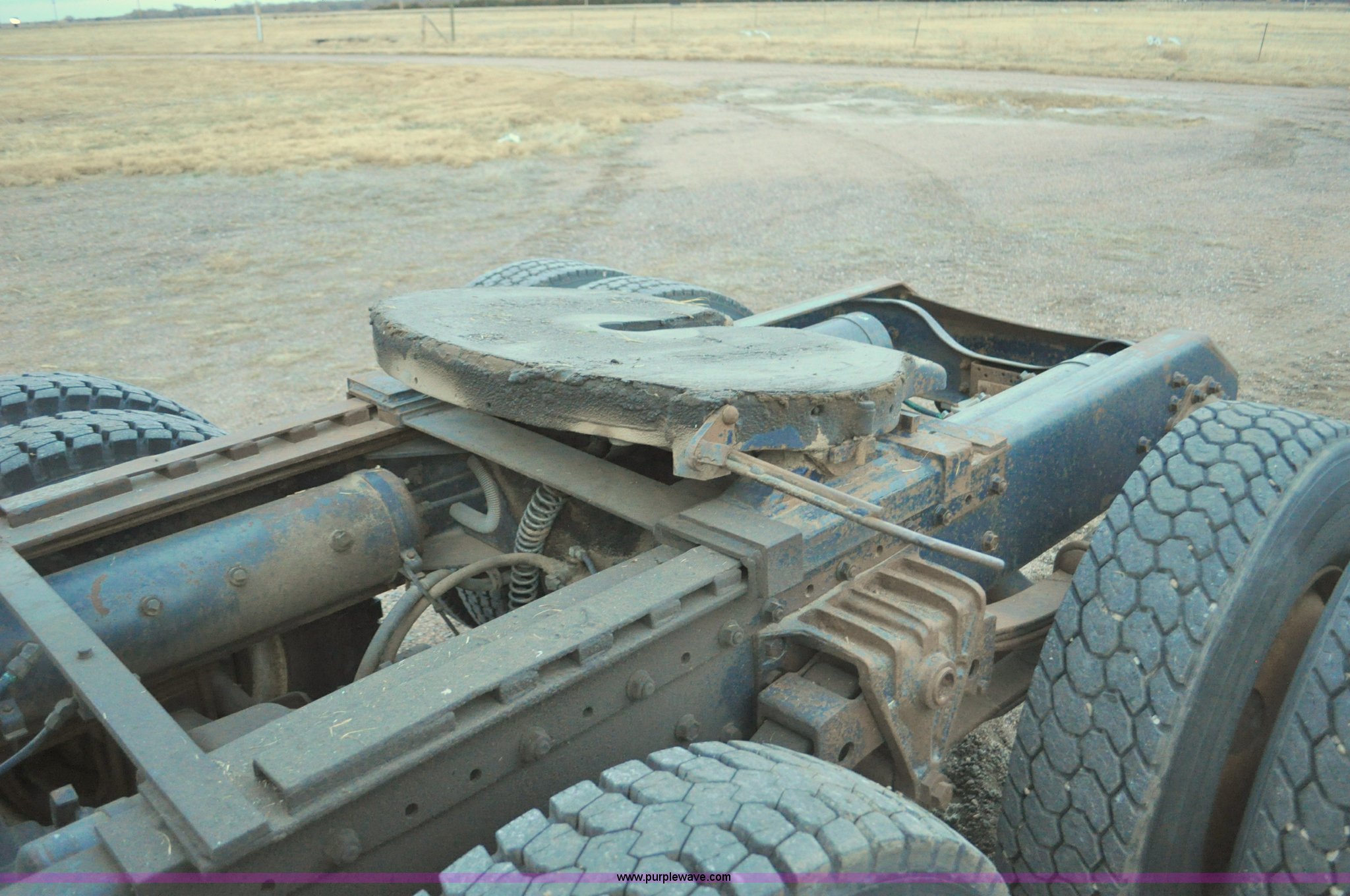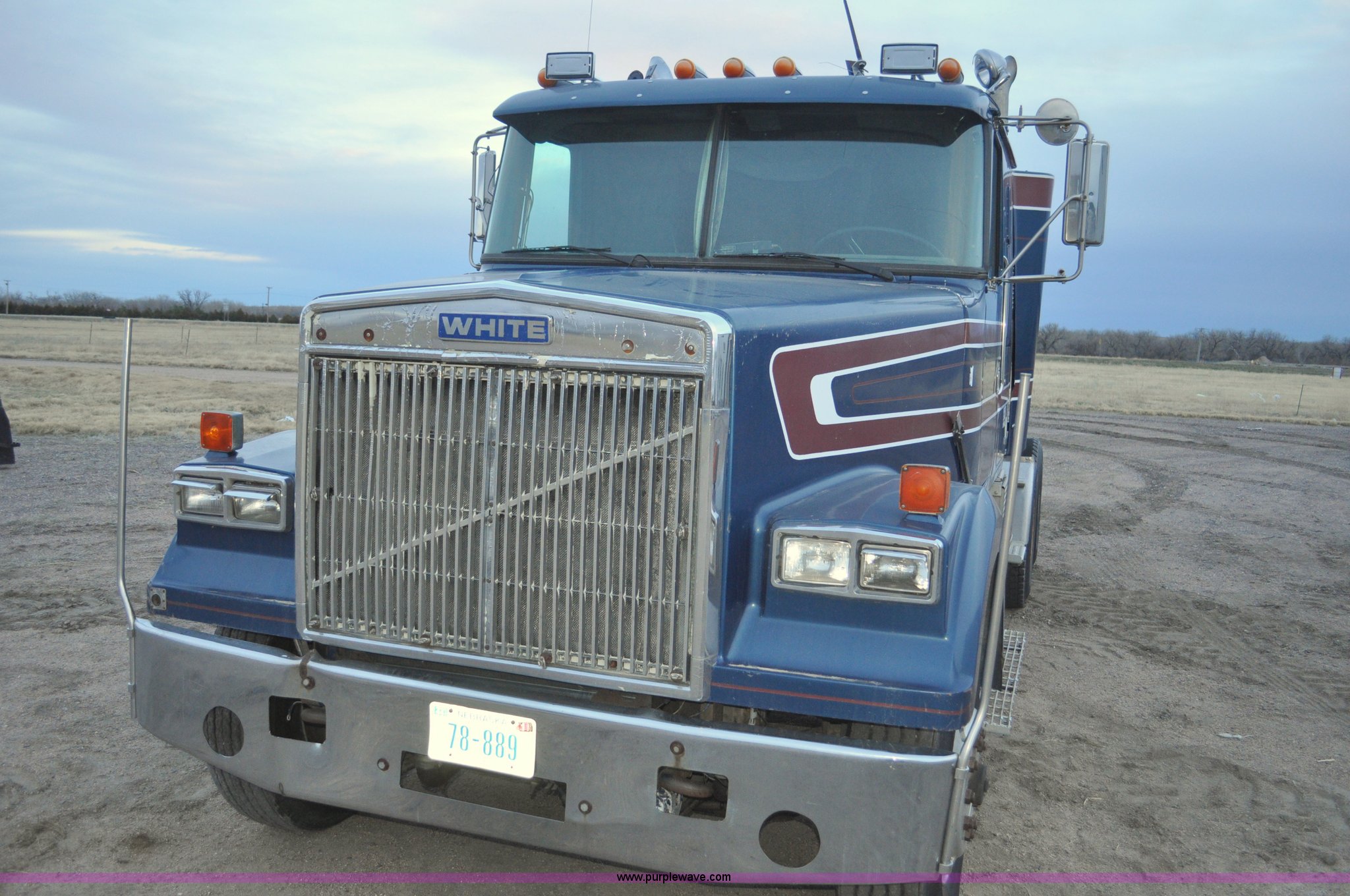 Purple Wave is selling a used Truck Tractor in Colorado. This item is a 1985 Volvo White GMC semi truck with the following: 433,625 miles on odometer, Cummins six cylinder turbo diesel engine, 13 speed manual transmission, Tandem axle, Inter-axle differential lock, Heat, AM/FM, Air suspension seat, Air ride cab, 36" sleeper, Single bed, Wet kit, Exterior visor, Front tow hooks, Dual rear exhaust stacks, Air operated sliding fifth wheel plate, Dual fuel tanks, Stainless steel quarter fenders, Spring suspension, Air brakes, 210" wheelbase, 11R22.5 tires, GVWR 47,000 lbs, FAWR 11,000 lbs, IAWR 18,000 lbs, RAWR 18,000 lbs, Weak batteries, Cracked windshield, Right front fender damage