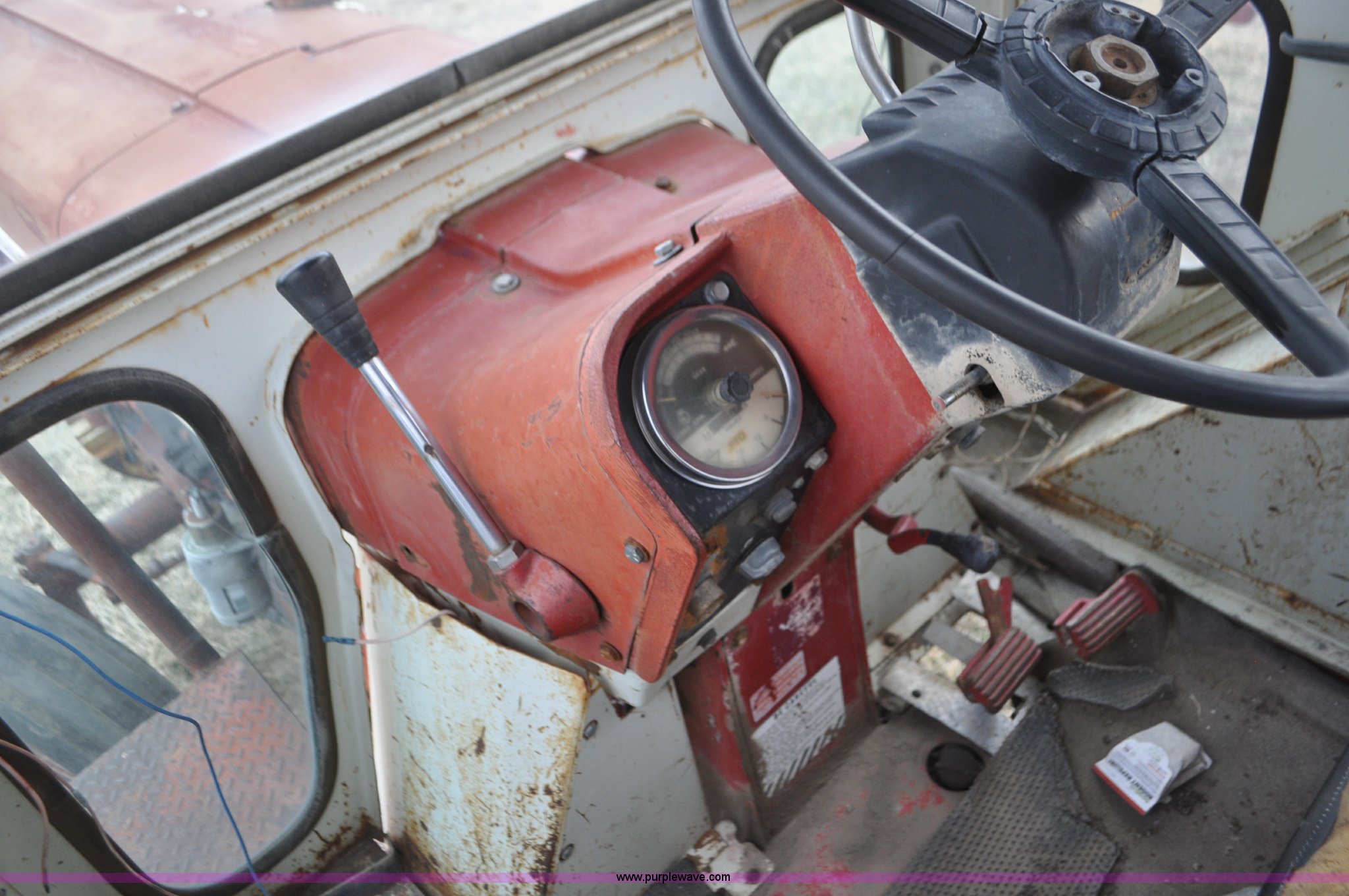 Purple Wave is selling a used Tractor in Colorado. This item is a International 1265 tractor with the following: 2,000 hours on meter, International DT407 6.7L six cylinder turbo diesel engine, 125 HP, Torque amplifier transmission, 16F-8R gears, Suspension seat, Three point, Top link, Quick attach, 540/1000 PTO, (2) rear hydraulic remote sets, Wheel weights, 10.00-16 front tires, 18.4-38 dual rear tires, Transmission issues, Tin work missing, Window glass missing and cracked, Unknown operating condition, Serial 7983