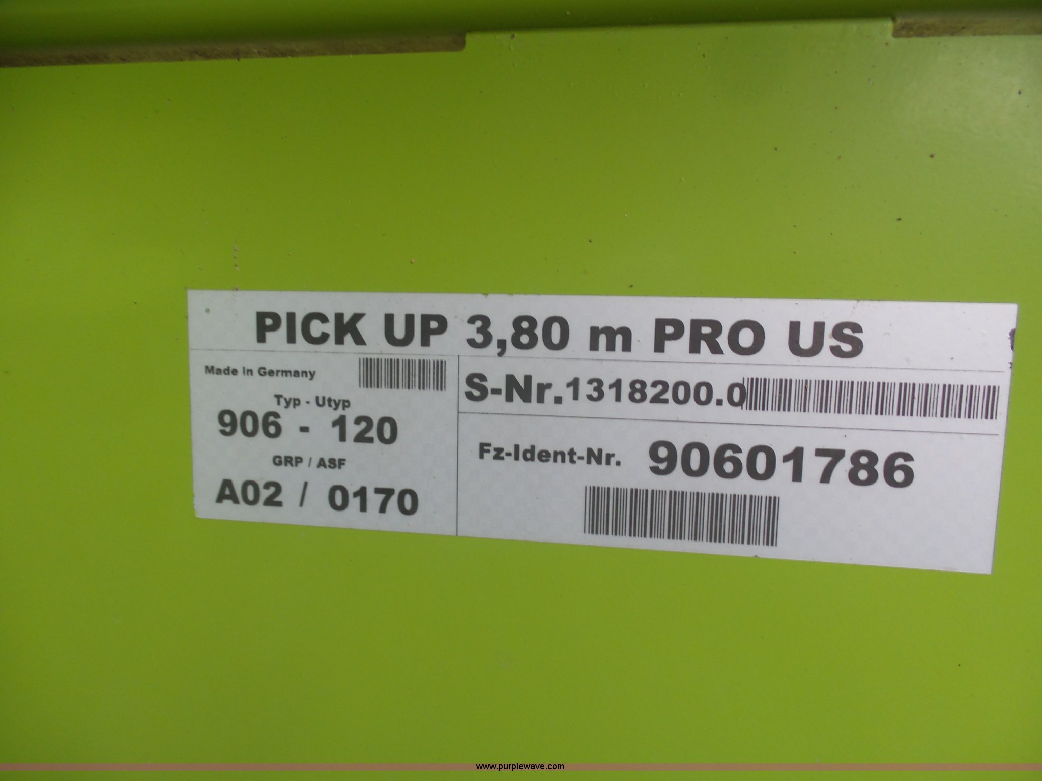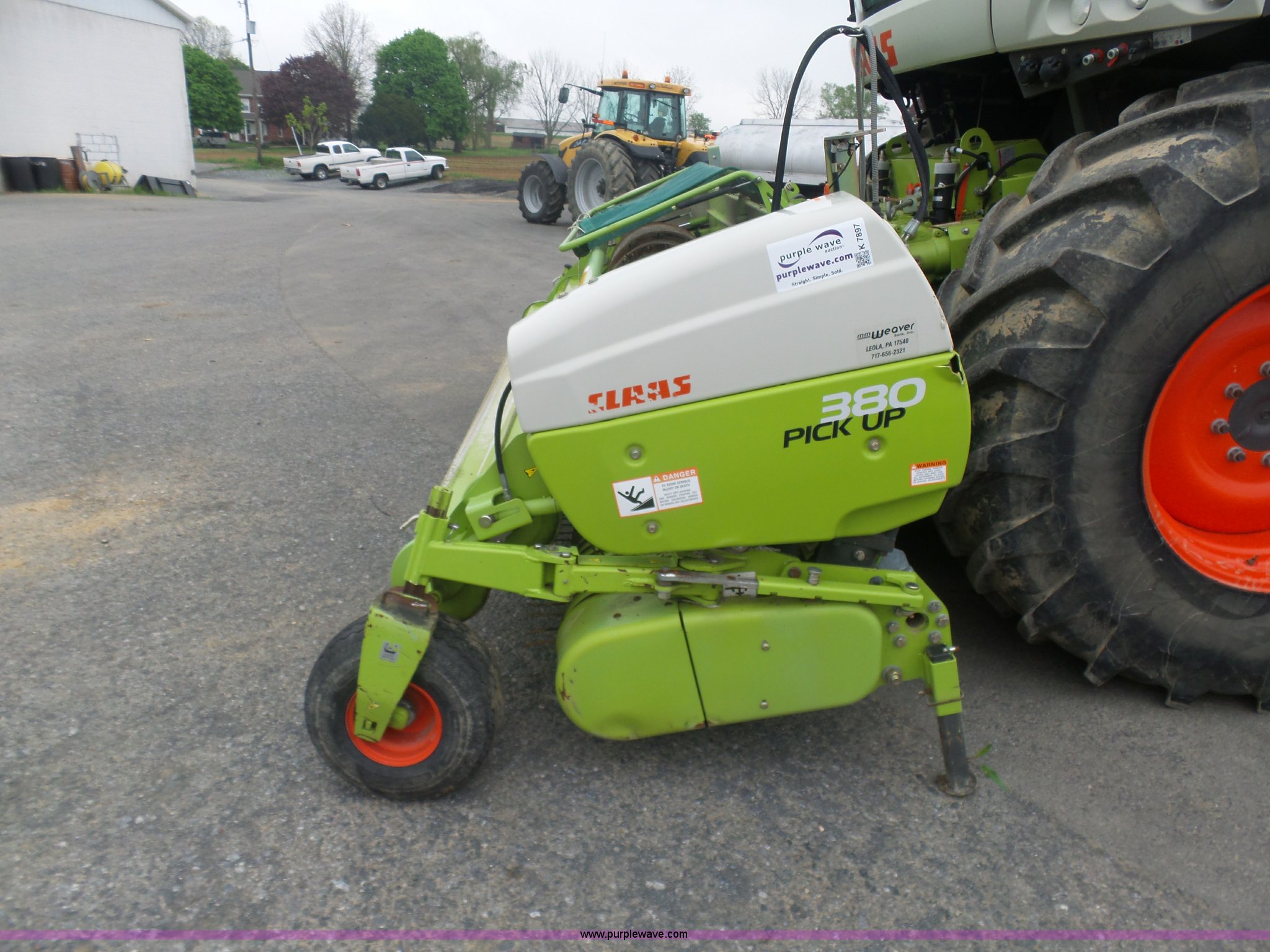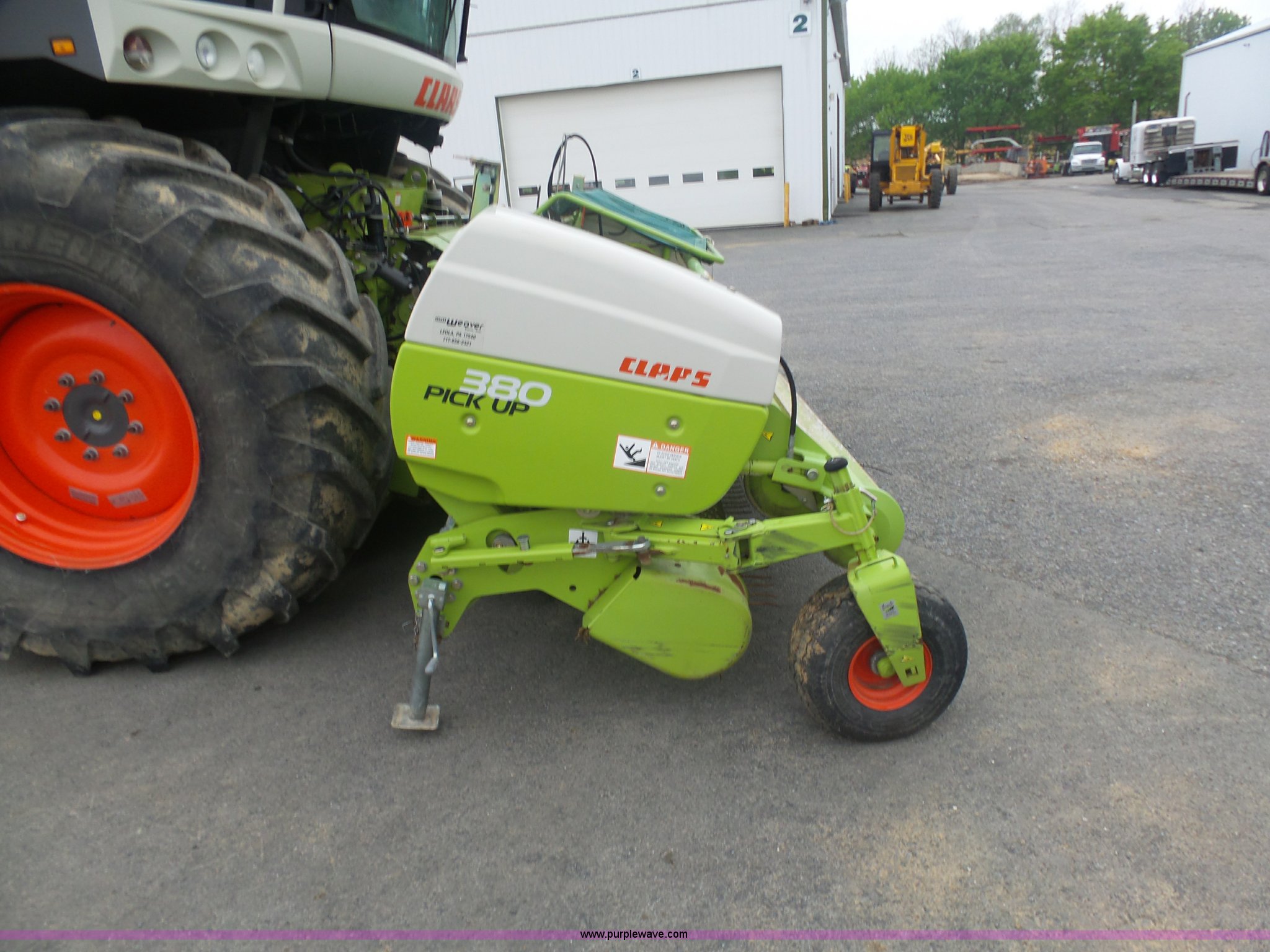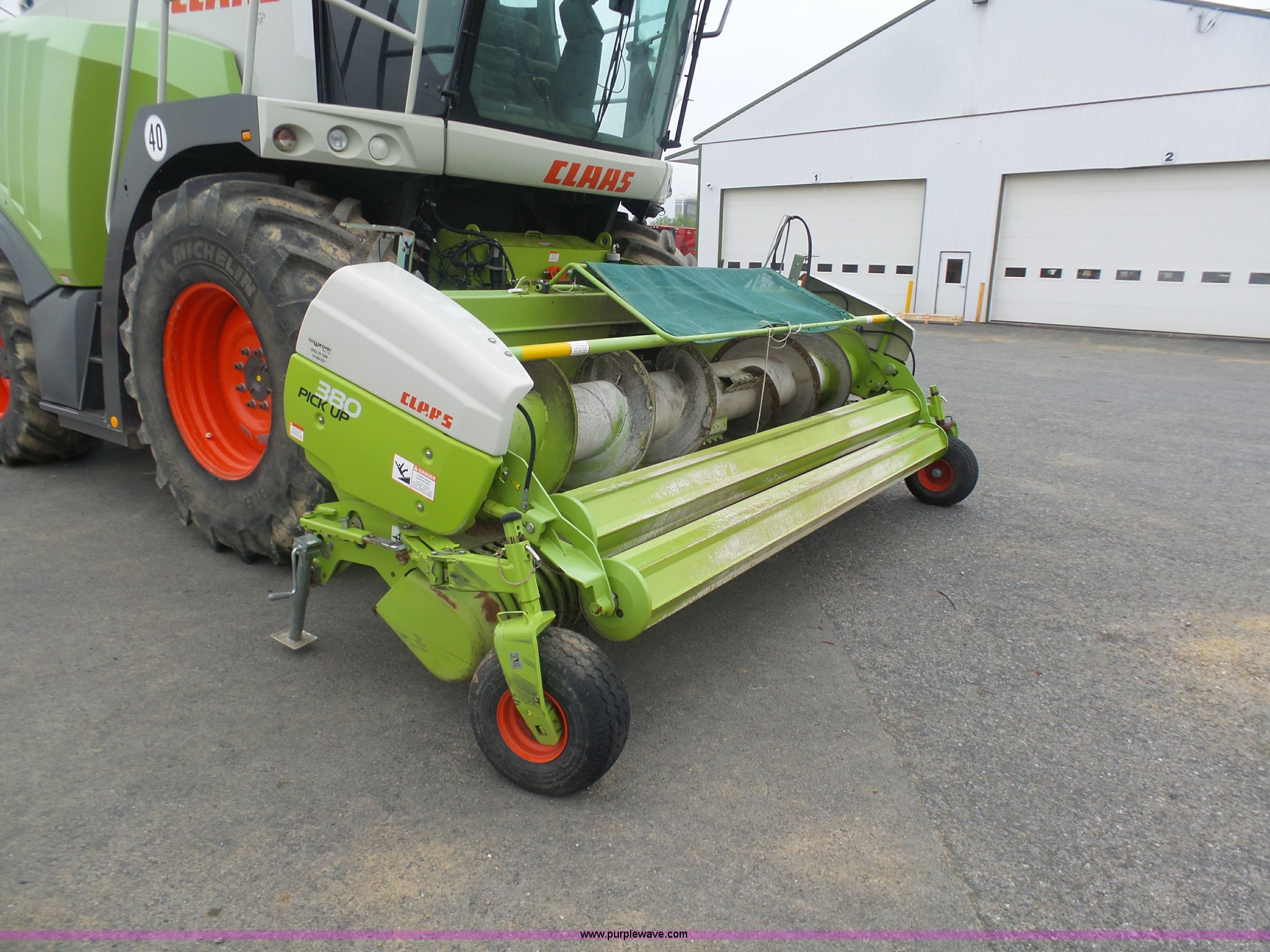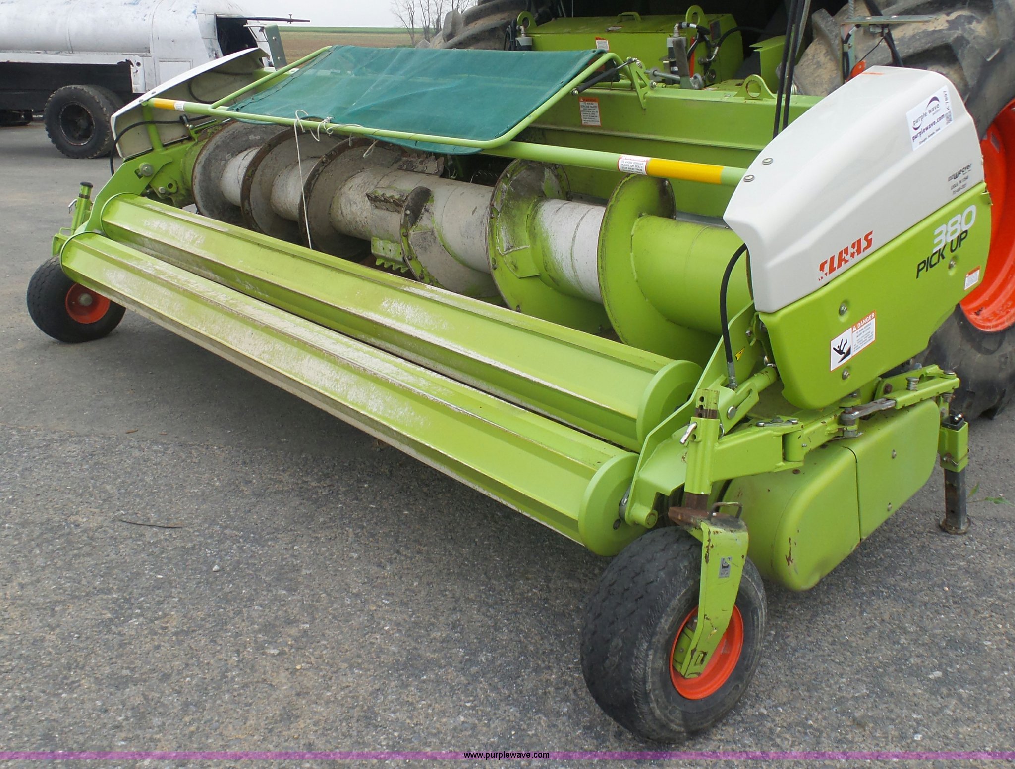 Purple Wave is selling a used Forage Head or Silage Handling in Pennsylvania. This item is a 2013 Claas 380 pickup head with the following: Gauge wheels, Single driveline, 18.5x8.5-8 tires, Forage harvester not included, Serial 90601786
