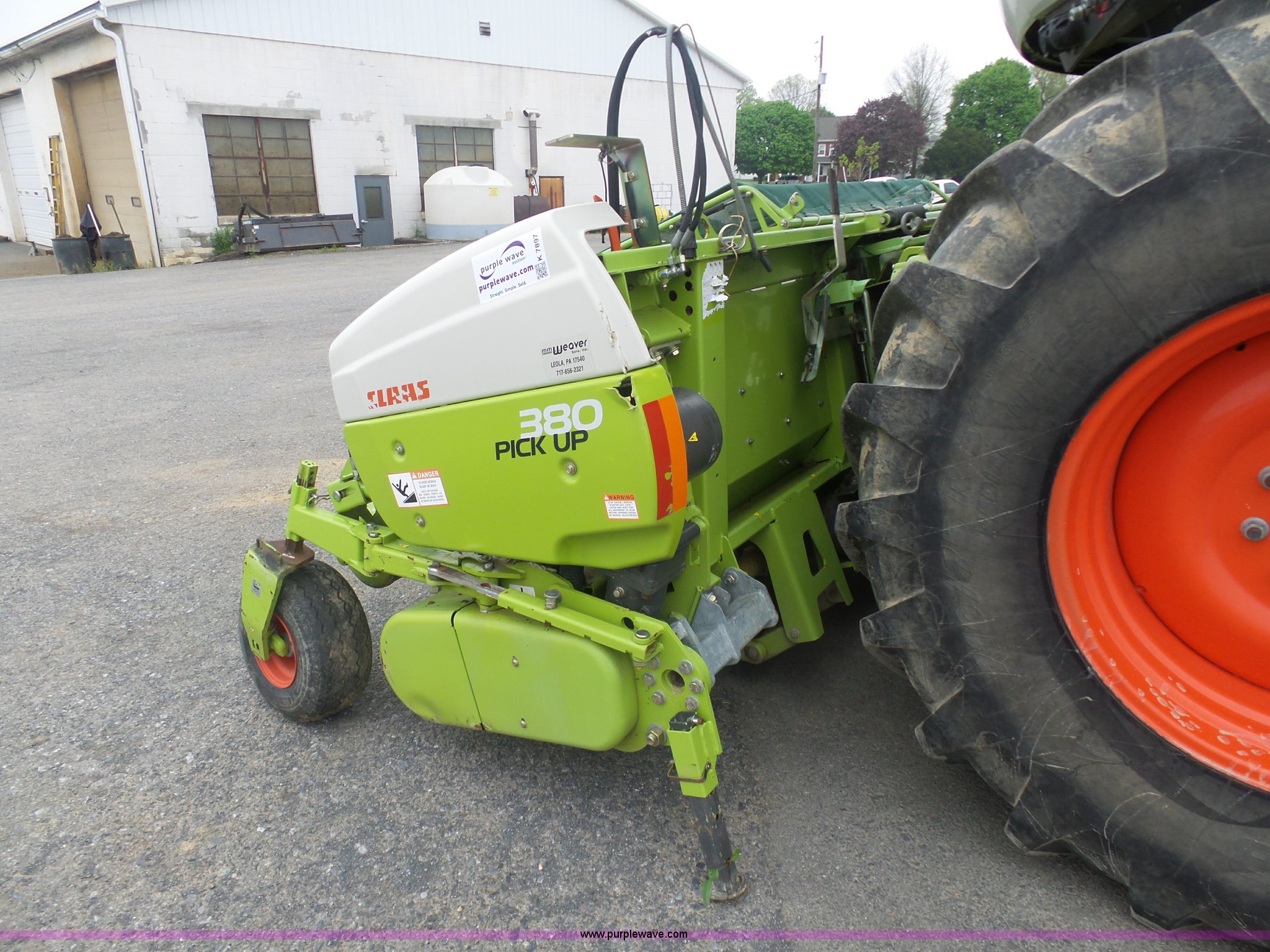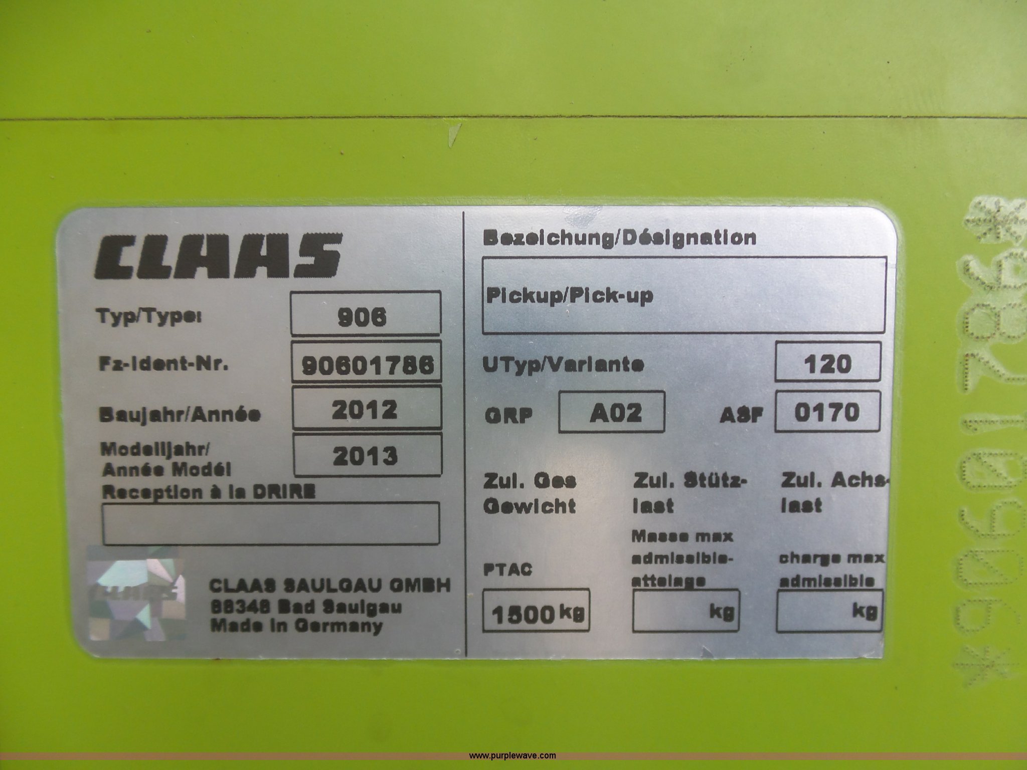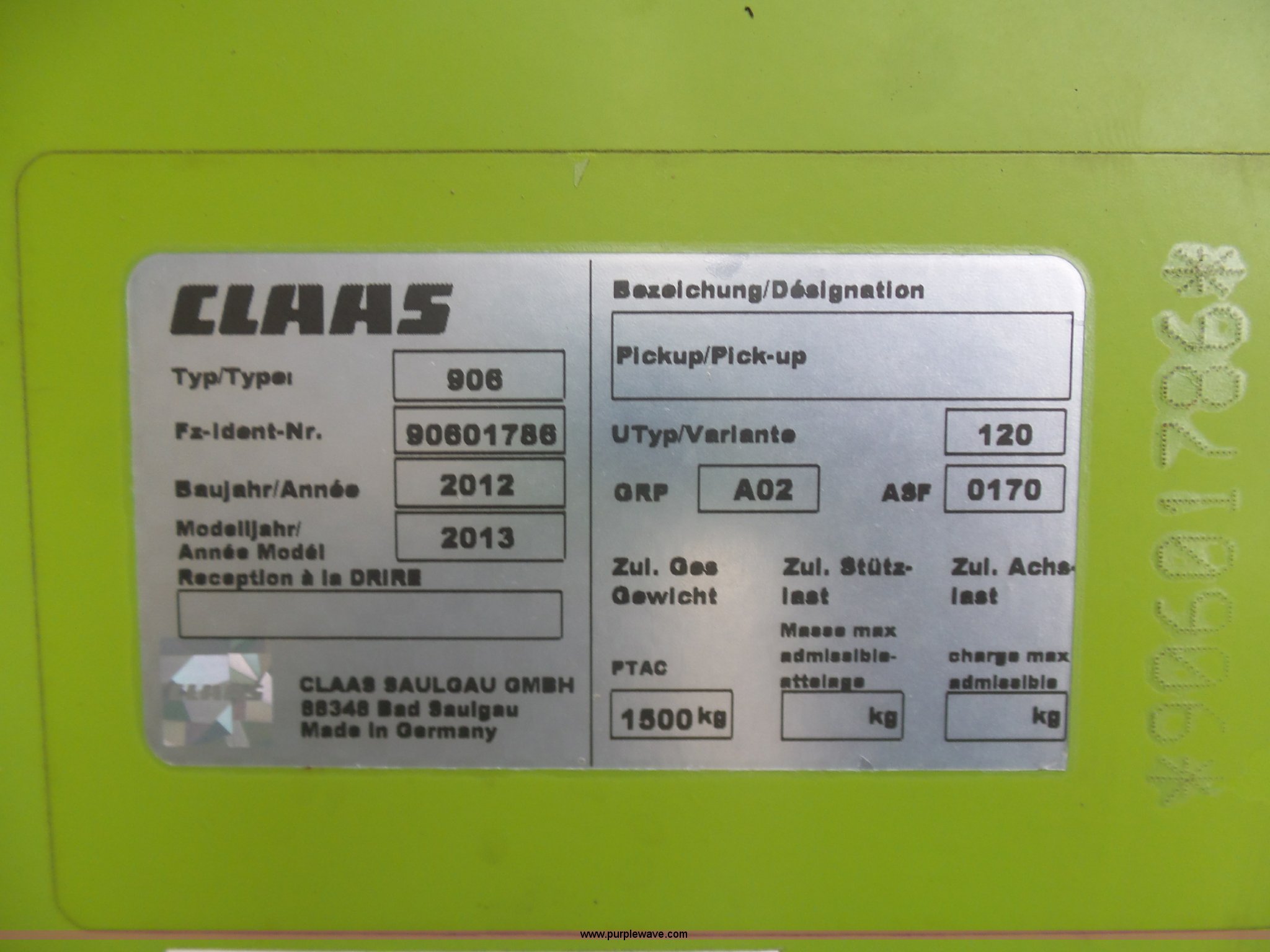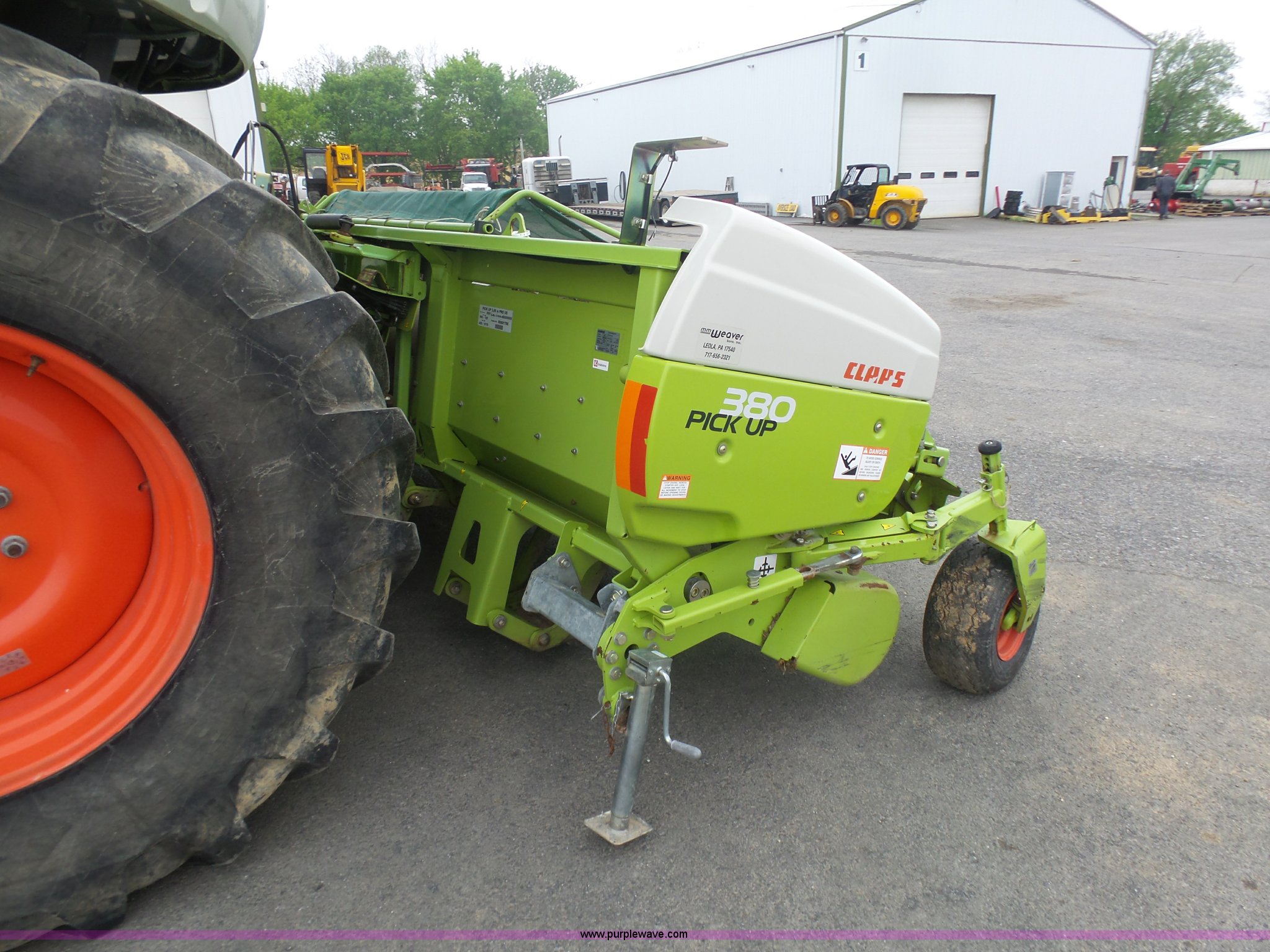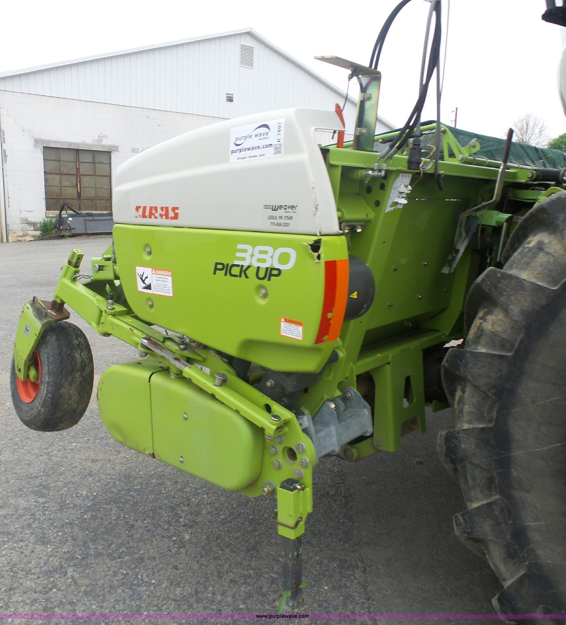 Purple Wave is selling a used Forage Head or Silage Handling in Pennsylvania. This item is a 2013 Claas 380 pickup head with the following: Gauge wheels, Single driveline, 18.5x8.5-8 tires, Forage harvester not included, Serial 90601786