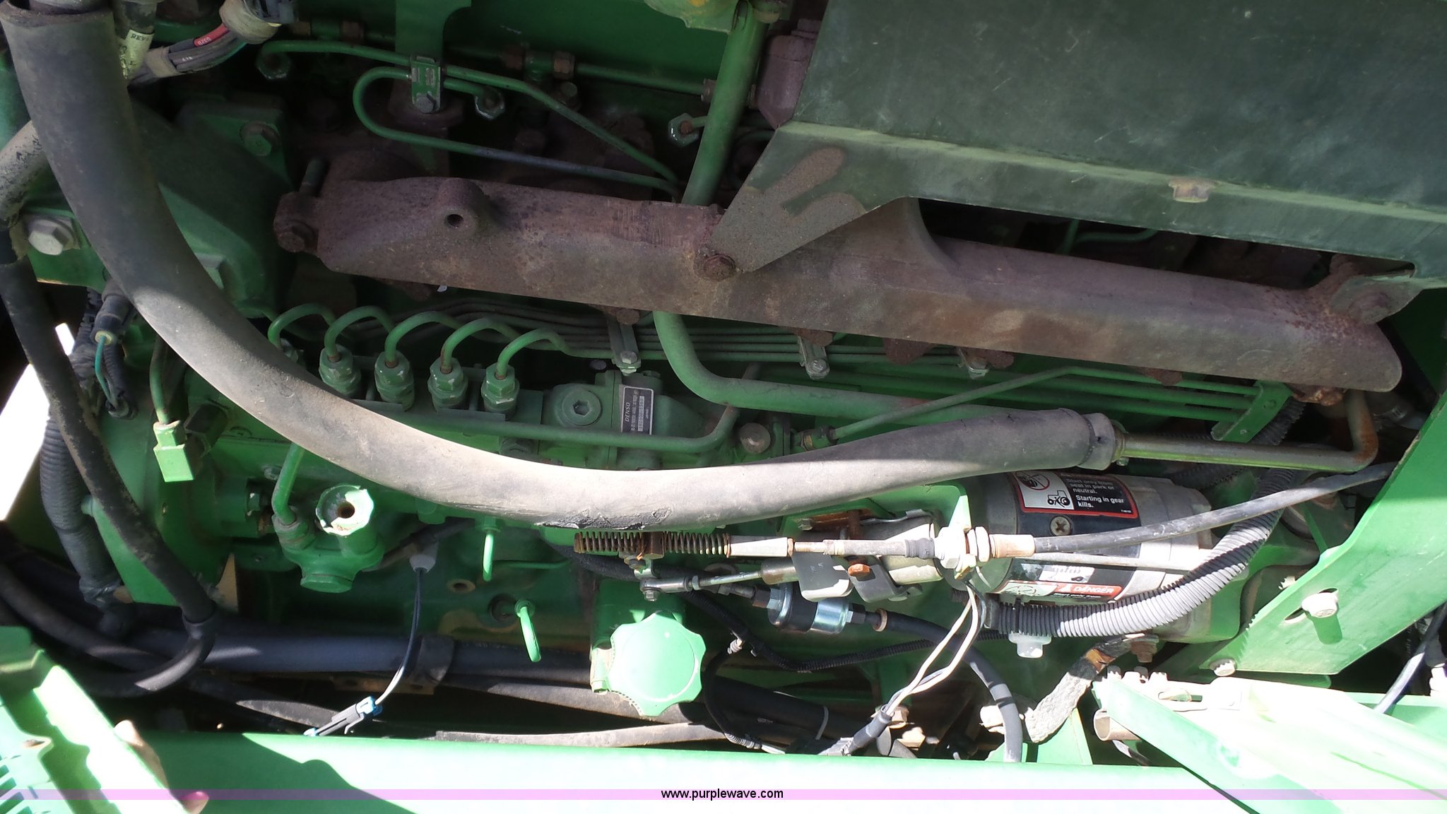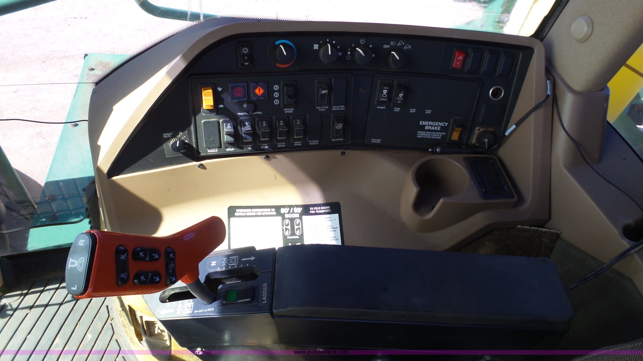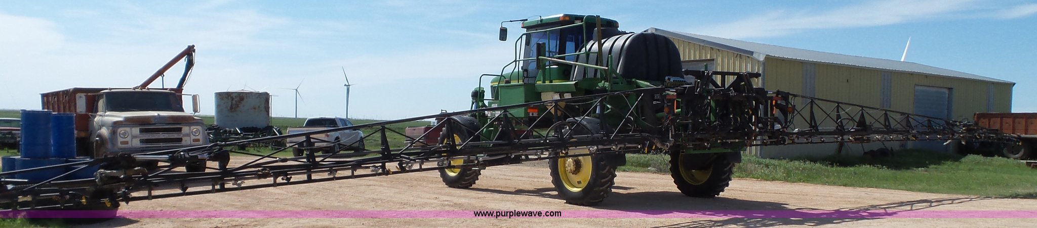 Purple Wave is selling a used Applicator Self Propelled in Texas. This item is a 2000 John Deere 4700 self-propelled sprayer with the following: 4,087 hours on meter, John Deere 551 C.I.D. six cylinder diesel engine, 325 HP, Hydrostatic transmission, Four wheel drive, Induction tank, Spray control system, 120'W boom, Two boom sections, Hydraulic boom fold, Hydraulic height adjust, 30" nozzle spacing, AC and heat, AM/FM/cassette, Hydraulic axle width adjust, 385/85R34 tires, Serial N04700X006029