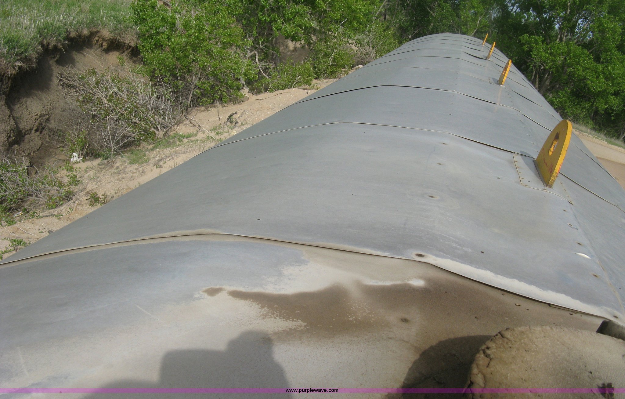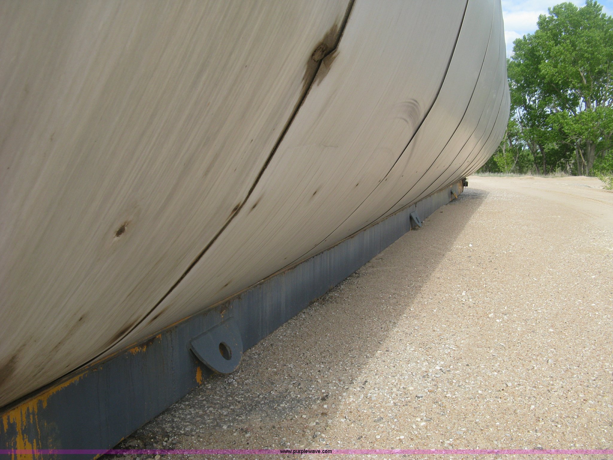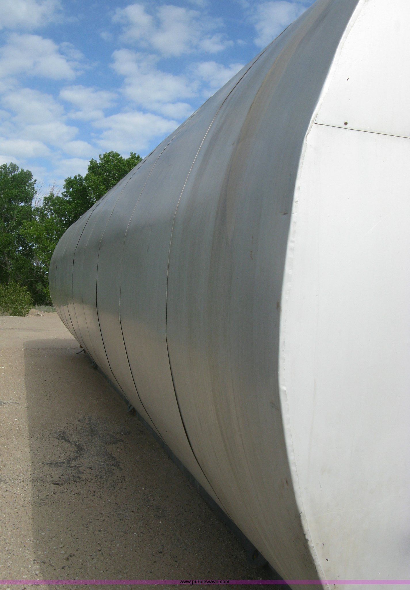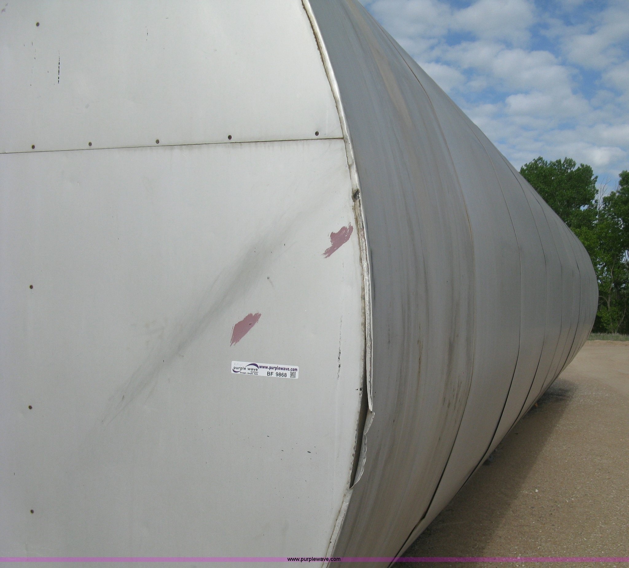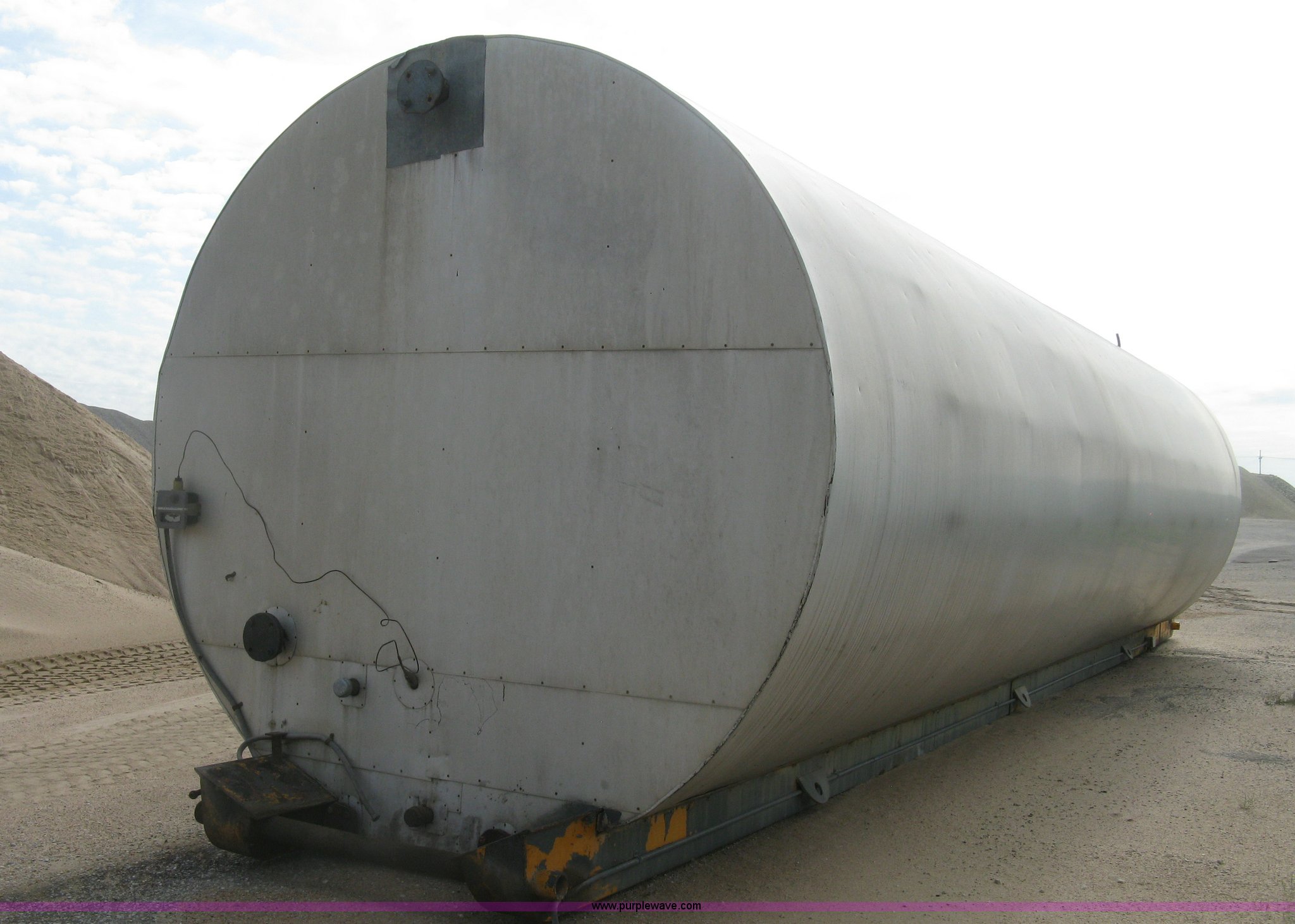 Purple Wave is selling a used Tanks in Kansas. This item is a Sundance asphalt oil tank with the following: 18,000 gallon rated capacity, 16,000 gallon capacity, Dual heating coil in bottom, Steel inner tank, Approx. 6" external insulation, Aluminum exterior sheeting, Partlow temperature controller, No temperature control valve, Side mount ladder, Lifting eyes, Approx. 45'L skid, Skid mounted, Previously contained PG64-22 oil, Removed from service in December 2015