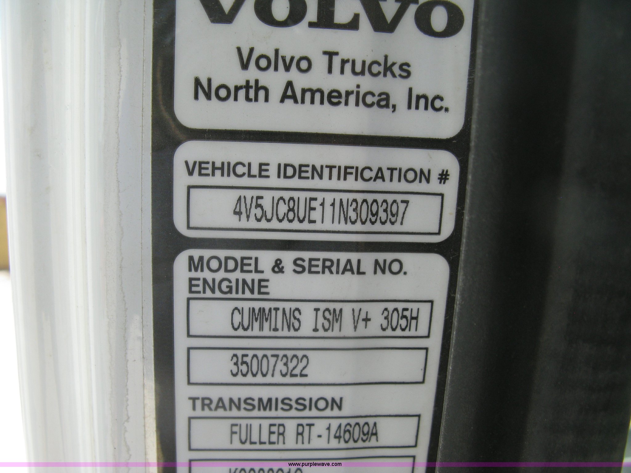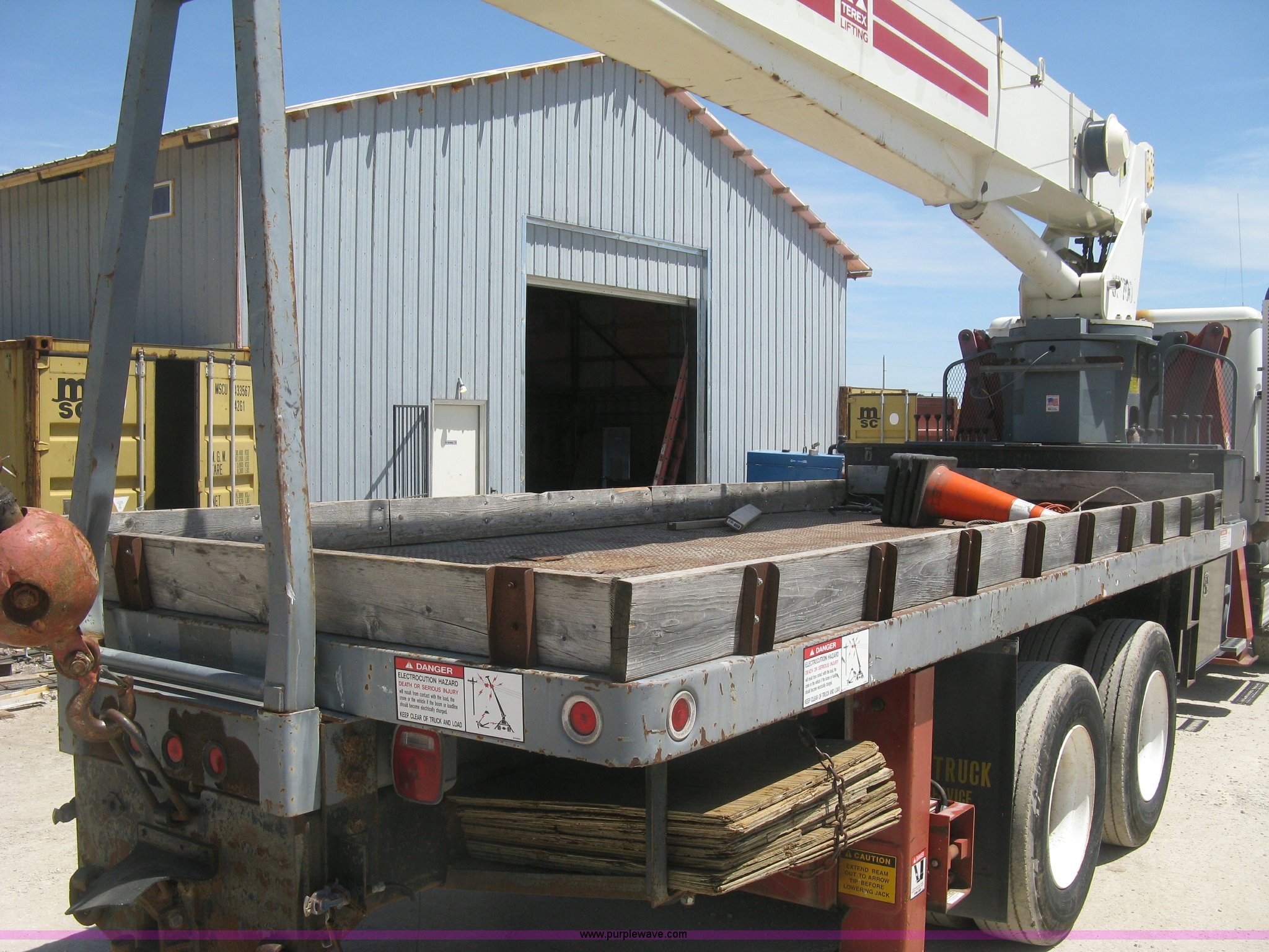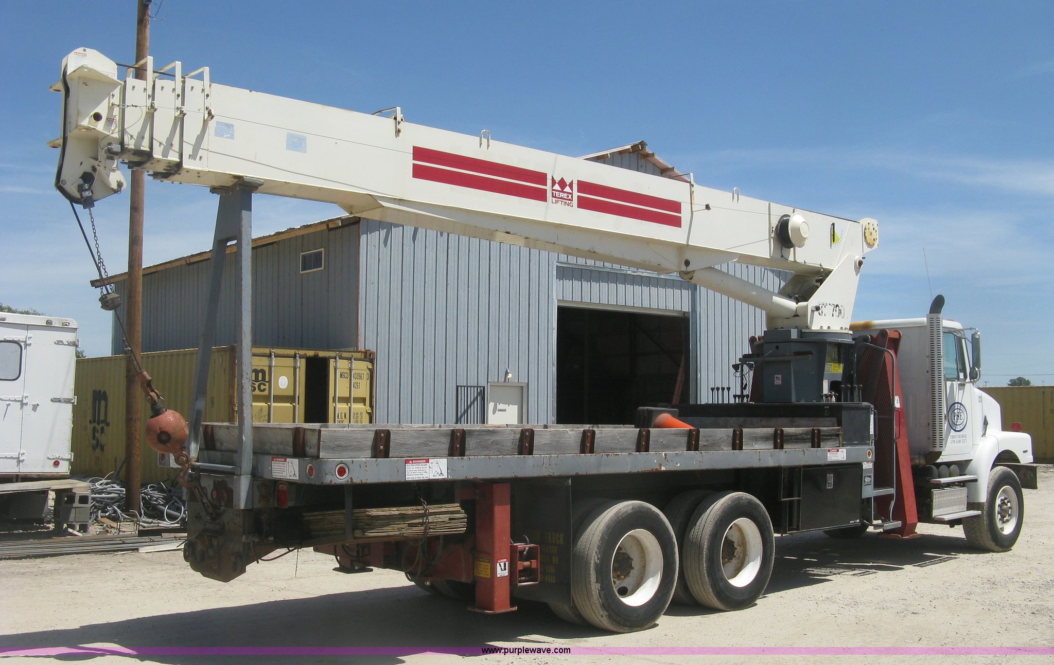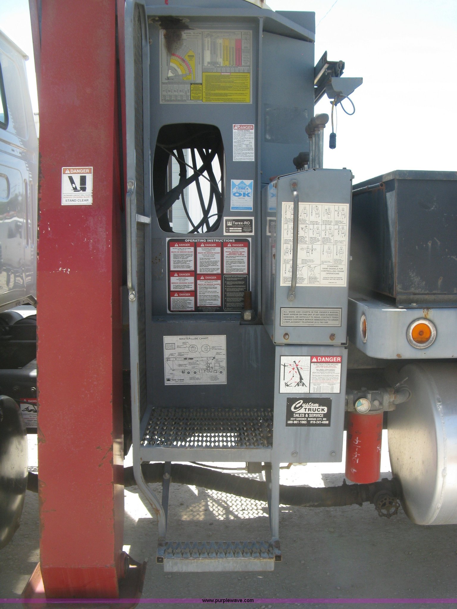 Purple Wave is selling a used Crane Truck in Kansas. This item is a 2001 Volvo WG crane truck with the following: 27,234 miles on odometer, Cummins ISM 10.8L L6 turbo diesel engine, 305 HP, Eaton Fuller RT14609A nine speed manual transmission, Tandem axle, Locking differential, AC and heat, AM/FM, Cruise, Air suspension seat, Block heater, Trailer brake controller, PTO, 21'L flatbed, Pintle hitch, Trailer wiring, Gladhand couplers, Terex BT4700 crane, Serial 49008001155, 92' maximum lift height, 47,000 lbs maximum lift capacity, Boom rotation, Single and two block crane ball and hook, Telescopic boom, (4) outriggers, Certification valid through April 2017, Greer Co. MG586 monitor, Single fuel tank, Single exhaust stack, 3:730 gear ratio, 238" wheelbase, Spring suspension, Air brakes, 385/65R22.5 front tires, 11R22.5 rear tires, GVWR 58,740 lbs, FMCSA annual inspection April 2016, Boom rating/safety computer replaced 2015, Cable replaced 2015, View inspection reports, Contents are not included