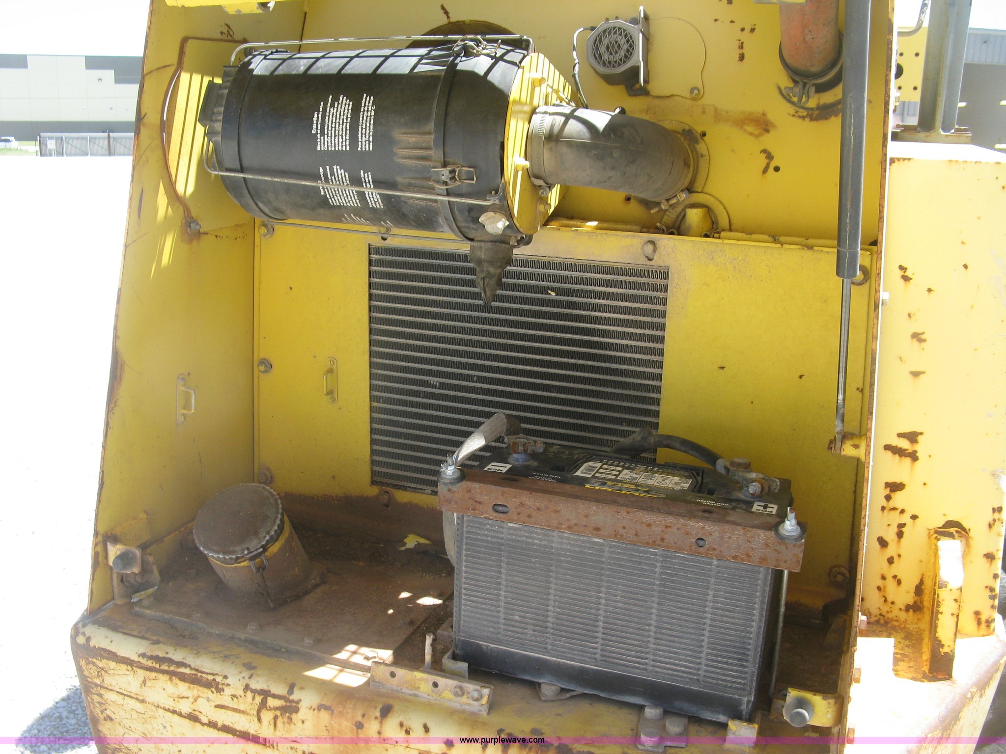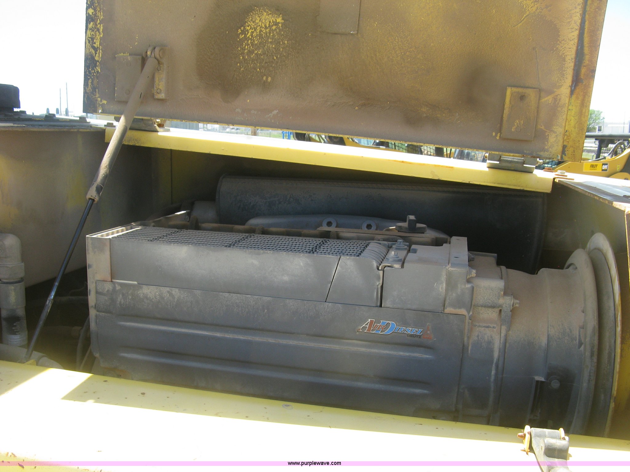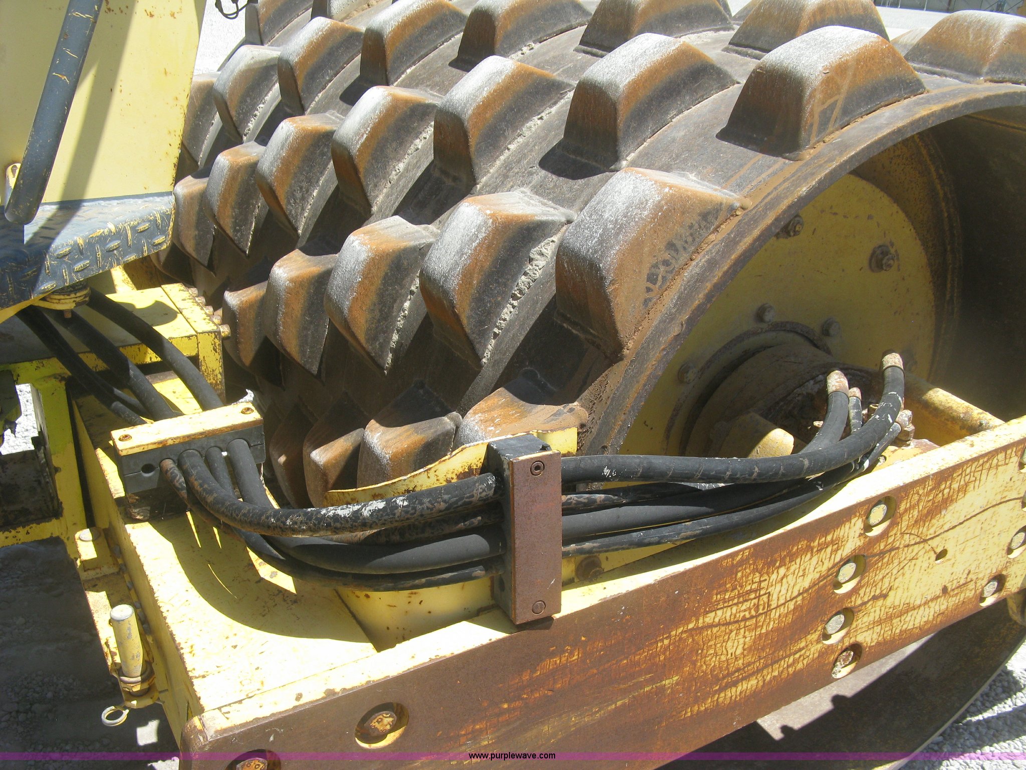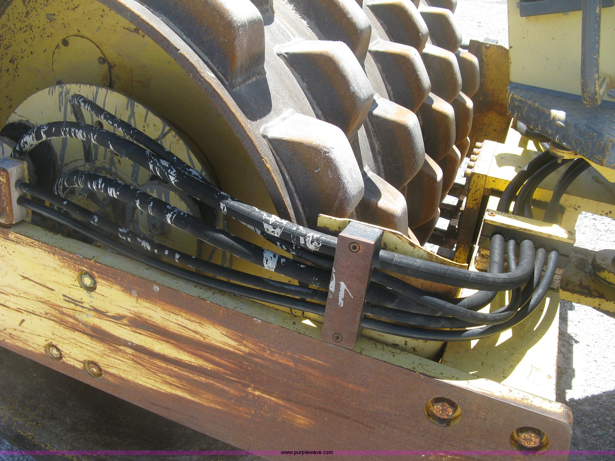 Purple Wave is selling a used Double Drum Roller Compactor in Kansas. This item is a Bomag BW172PDB-2 vibratory padfoot compactor with the following: 3,318 hours on meter, Deutz BF4L1011F four cylinder diesel engine, 53.5 kW, Hydrostatic transmission, OROPS, Vandal cover, 66"W x 47" diameter drums, Front and rear drum scrapers, 6'W front blade, 14.9-24 tires, Service records available, Serial 109520510205U